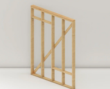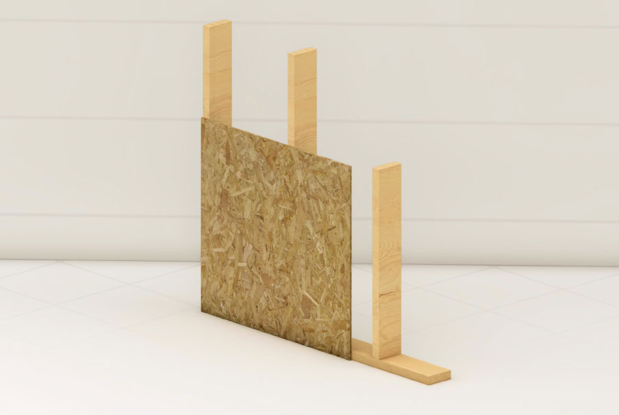 Каркас несущей стены, «обшитый» с одной стороны листовым ограждающим материалом - OSB.