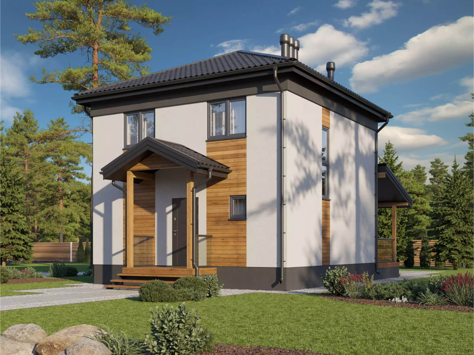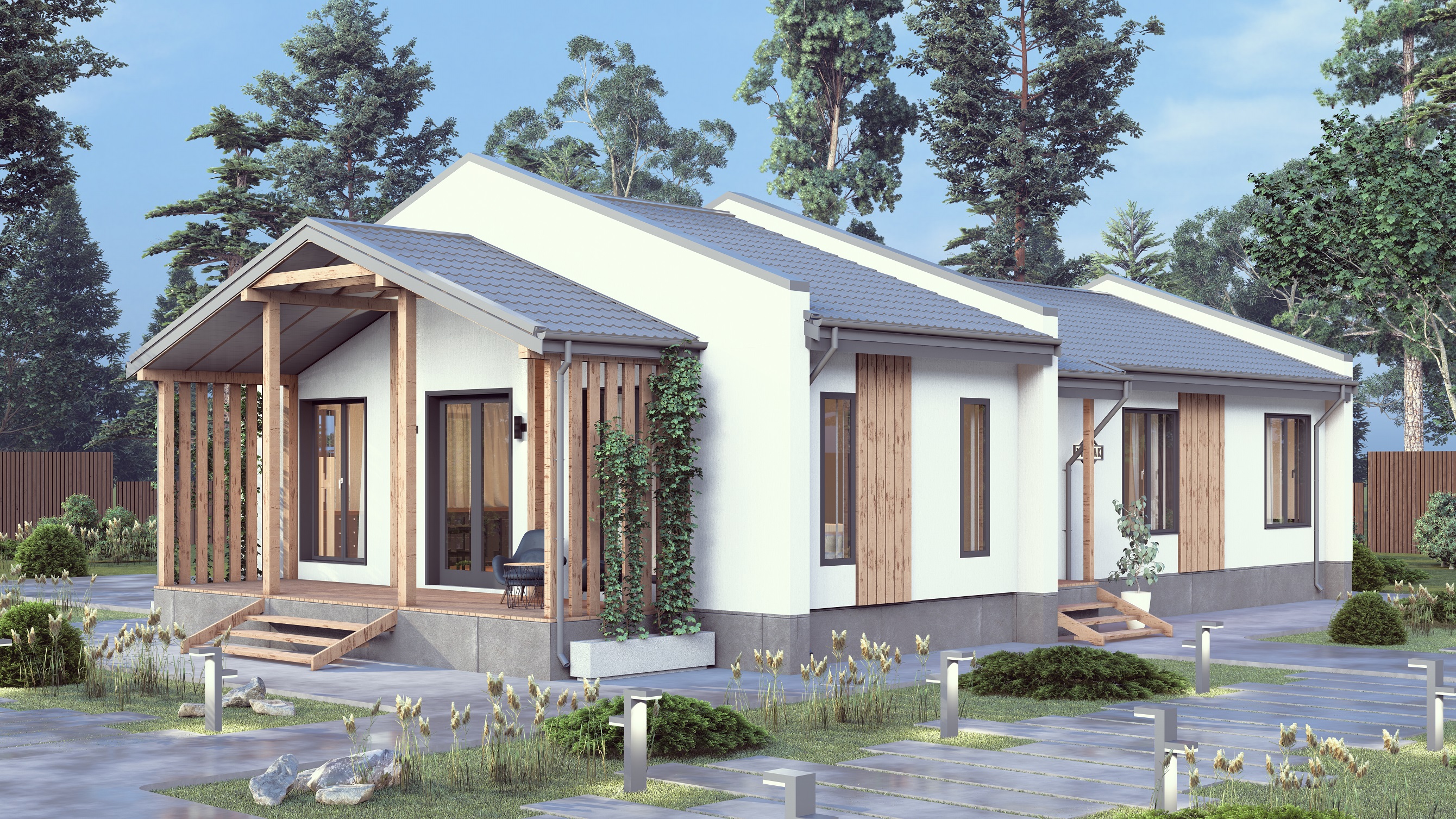 Скандинавский стиль - это минималистичный дизайн, светлые оттенки, естественные материалы, особый уют и функциональная обстановка. Типичные черты таких домов включают в себя большие окна, деревянные элементы и просторные интерьеры, что придает им атмосферу комфорта и гармонии с природой.