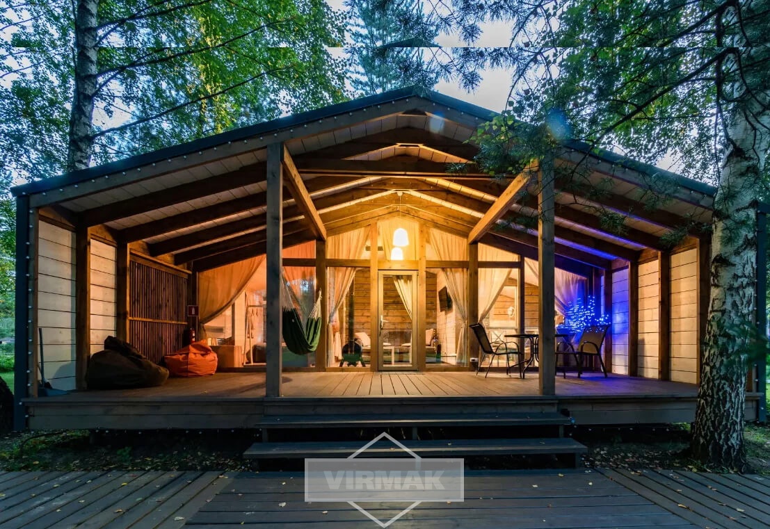 Быстровозводимые и энергоэффективные сооружения, построенные по уникальной технологии Вирмак, оптимальное решение для баз отдыха и загородных отелей, отелей в черте города имеющих свою территорию, и частных землевладельцев. Проекты выполнены в разных стилях, от классики до хайтеков, оснащены большими панорамными окнами, стирающими условные границы между жилой зоной и природой. Также мы проектируем и строим кафе, бары, павильоны, дома для персонала и другие хозяйственные постройки в едином стиле.