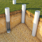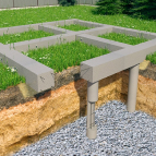 - Для легкой конструкции на относительно ровном участке с песчаным грунтом подойдет столбчатое основание или сваи.