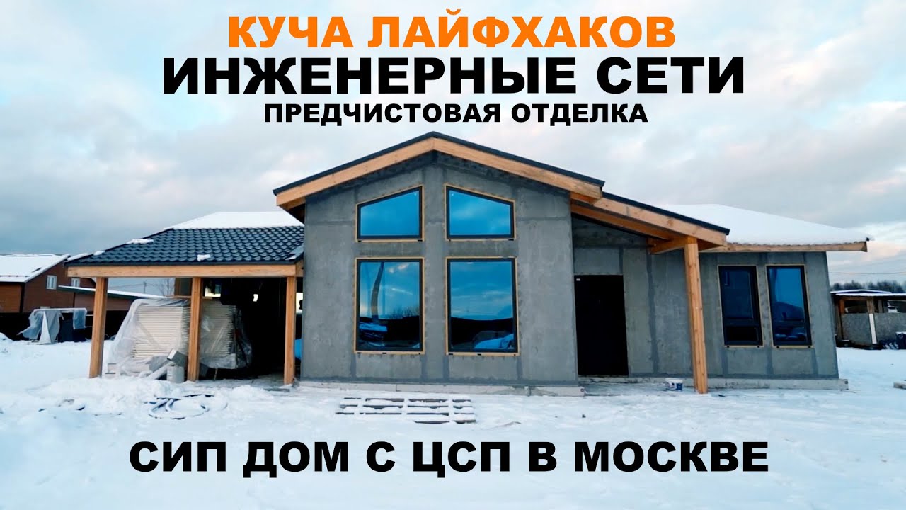 - В Московской области и вообще в средней полосе вы, скорее всего, будете выбирать между плитным и ленточным, но, учитывая легкость строения из СИП панелей, применим и свайный фундамент, тип свай зависит от геологии участка и условий подъезда.
