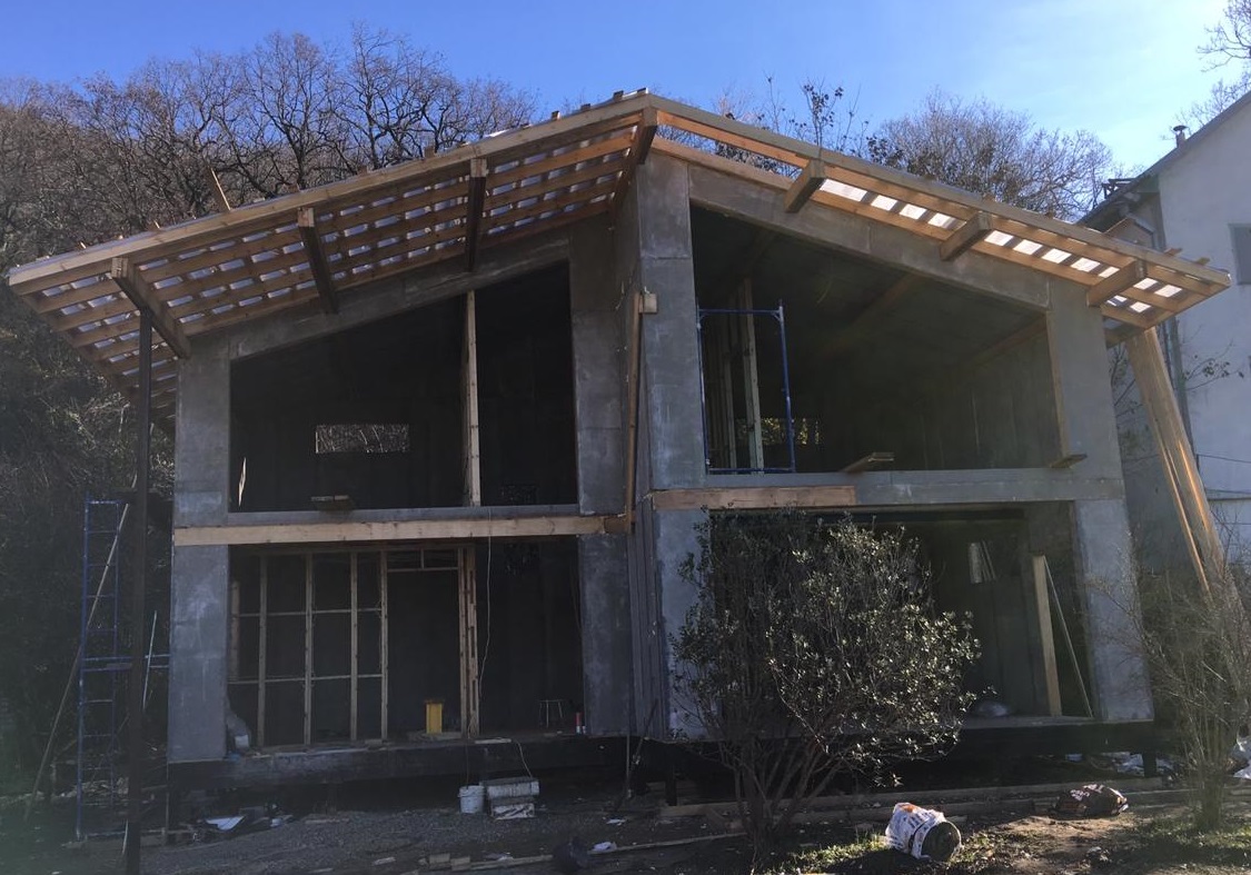 Ростверк изготовлен из калиброванного клееного бруса и защищен снаружи цементно-стружечной плитой