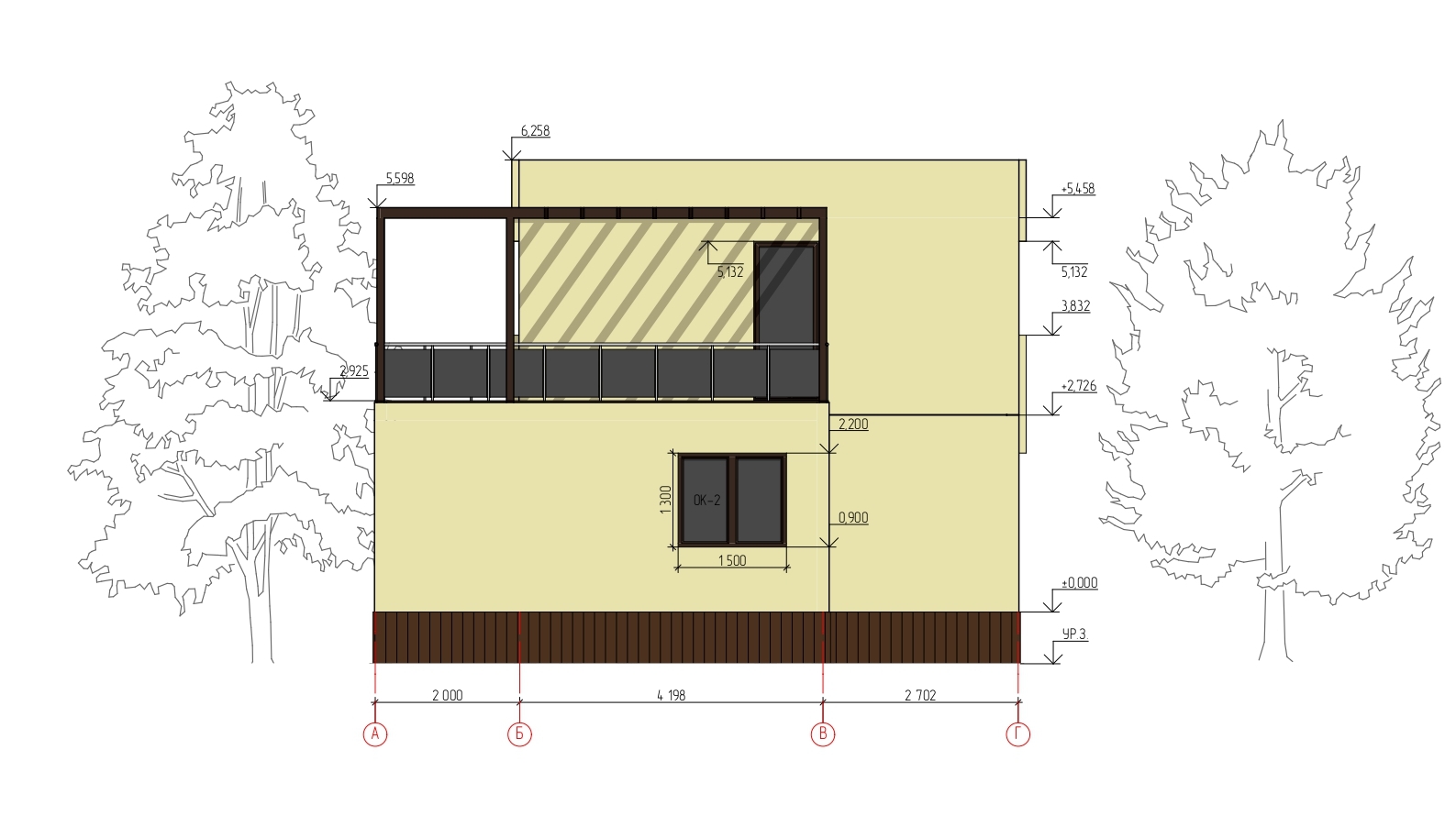 Ростверк изготовлен из калиброванного клееного бруса и защищен снаружи цементно-стружечной плитой