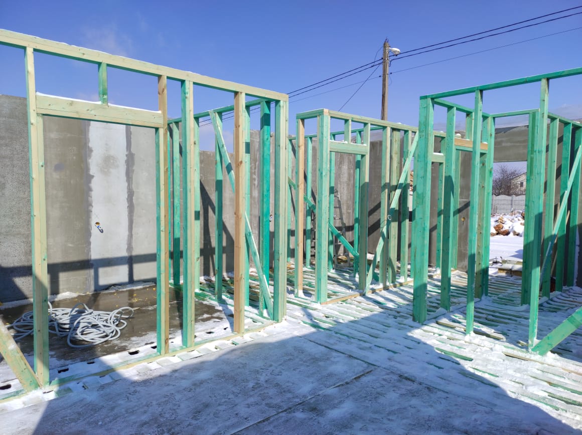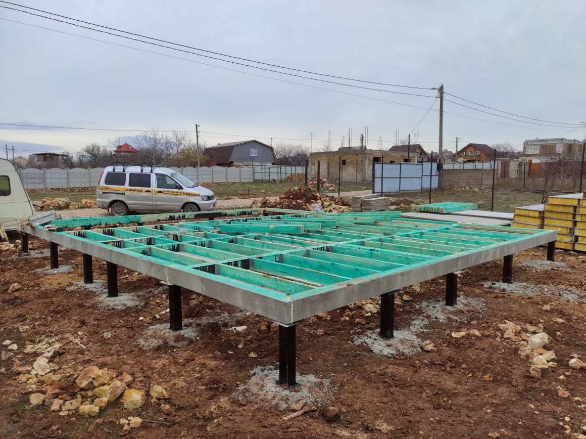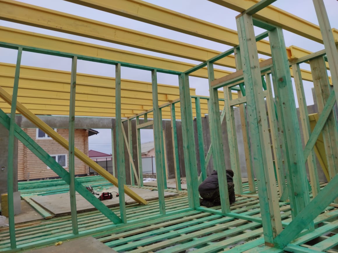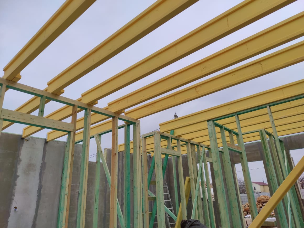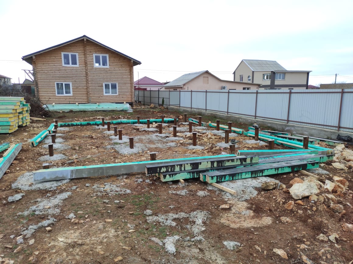Ростверк изготовлен из калиброванного клееного бруса и защищен снаружи цементно-стружечной плитой