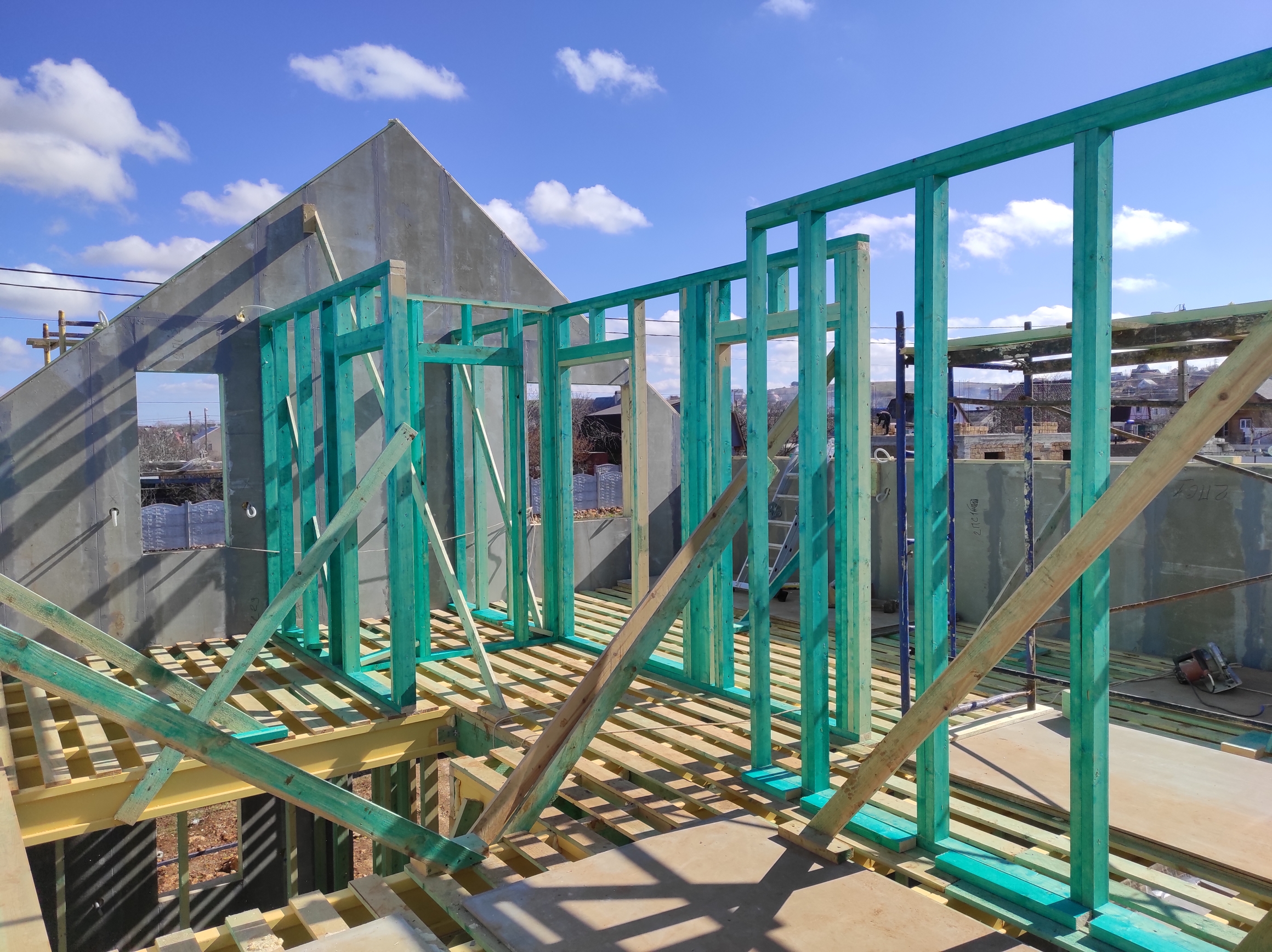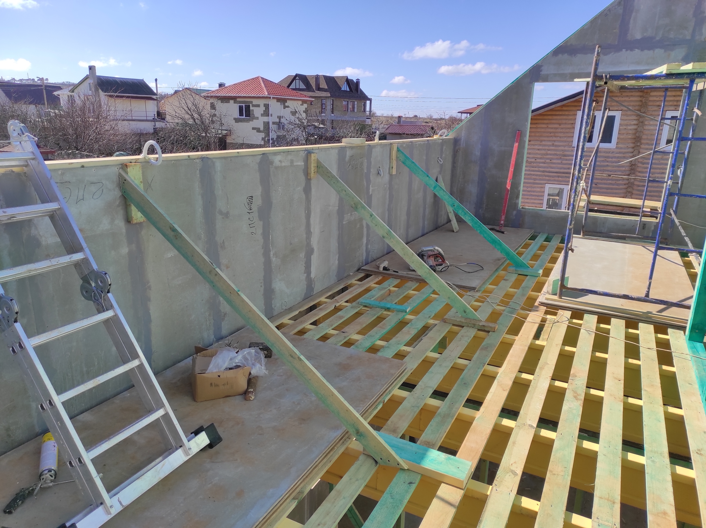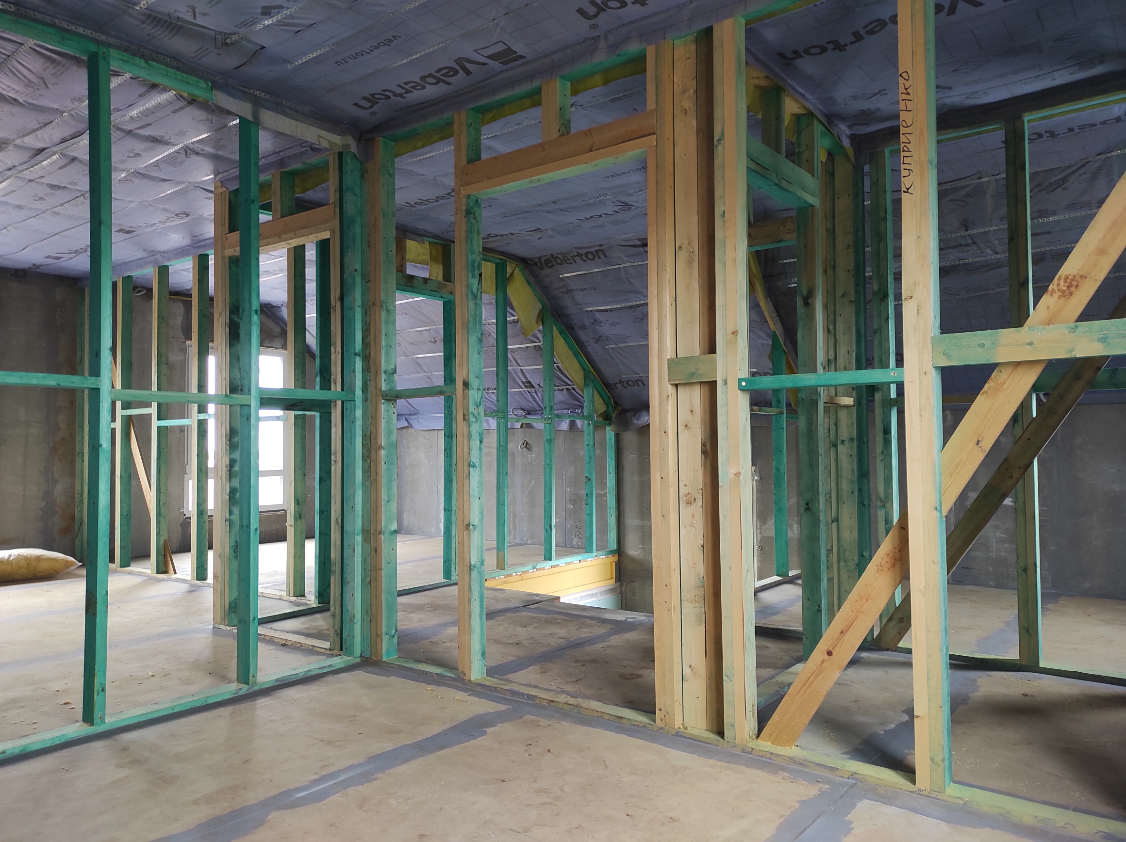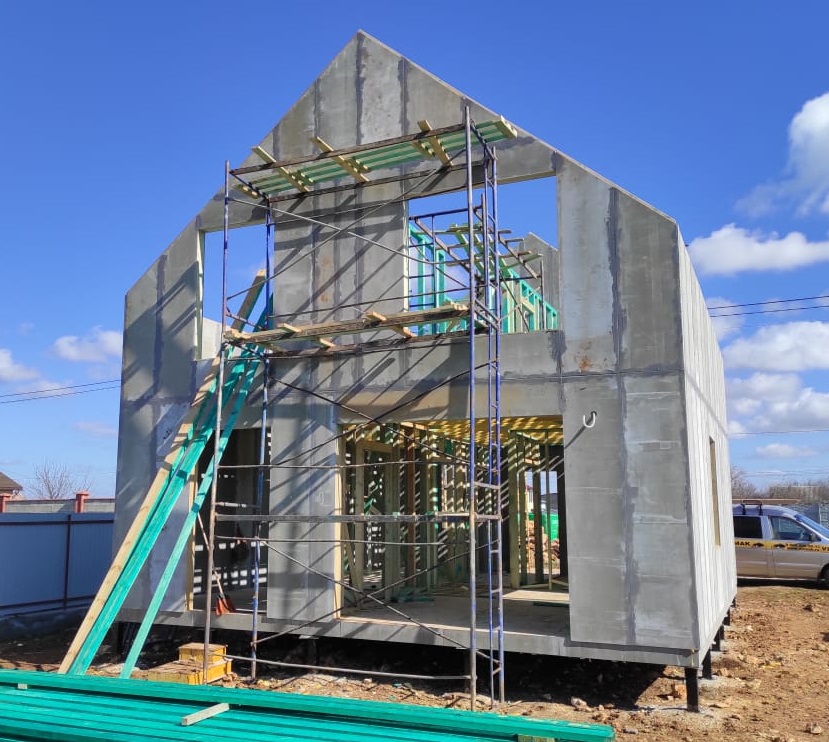 Ростверк изготовлен из калиброванного клееного бруса и защищен снаружи цементно-стружечной плитой