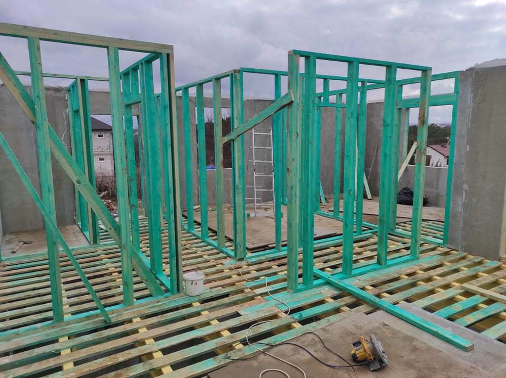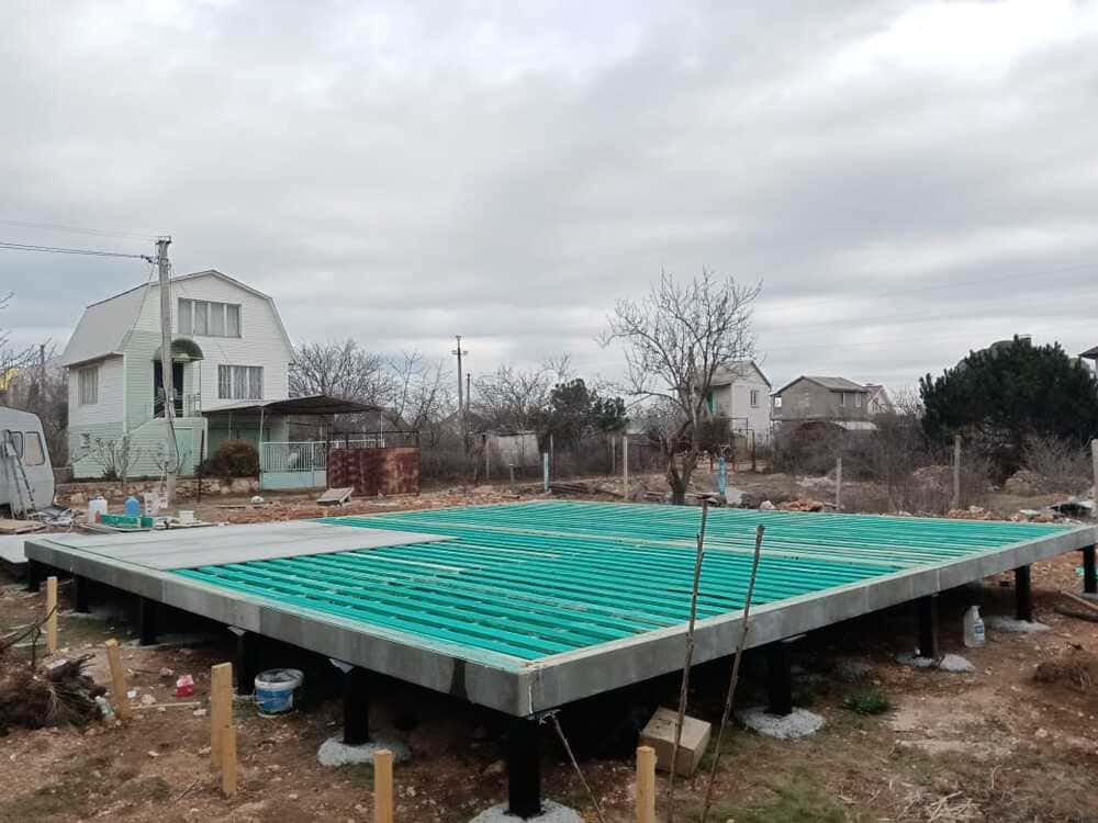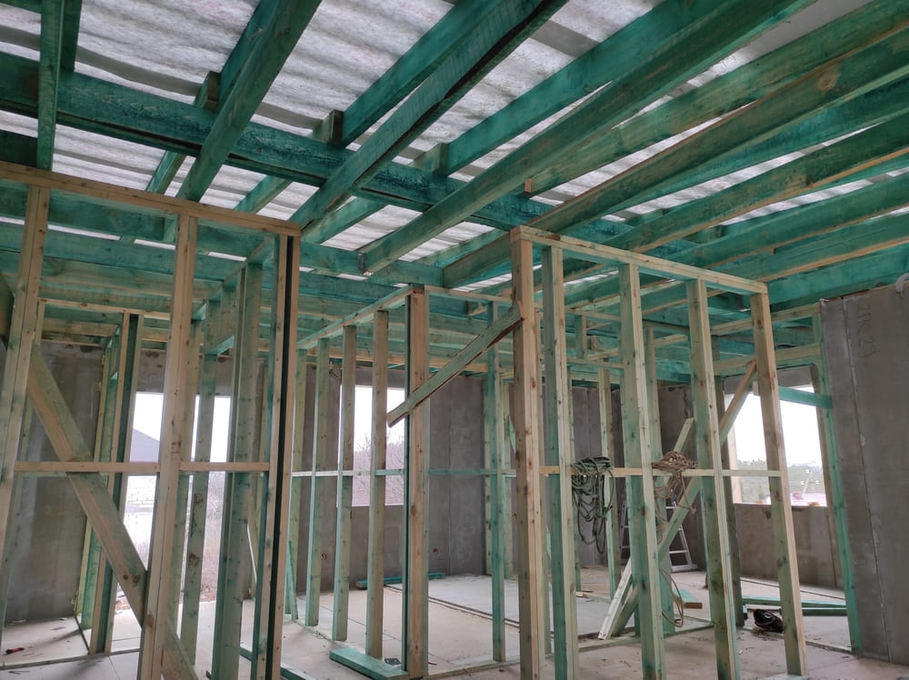 Ростверк изготовлен из калиброванного клееного бруса и защищен снаружи цементно-стружечной плитой