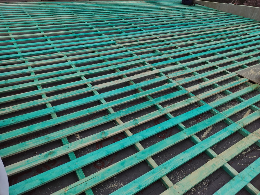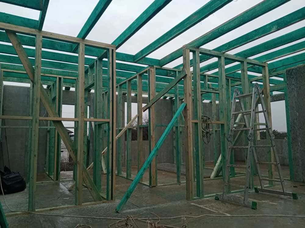 Кровля может быть построена из бруса 150х50мм или SIP панелей. В качестве кровельного материала можно использовать: металлочерепицу, битумную и керамическую черепицу. Также производим кровельные шовные сэндвич-панели.