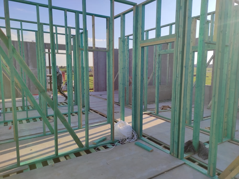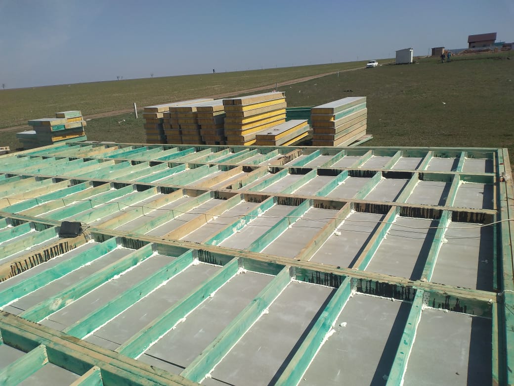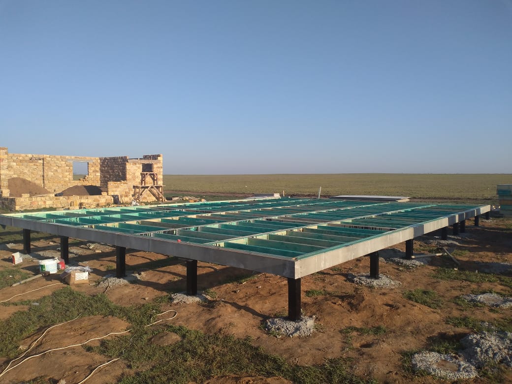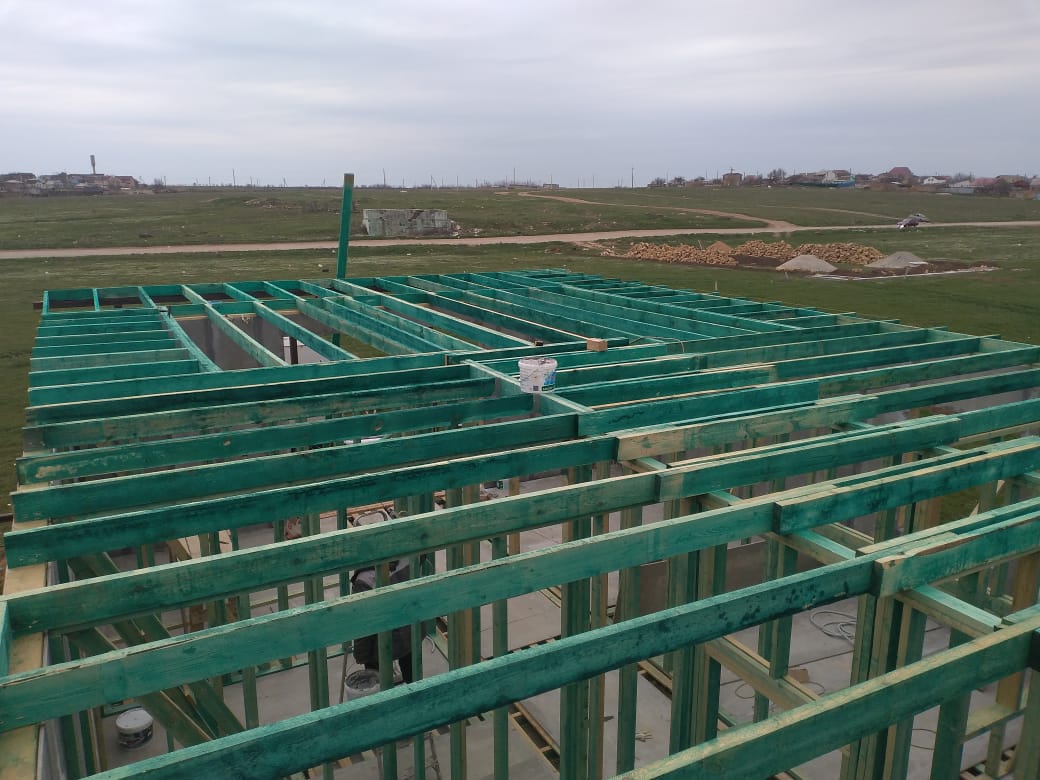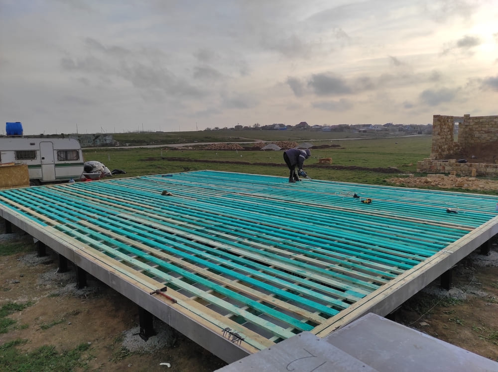 Ростверк изготовлен из калиброванного клееного бруса и защищен снаружи цементно-стружечной плитой