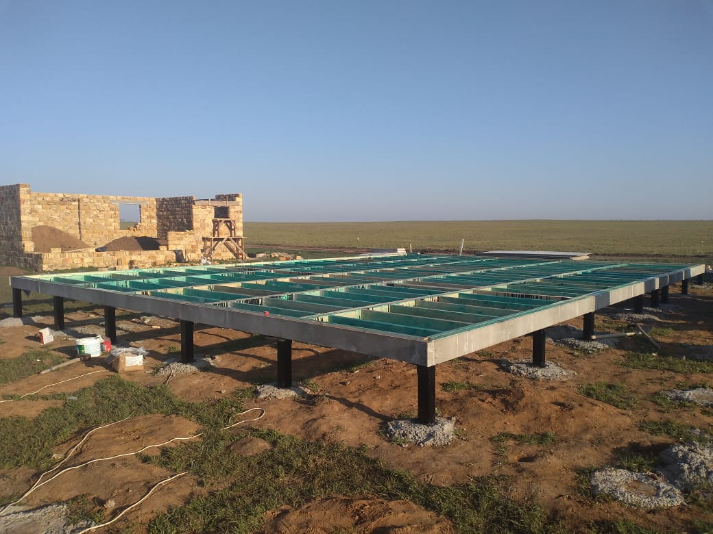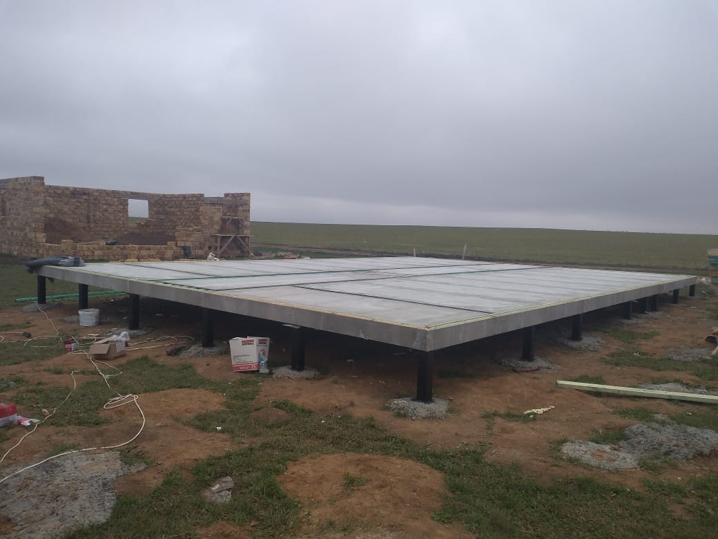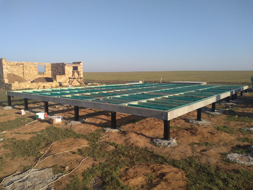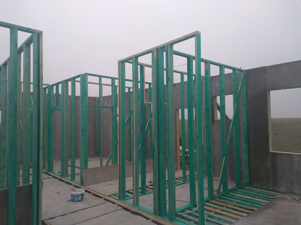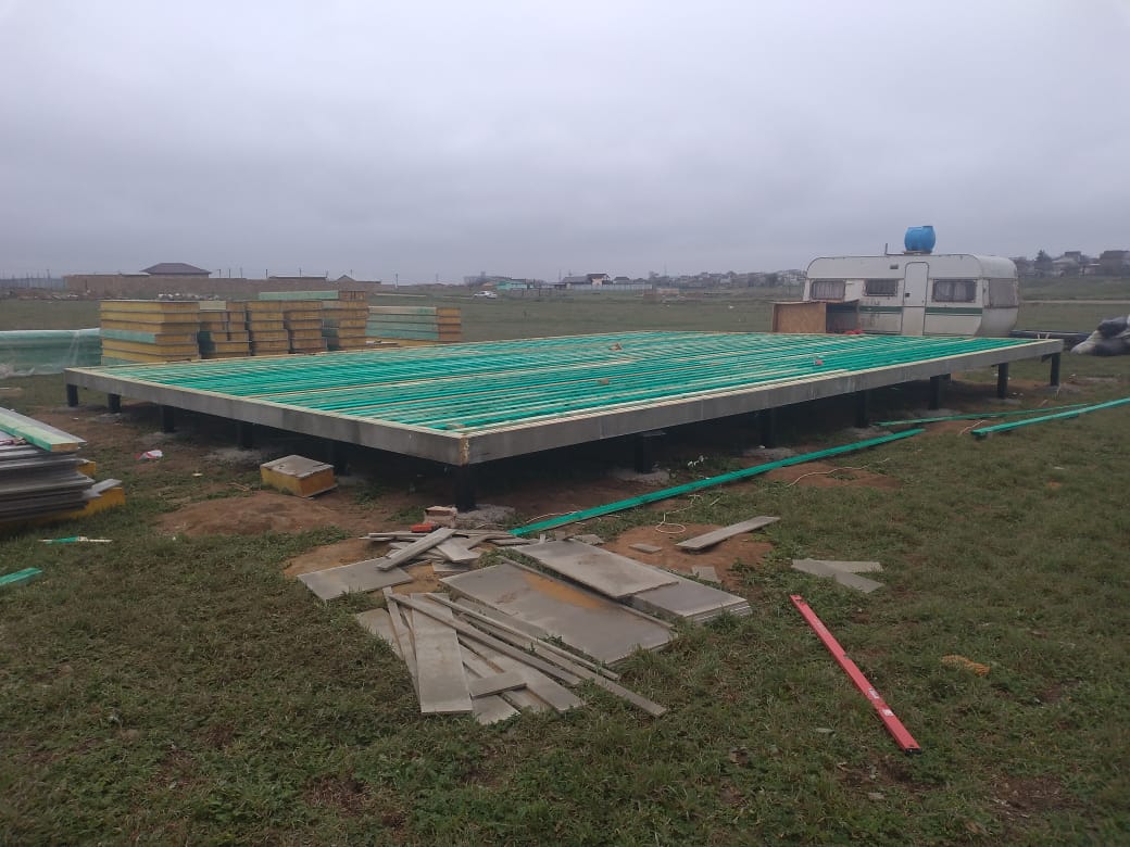Ростверк изготовлен из калиброванного клееного бруса и защищен снаружи цементно-стружечной плитой