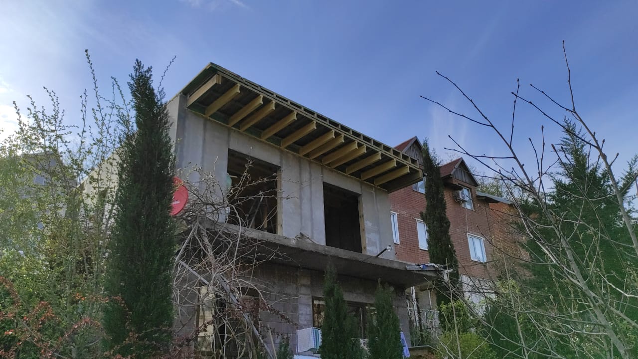 Кровля может быть построена из бруса 150х50мм или SIP панелей. В качестве кровельного материала можно использовать: металлочерепицу, битумную и керамическую черепицу. Также производим кровельные шовные сэндвич-панели.