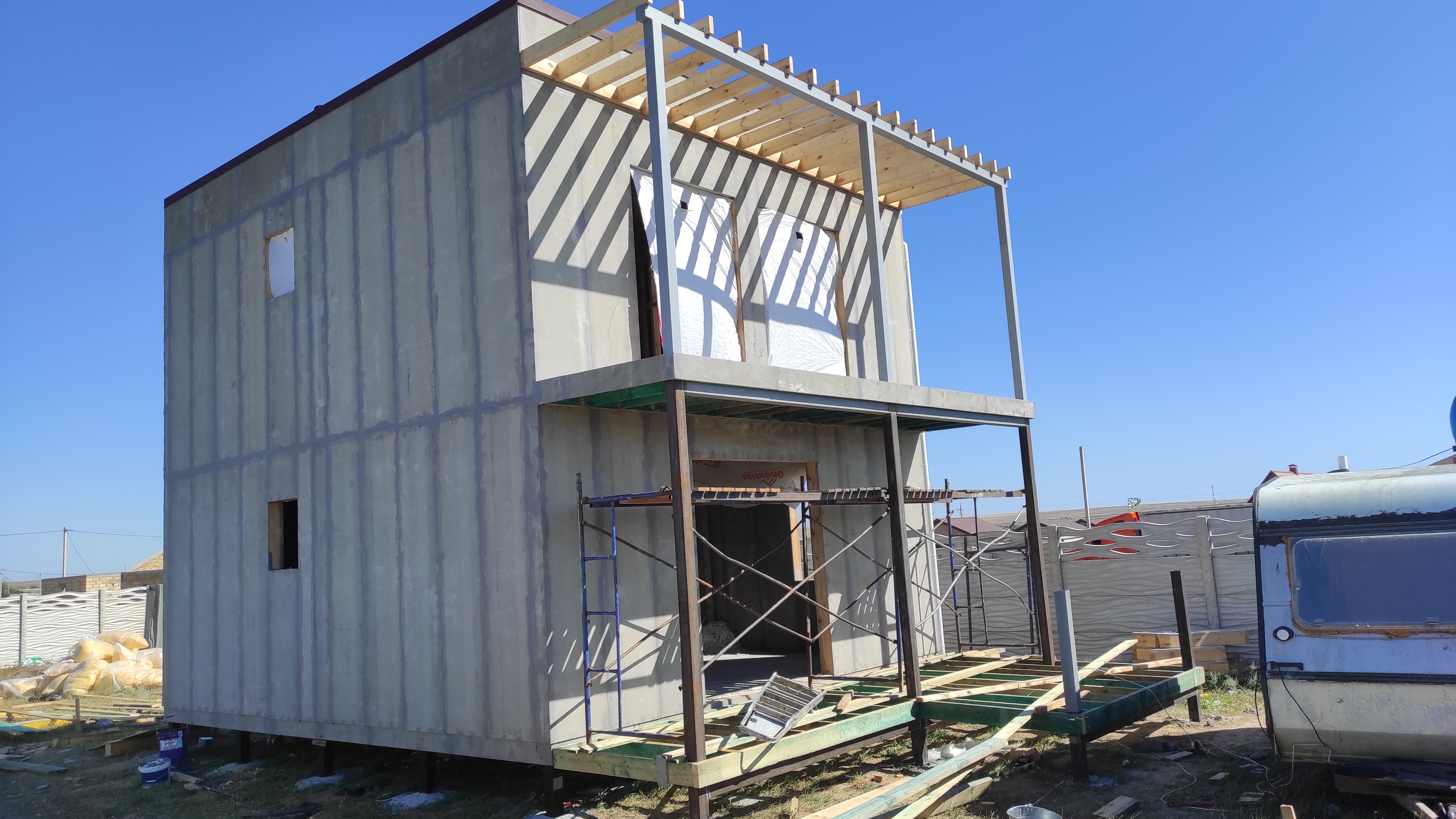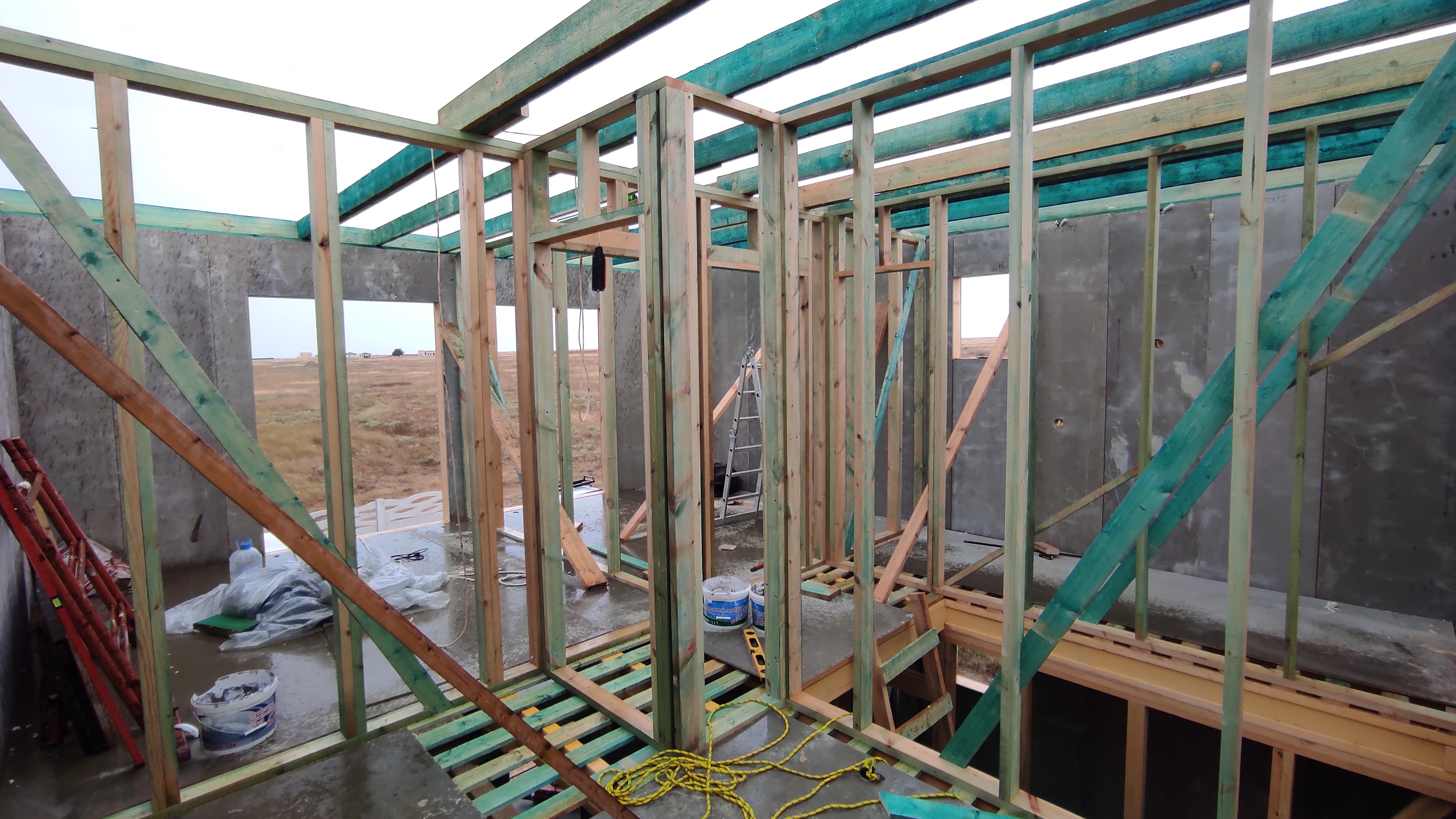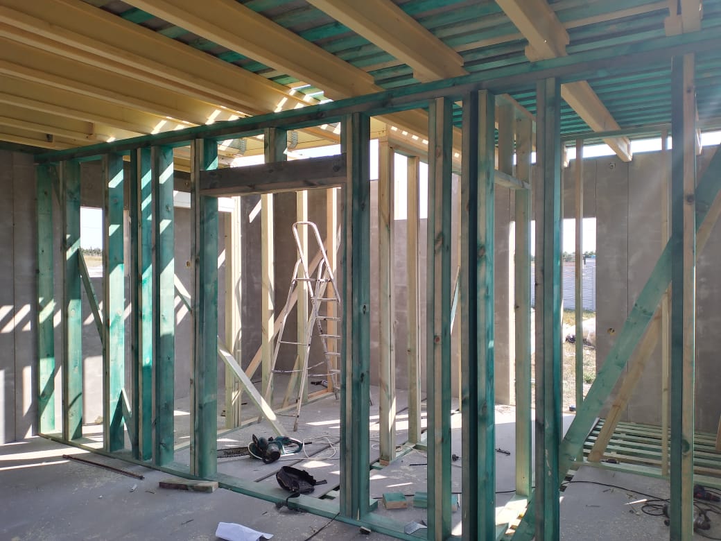Ростверк изготовлен из калиброванного клееного бруса и защищен снаружи цементно-стружечной плитой