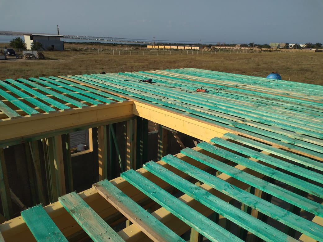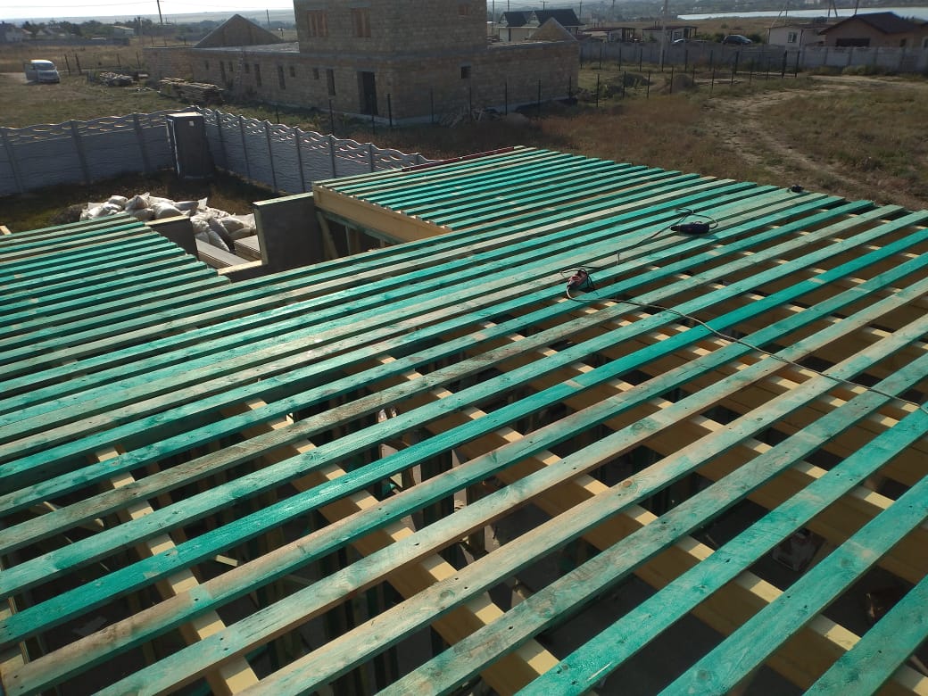 Кровля может быть построена из бруса 150х50мм или SIP панелей. В качестве кровельного материала можно использовать: металлочерепицу, битумную и керамическую черепицу. Также производим кровельные шовные сэндвич-панели.