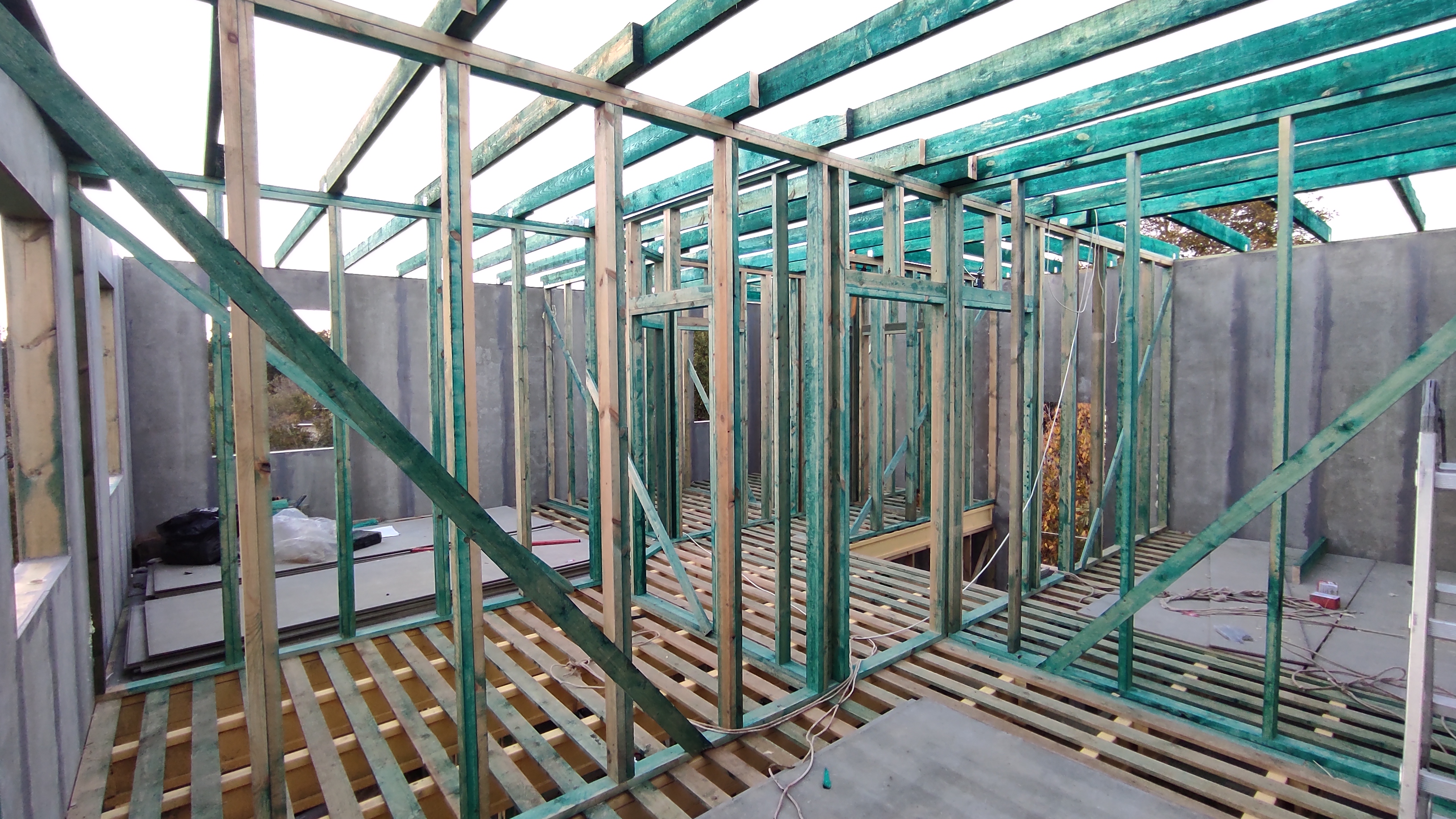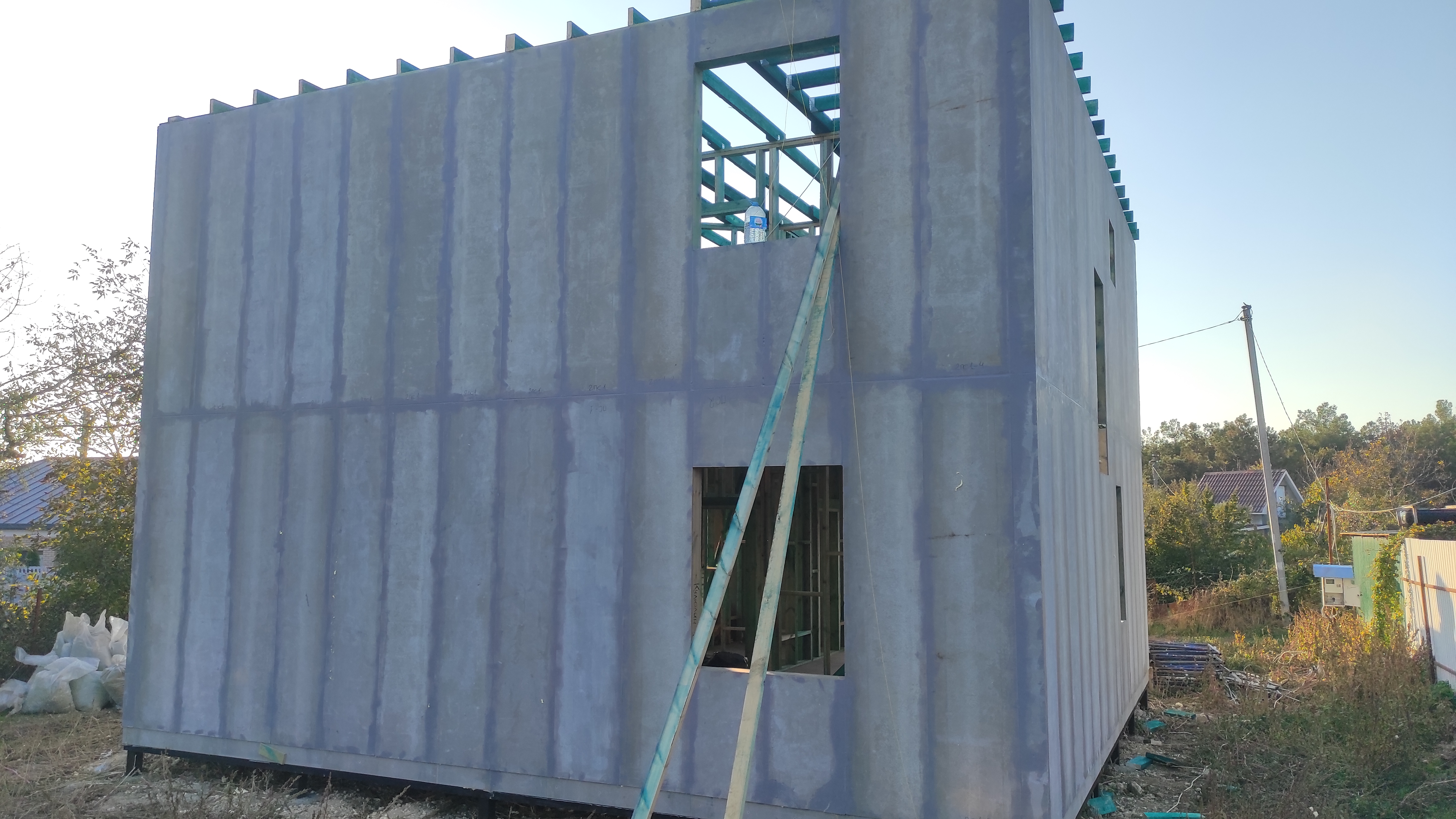 Ростверк изготовлен из калиброванного клееного бруса и защищен снаружи цементно-стружечной плитой