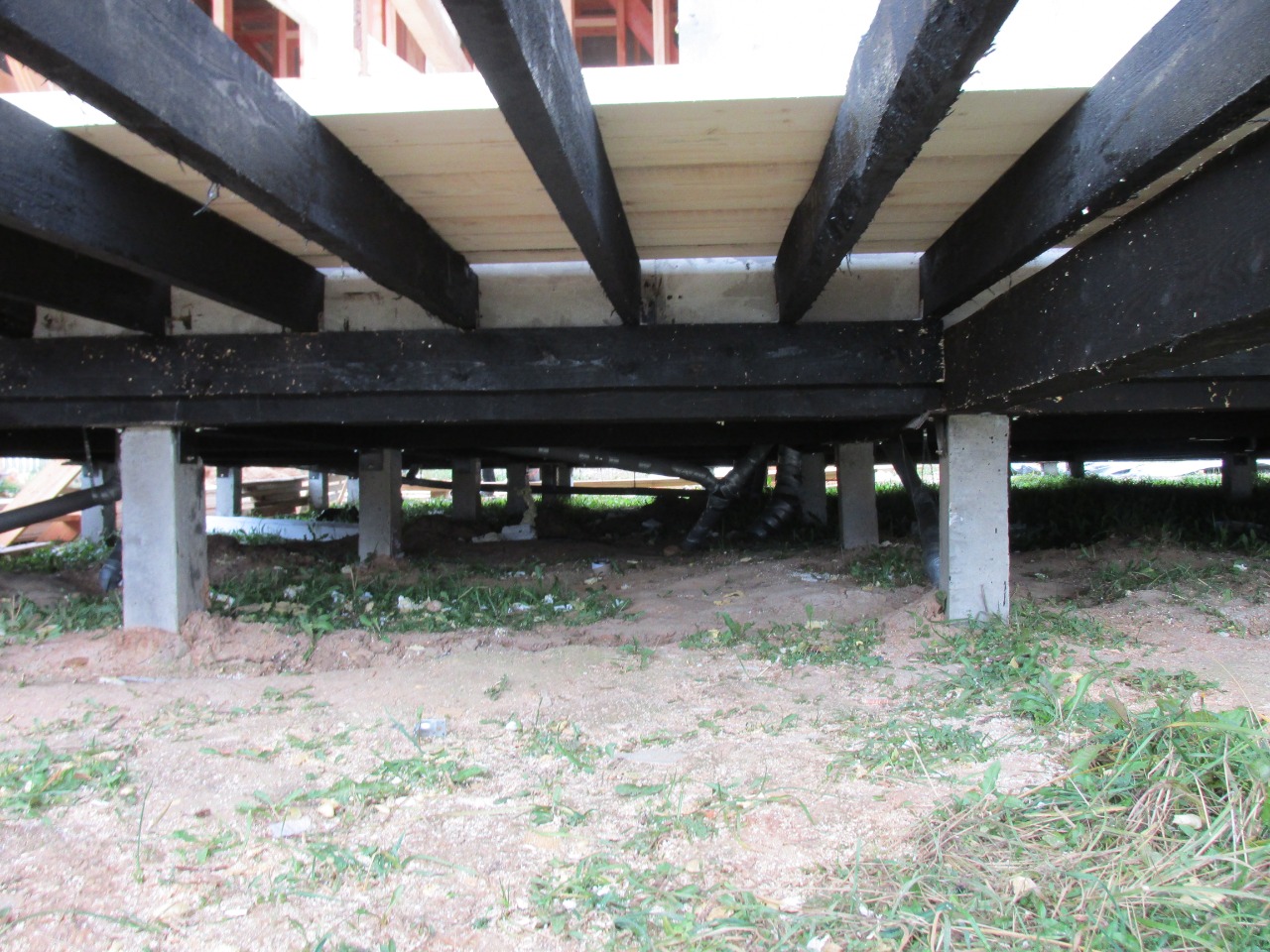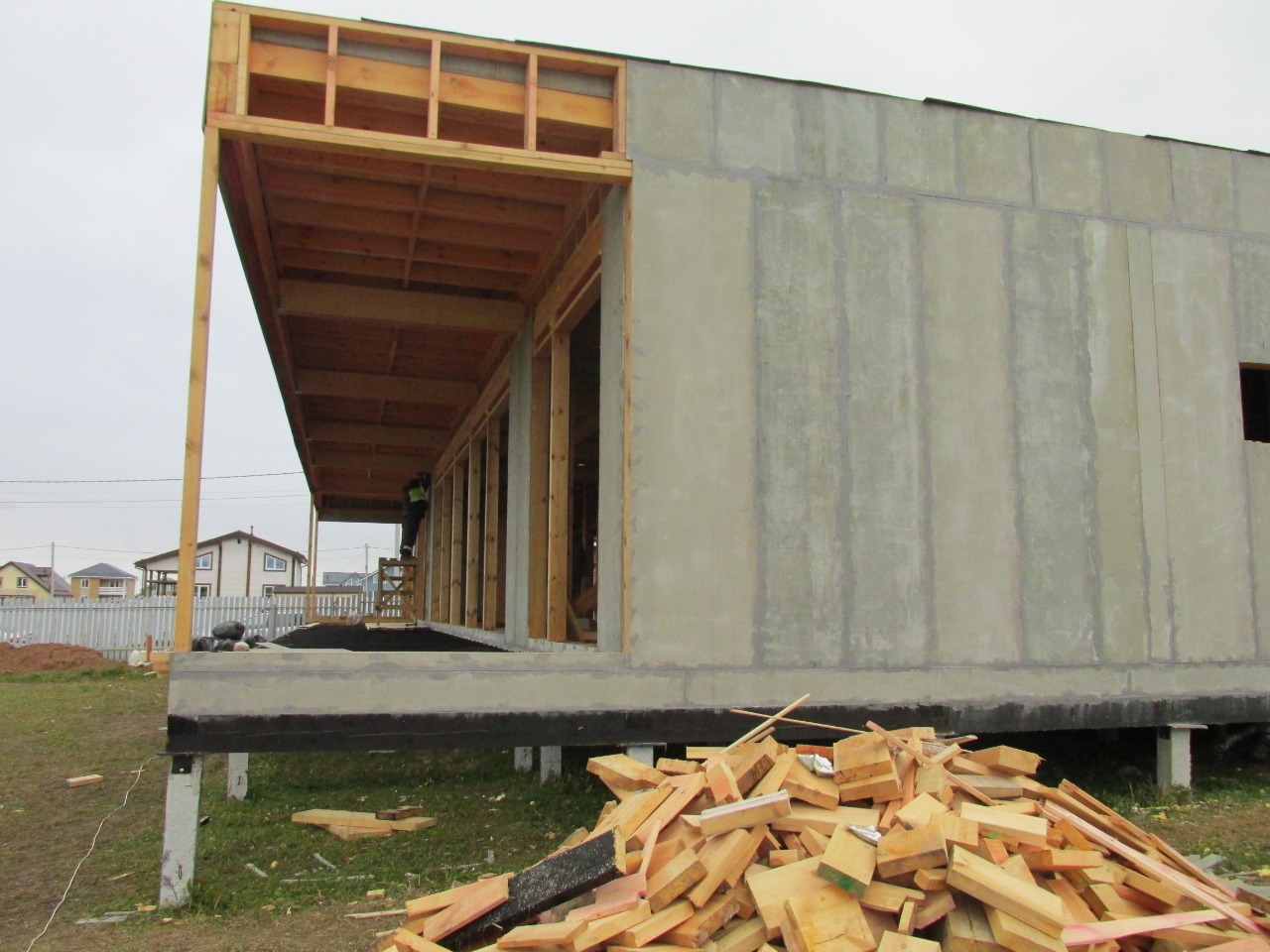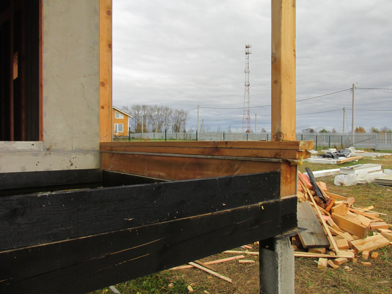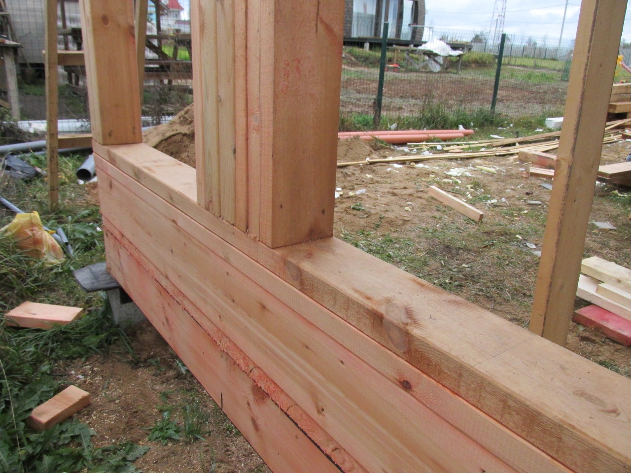 Ростверк изготовлен из калиброванного клееного бруса и защищен снаружи цементно-стружечной плитой