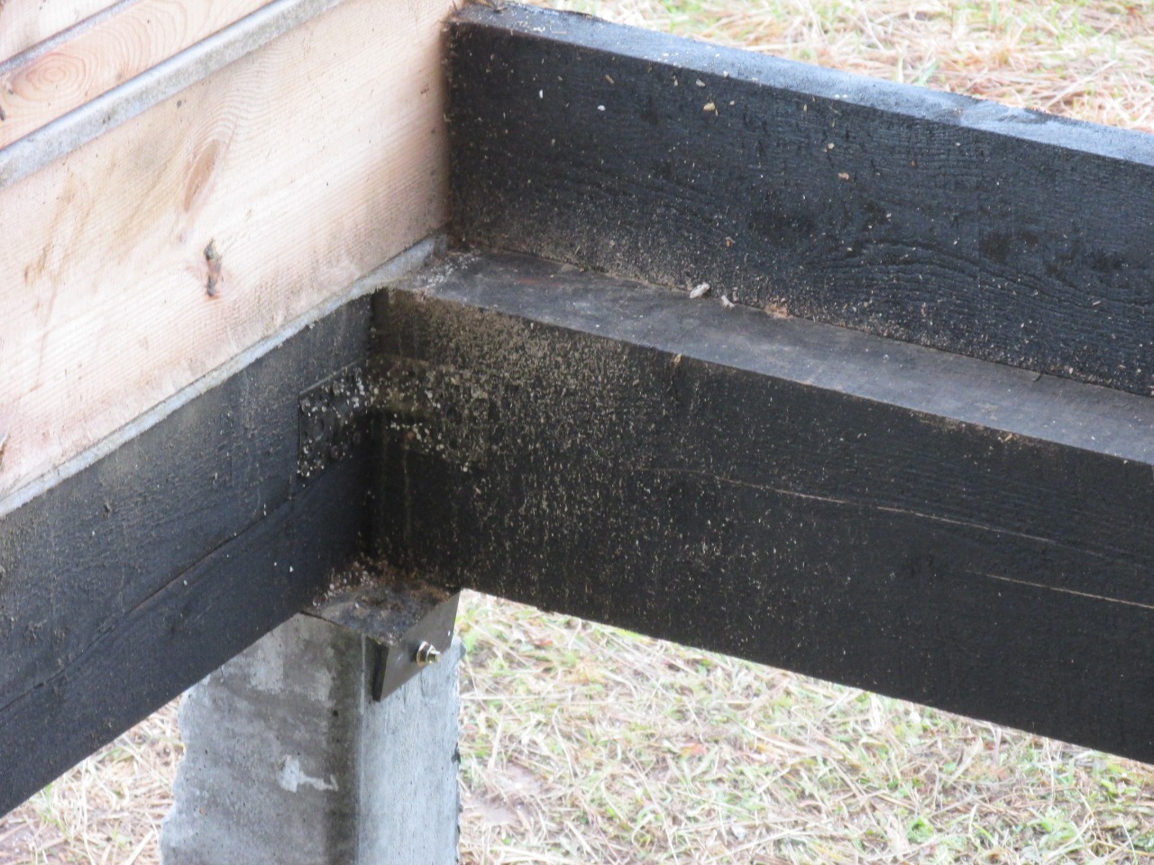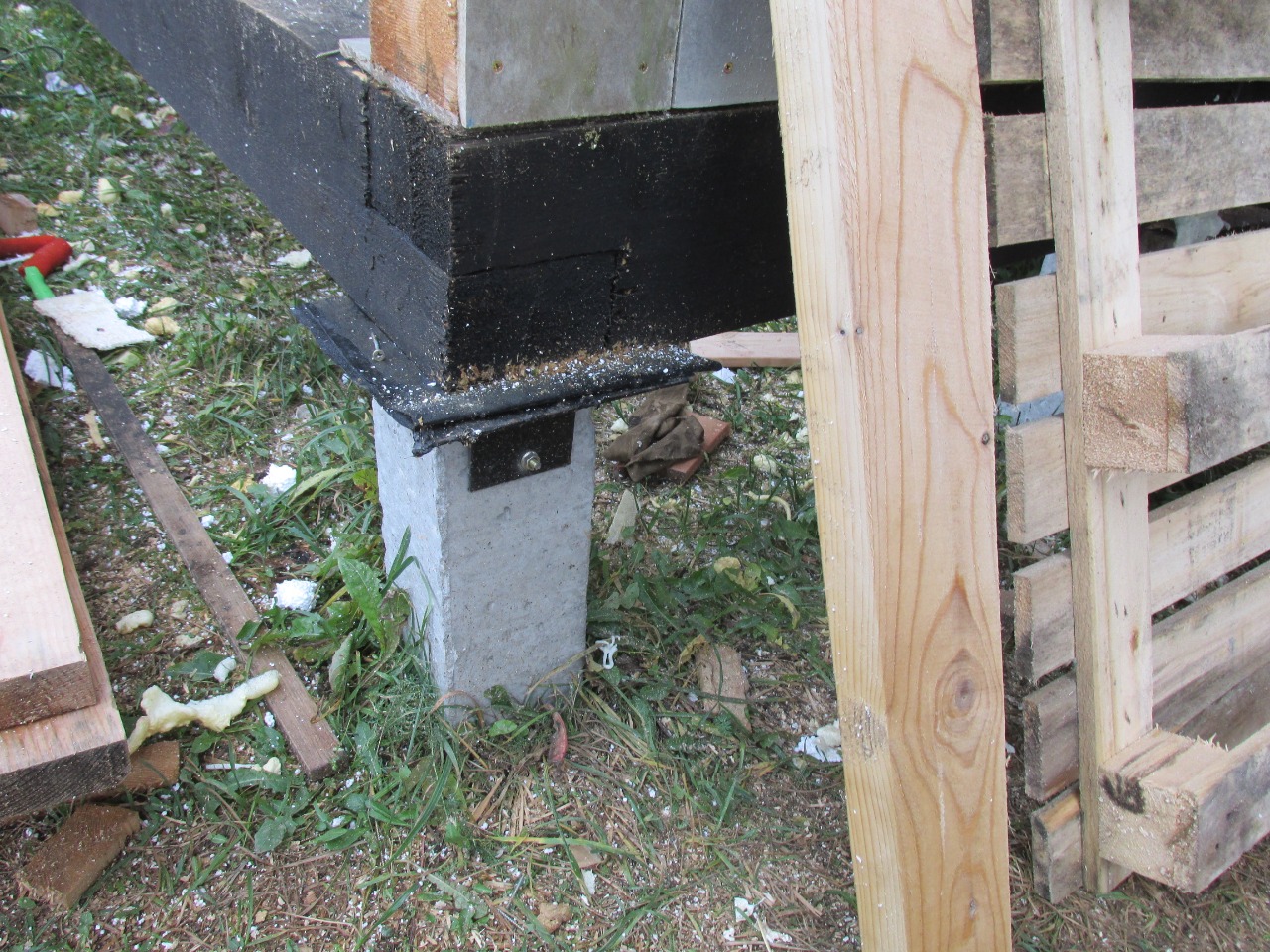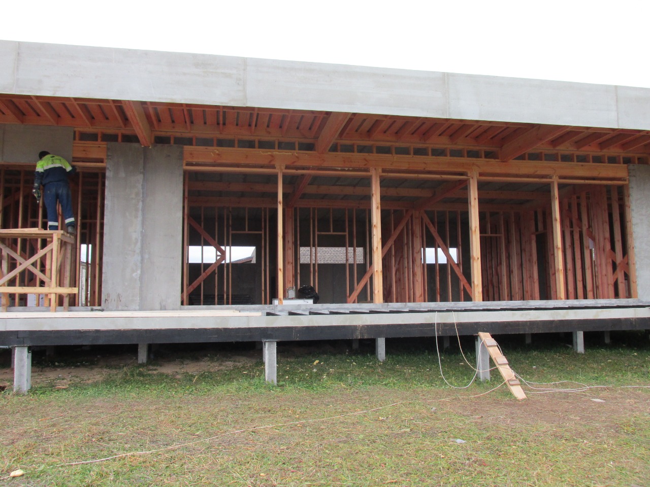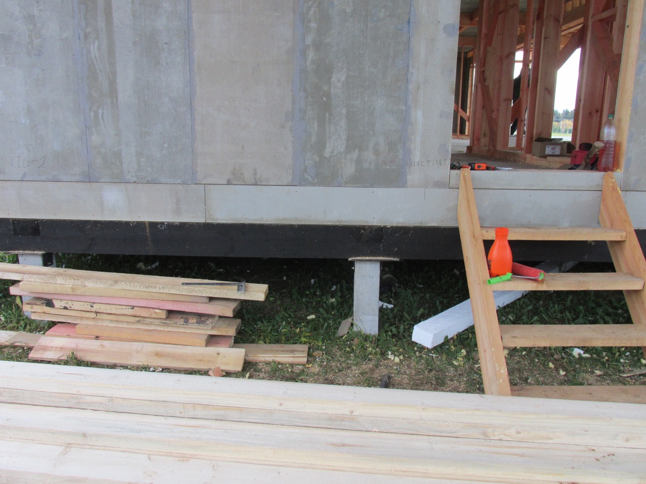 Ростверк изготовлен из калиброванного клееного бруса и защищен снаружи цементно-стружечной плитой