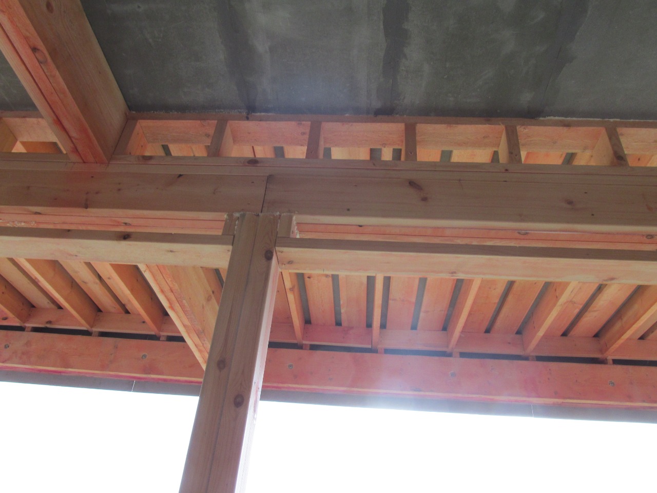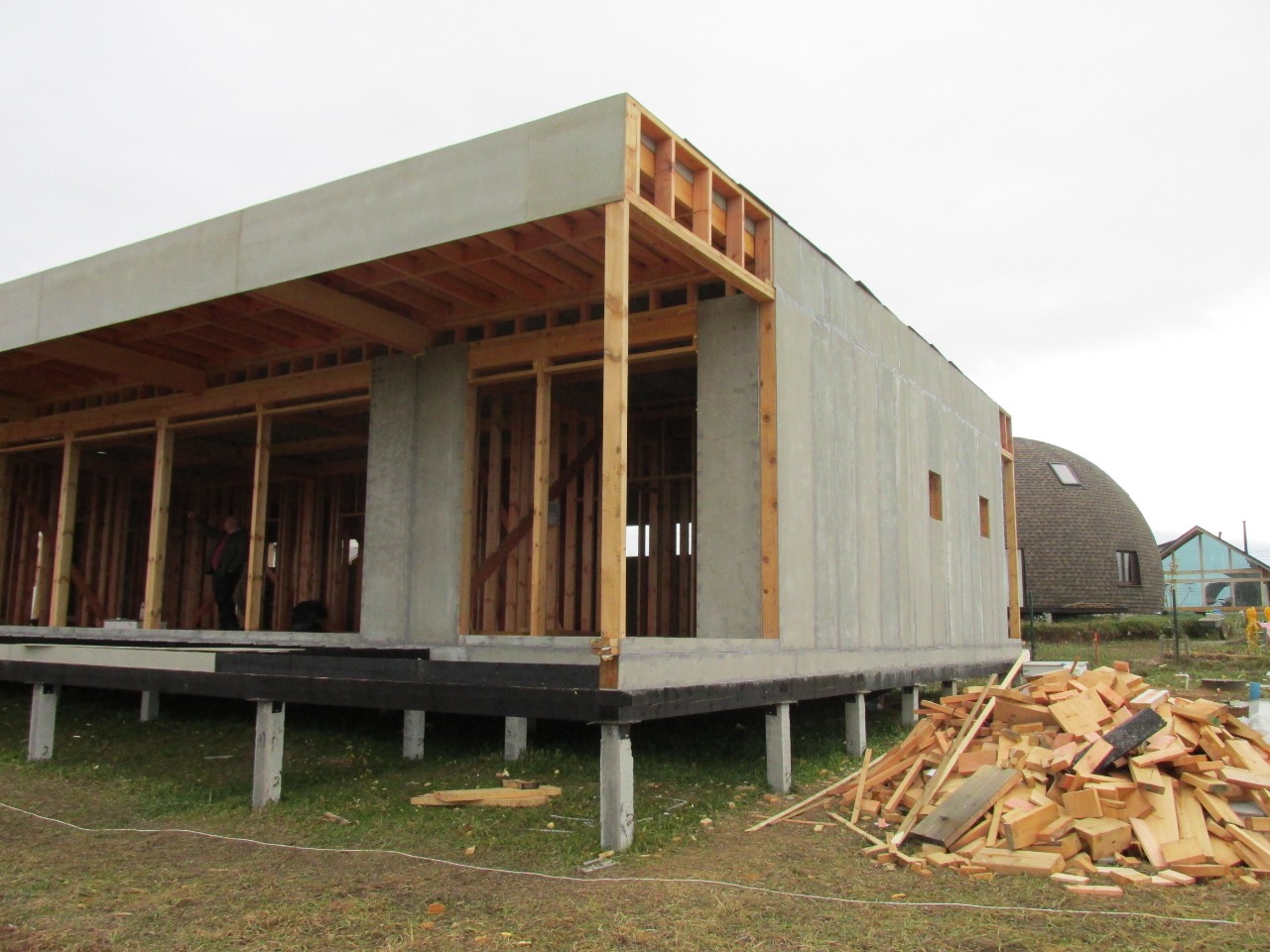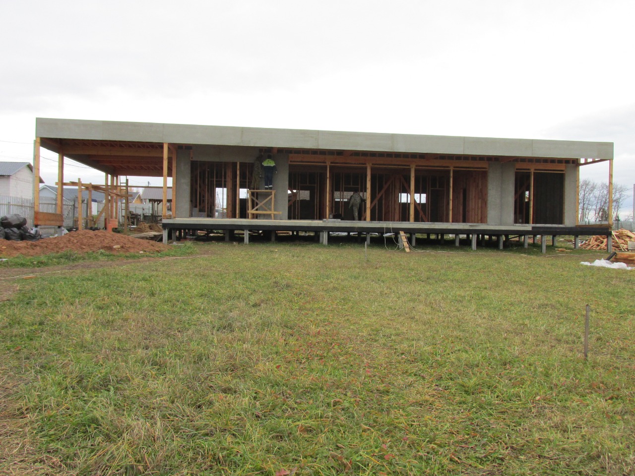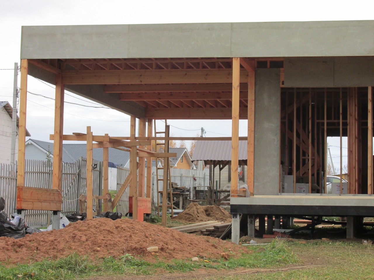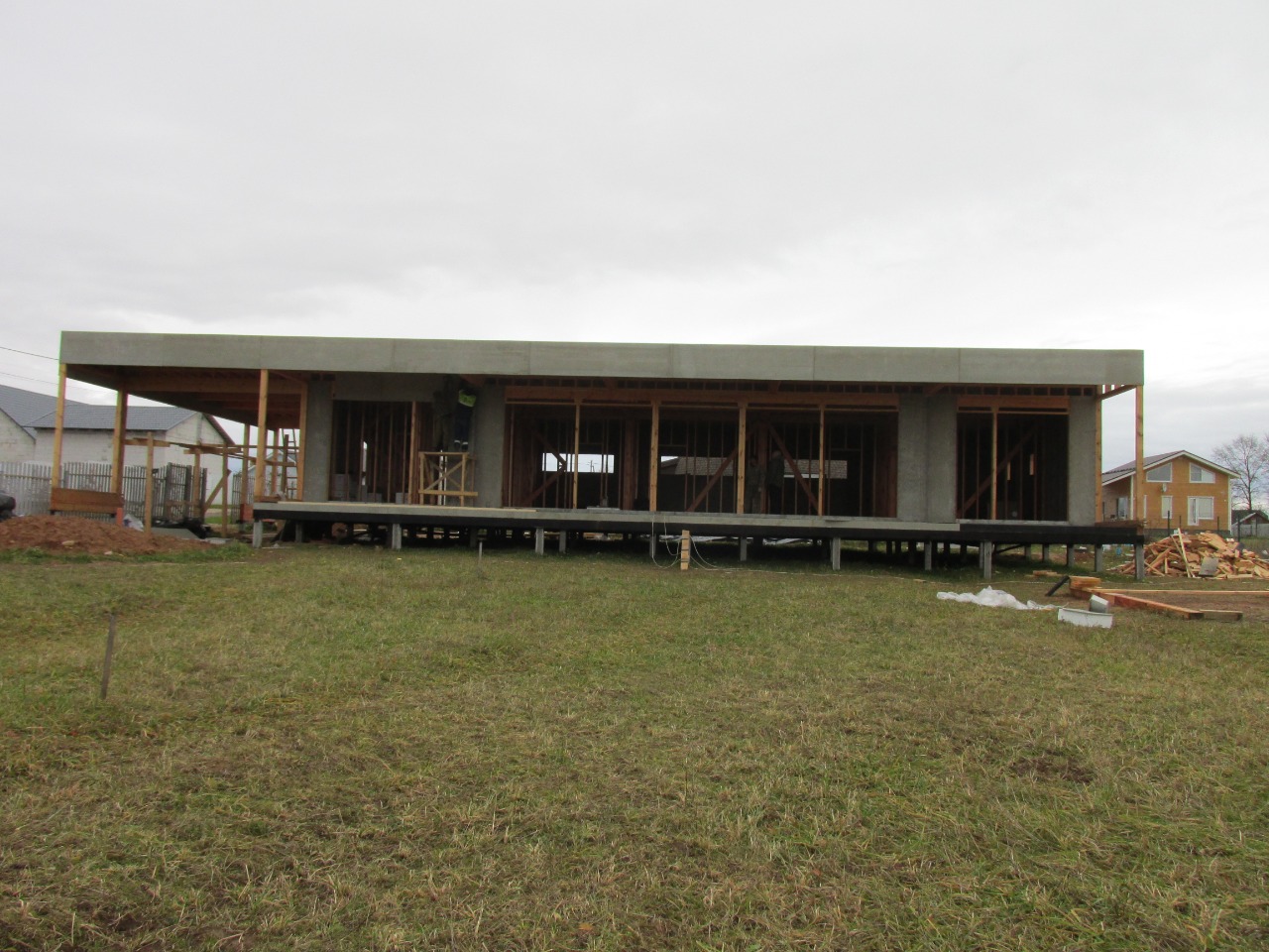 Ростверк изготовлен из калиброванного клееного бруса и защищен снаружи цементно-стружечной плитой