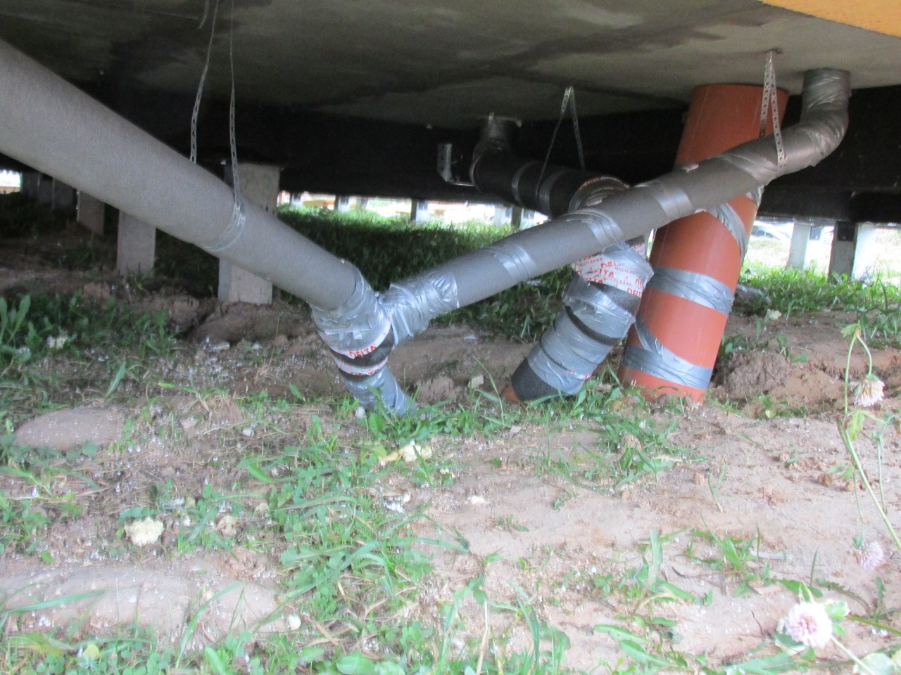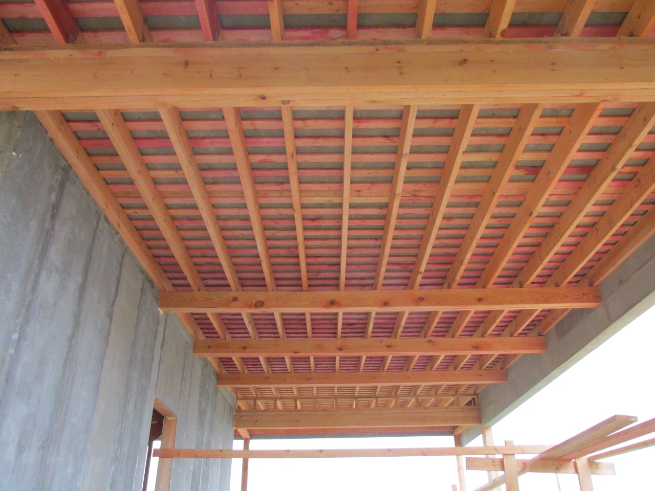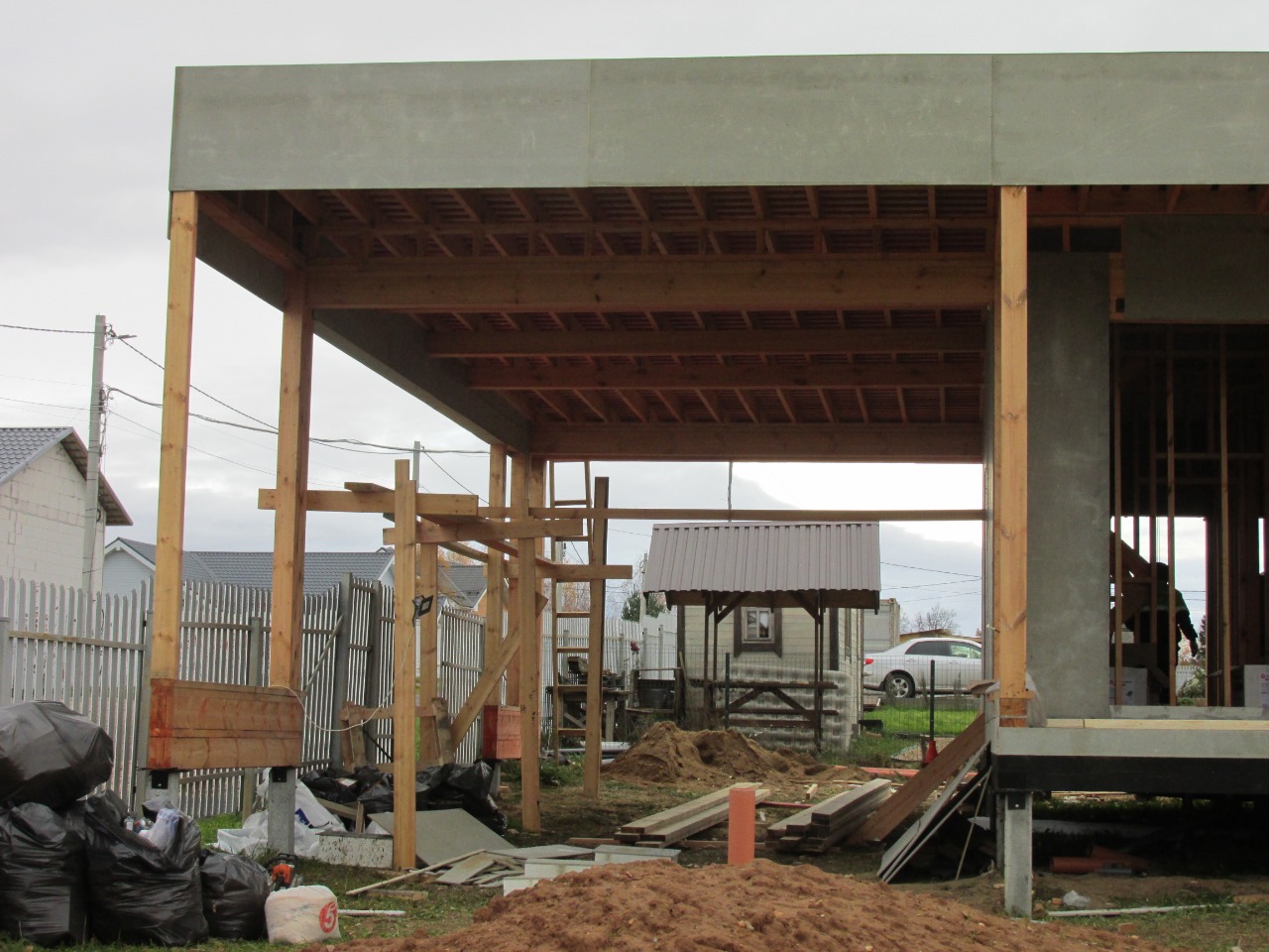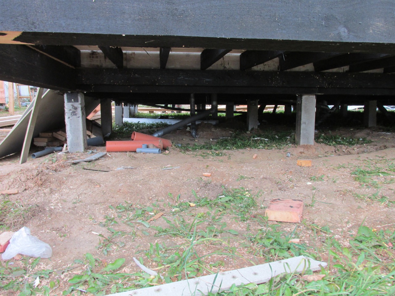 Ростверк изготовлен из калиброванного клееного бруса и защищен снаружи цементно-стружечной плитой