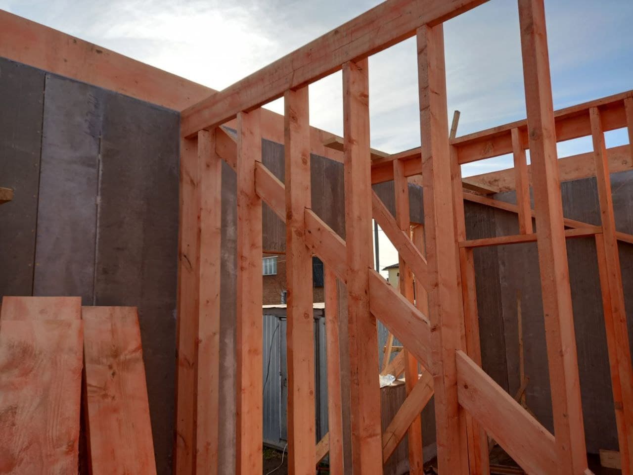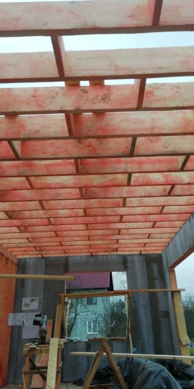 Ростверк изготовлен из калиброванного клееного бруса и защищен снаружи цементно-стружечной плитой