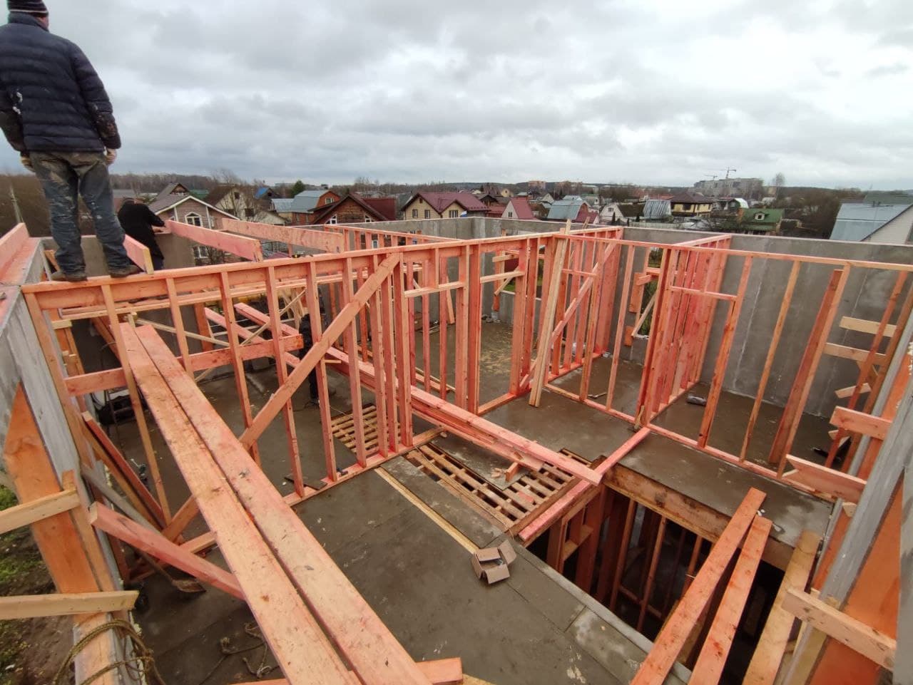 Кровля может быть построена из бруса 150х50мм или SIP панелей. В качестве кровельного материала можно использовать: металлочерепицу, битумную и керамическую черепицу. Также производим кровельные шовные сэндвич-панели.