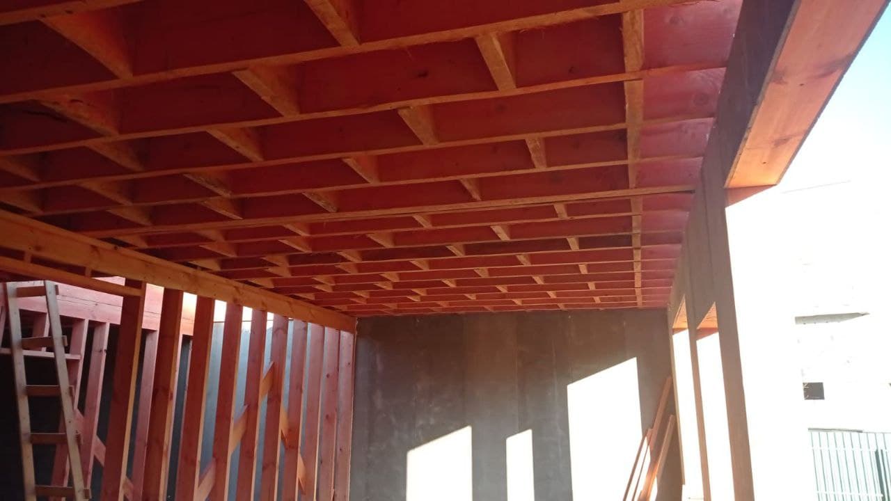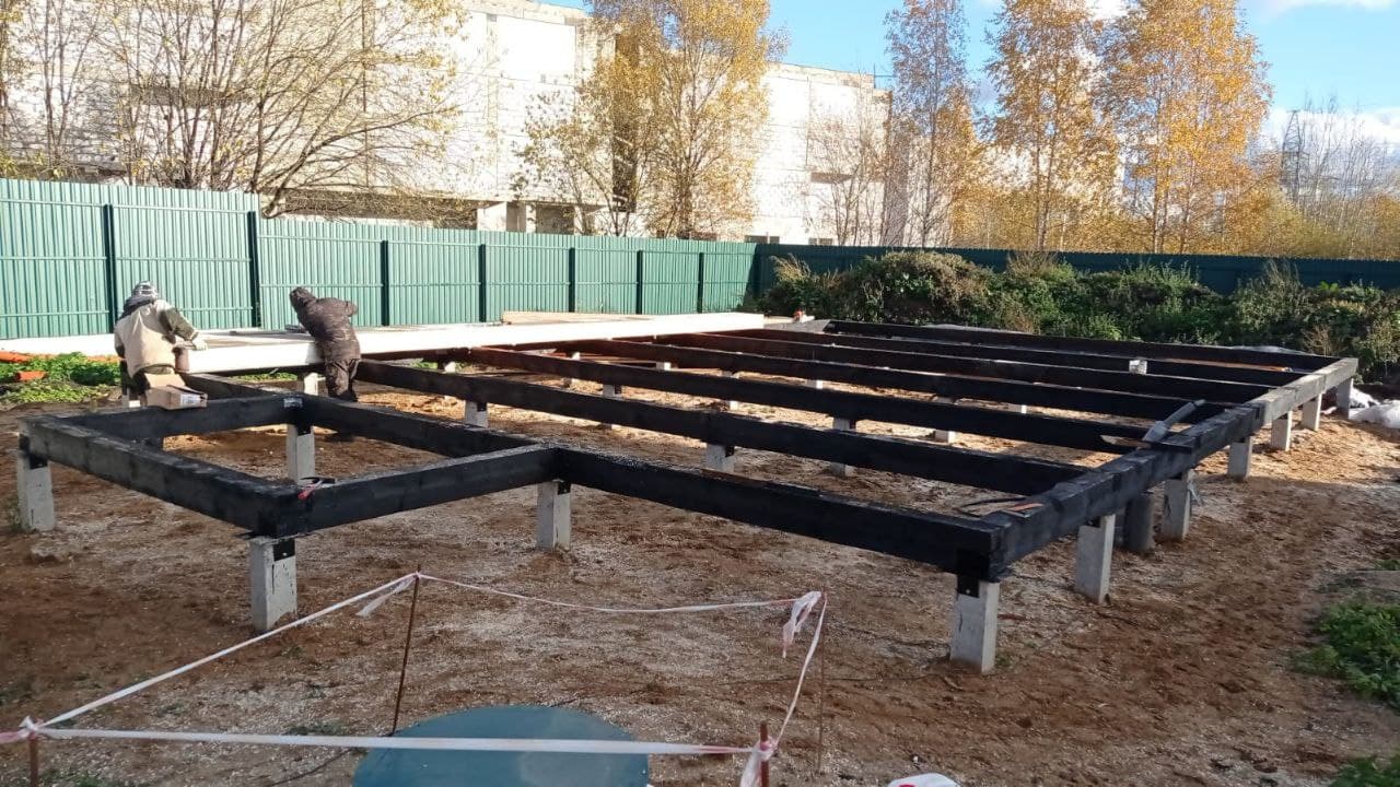 Ростверк изготовлен из калиброванного клееного бруса и защищен снаружи цементно-стружечной плитой