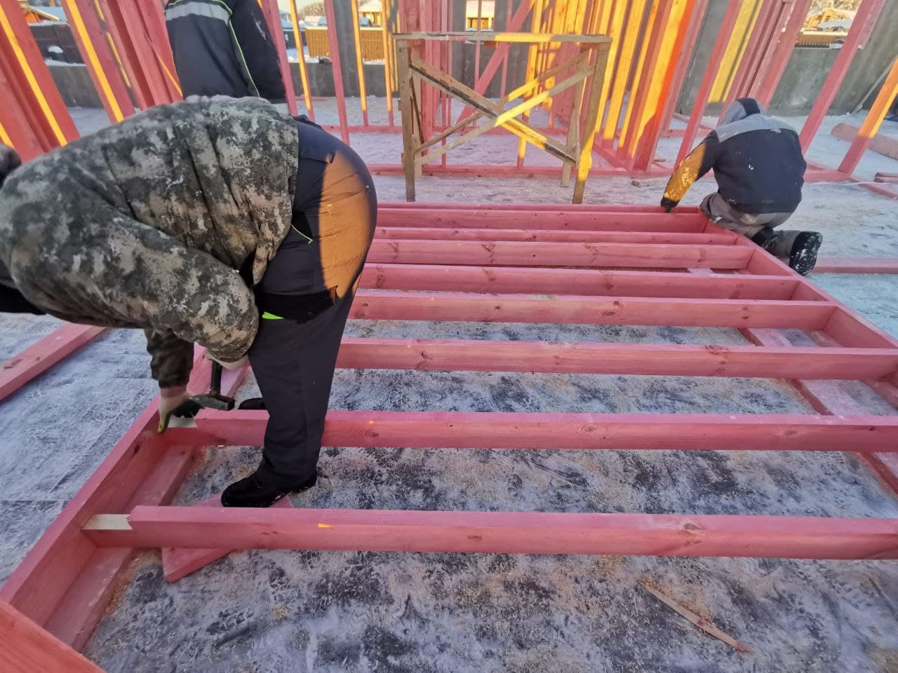 Ростверк изготовлен из калиброванного клееного бруса и защищен снаружи цементно-стружечной плитой