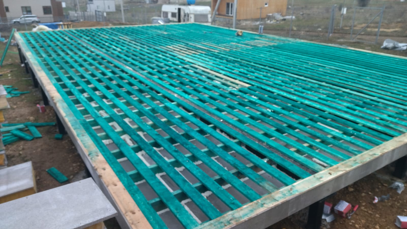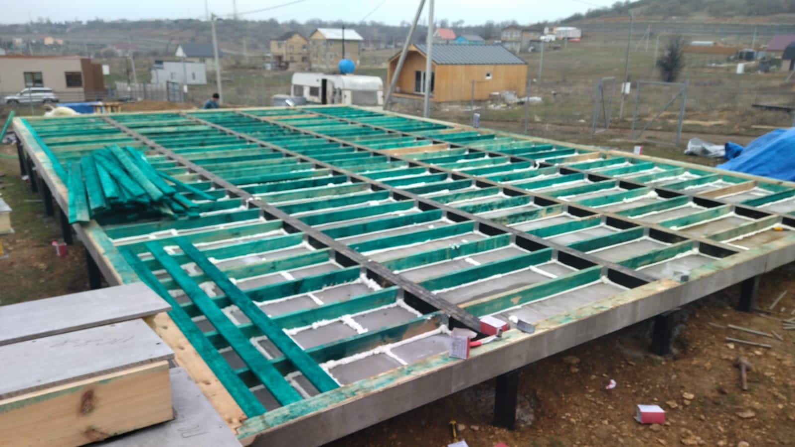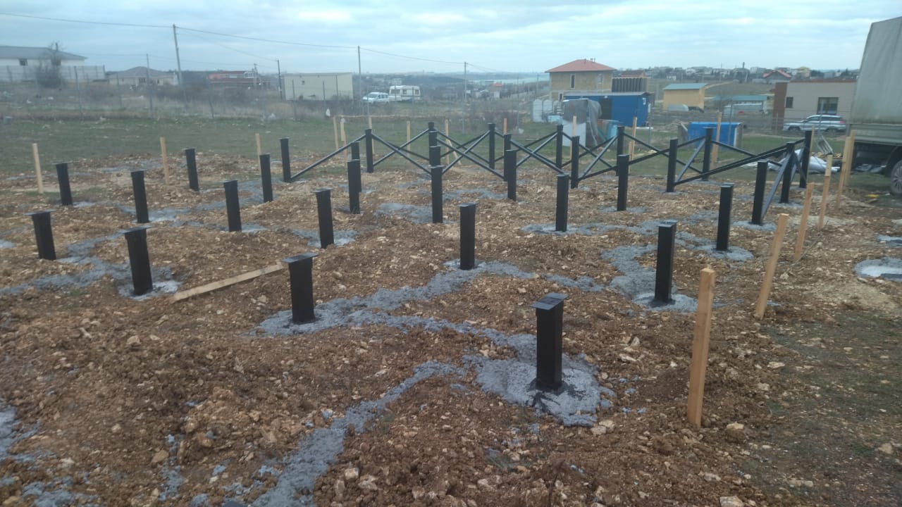 Ростверк изготовлен из калиброванного клееного бруса и защищен снаружи цементно-стружечной плитой