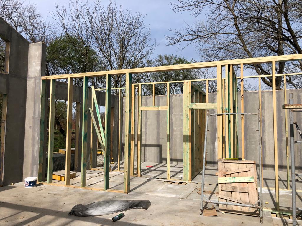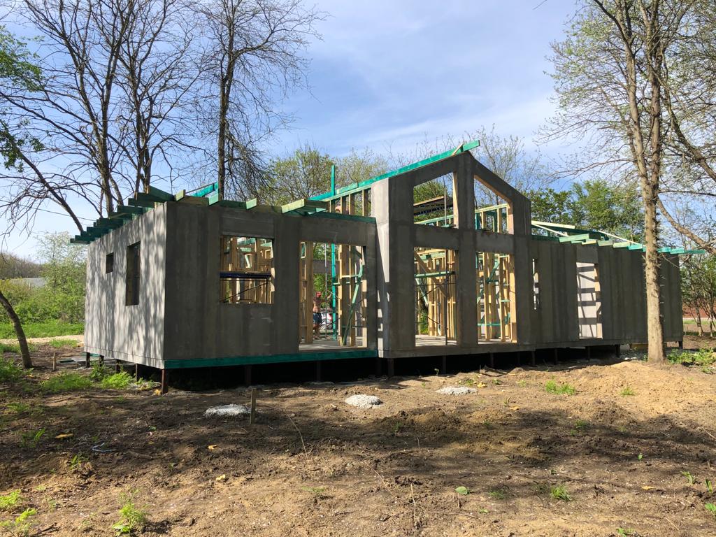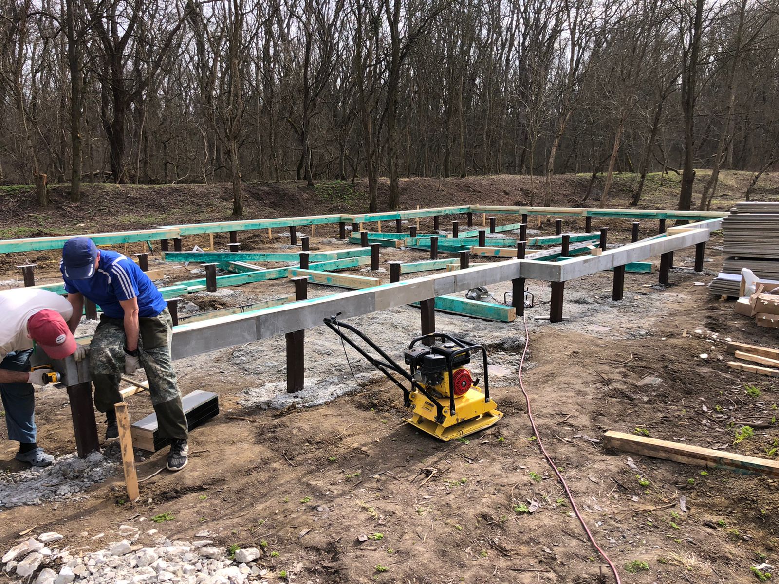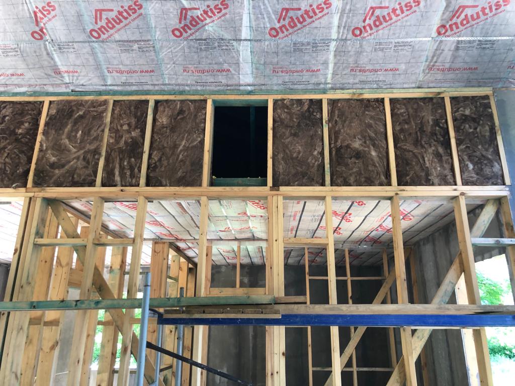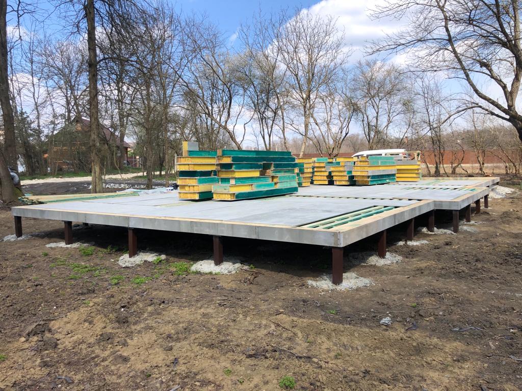 Ростверк изготовлен из калиброванного клееного бруса и защищен снаружи цементно-стружечной плитой