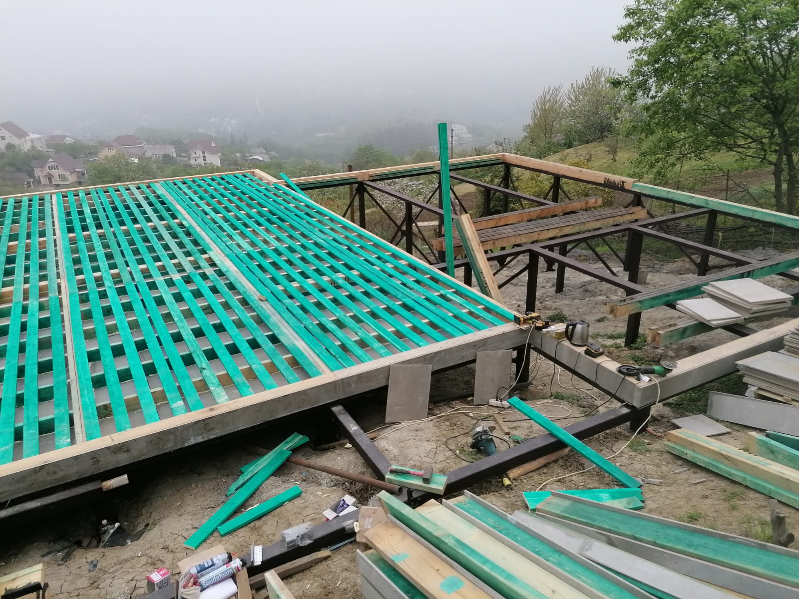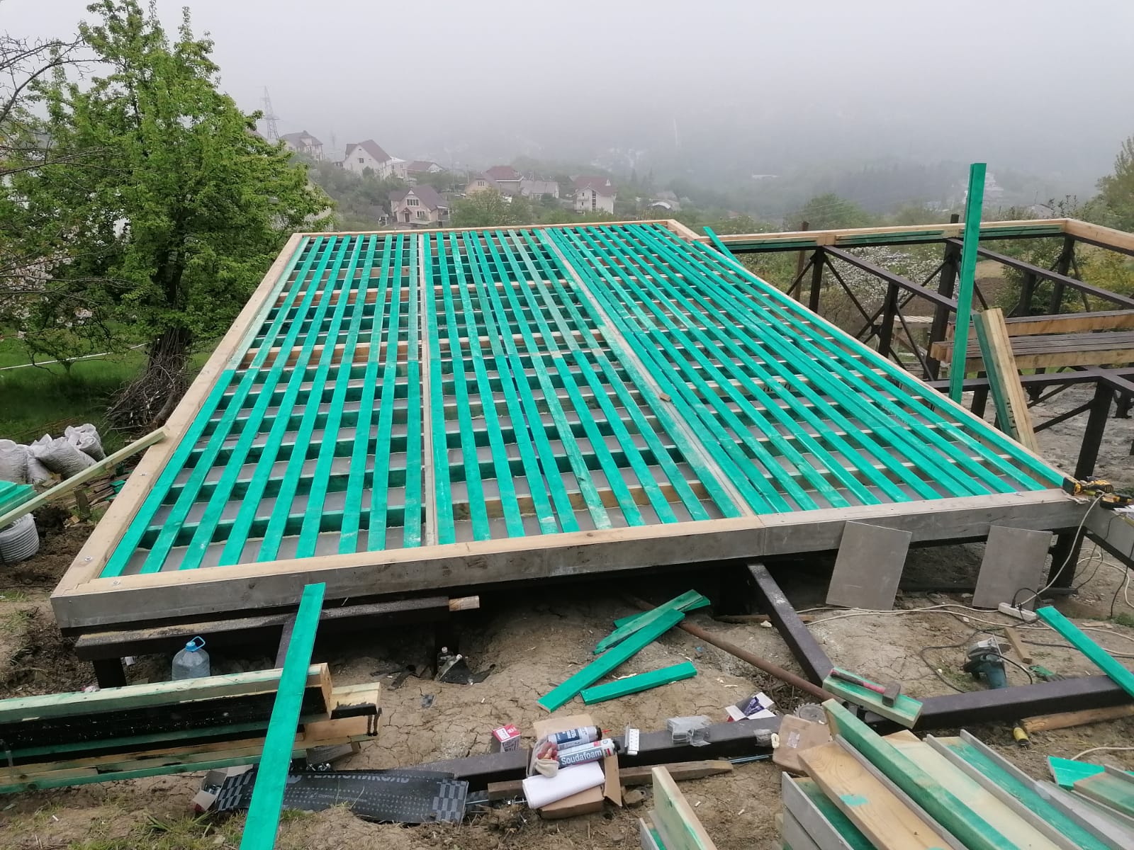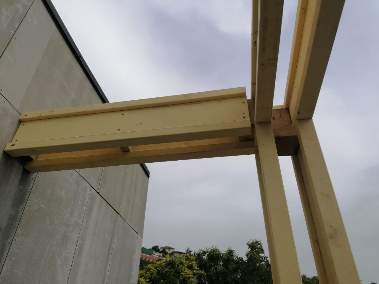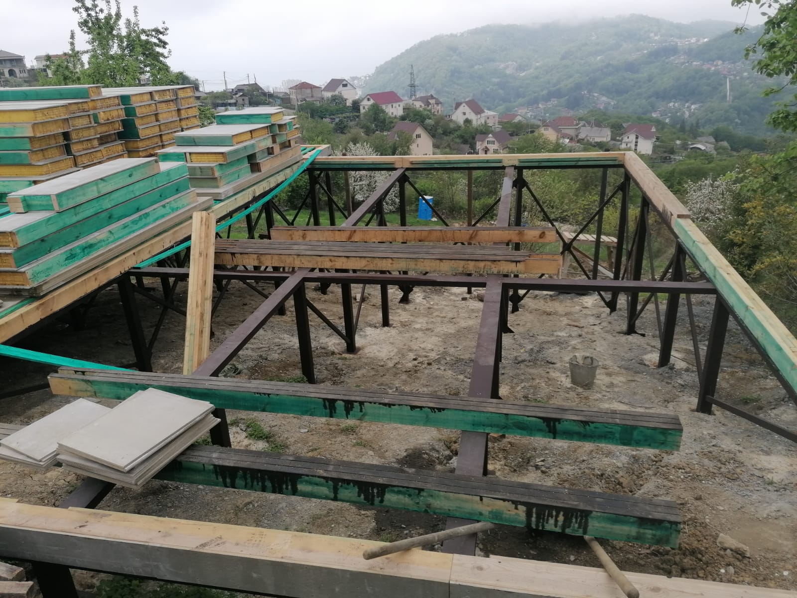 Ростверк изготовлен из калиброванного клееного бруса и защищен снаружи цементно-стружечной плитой