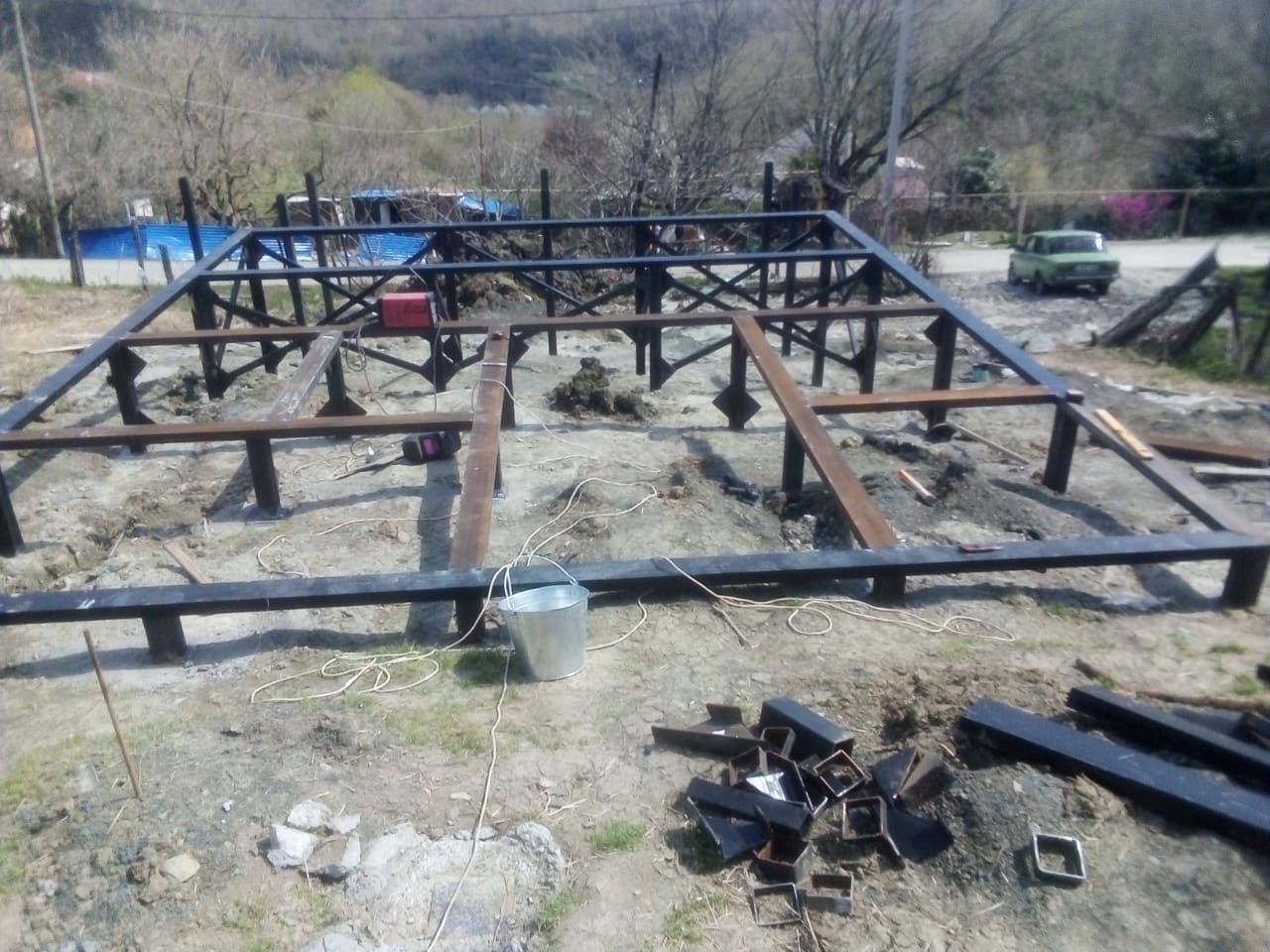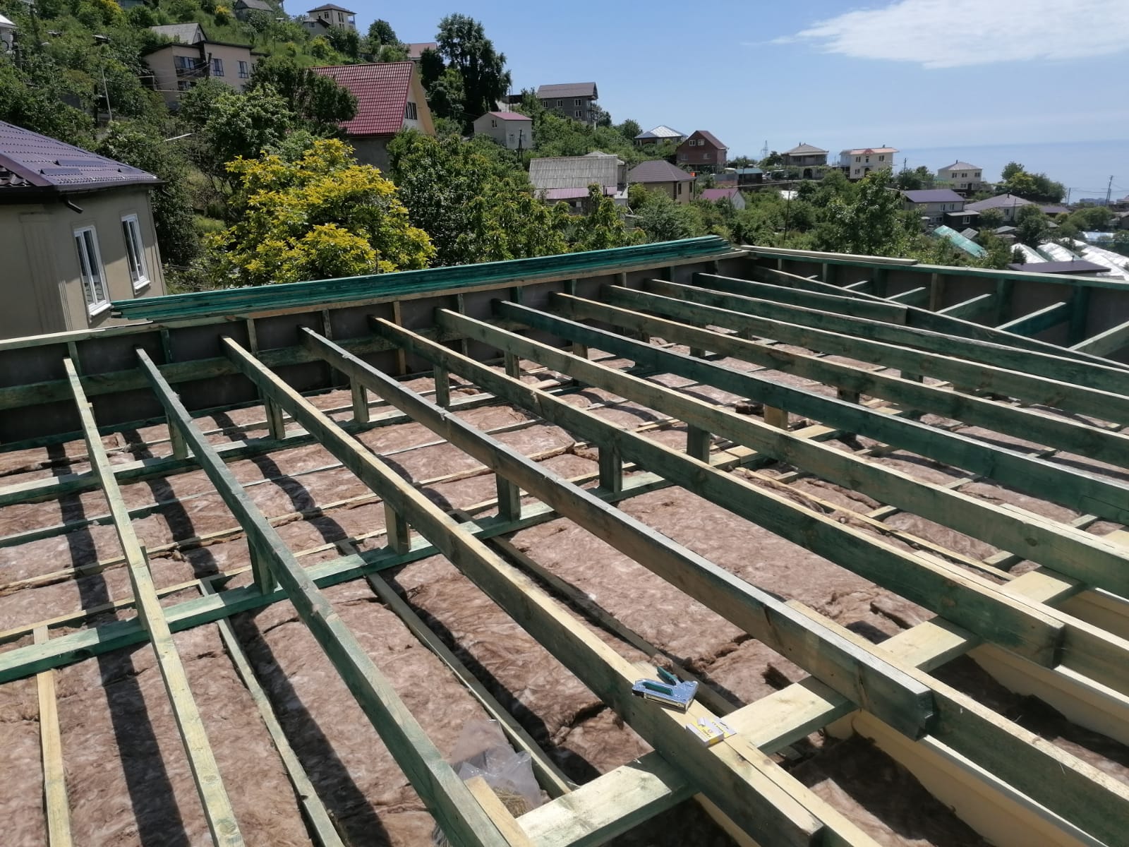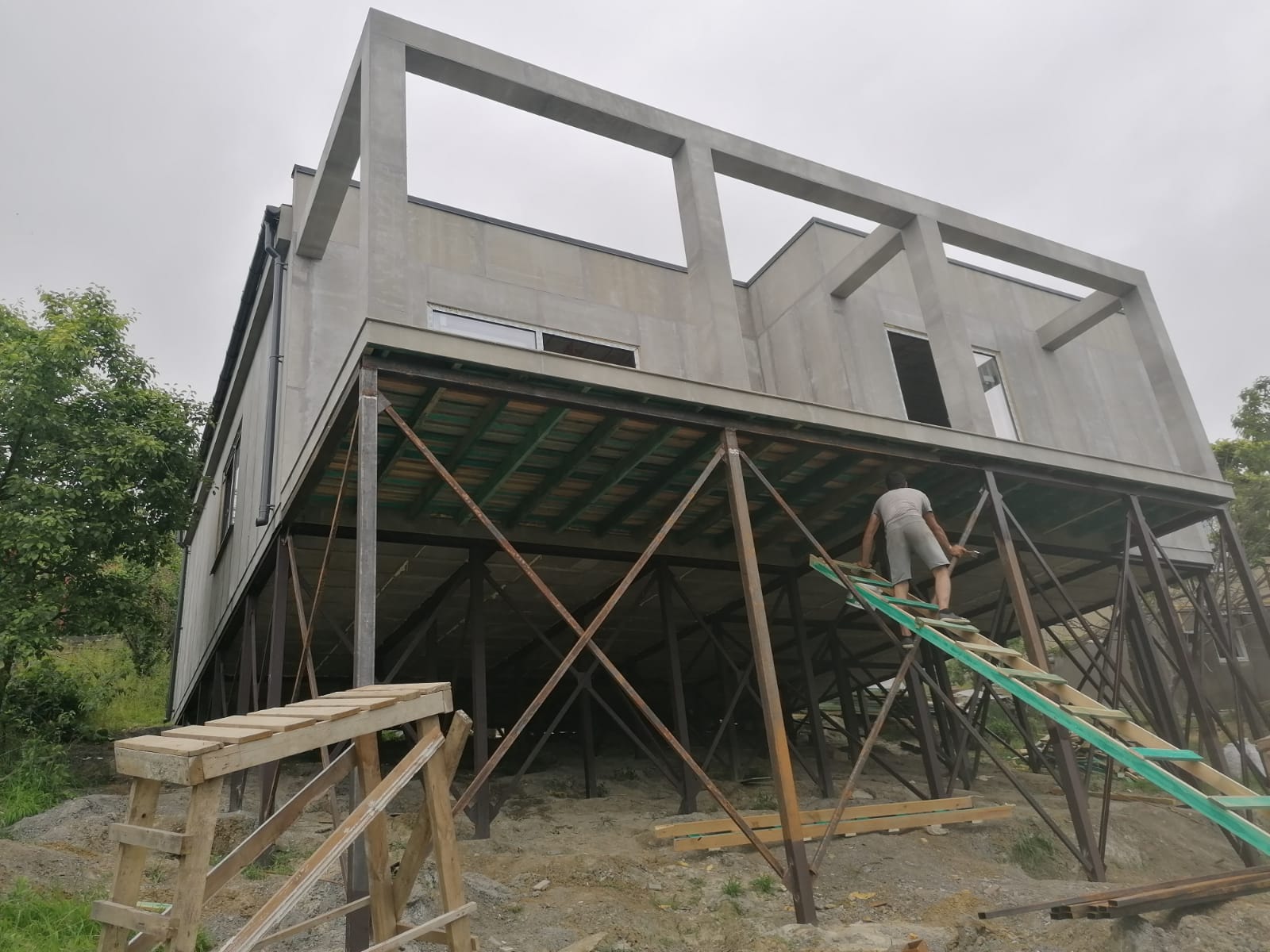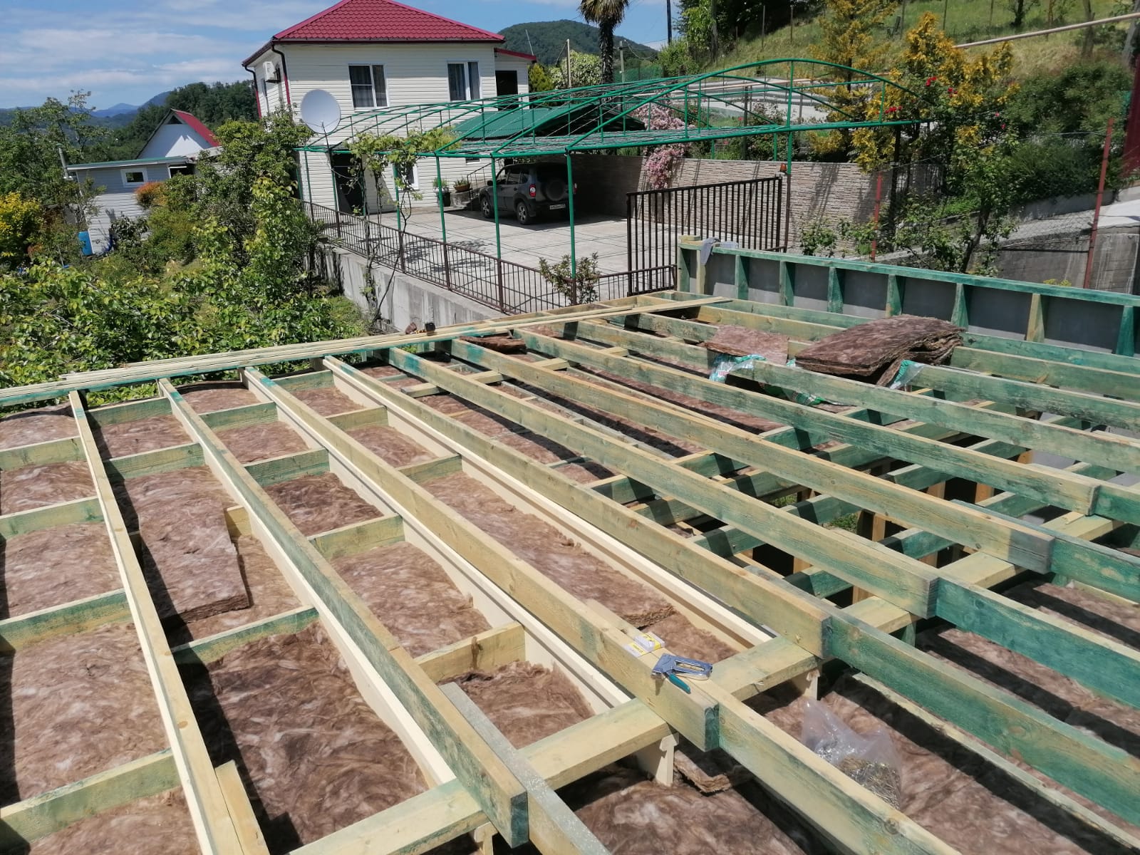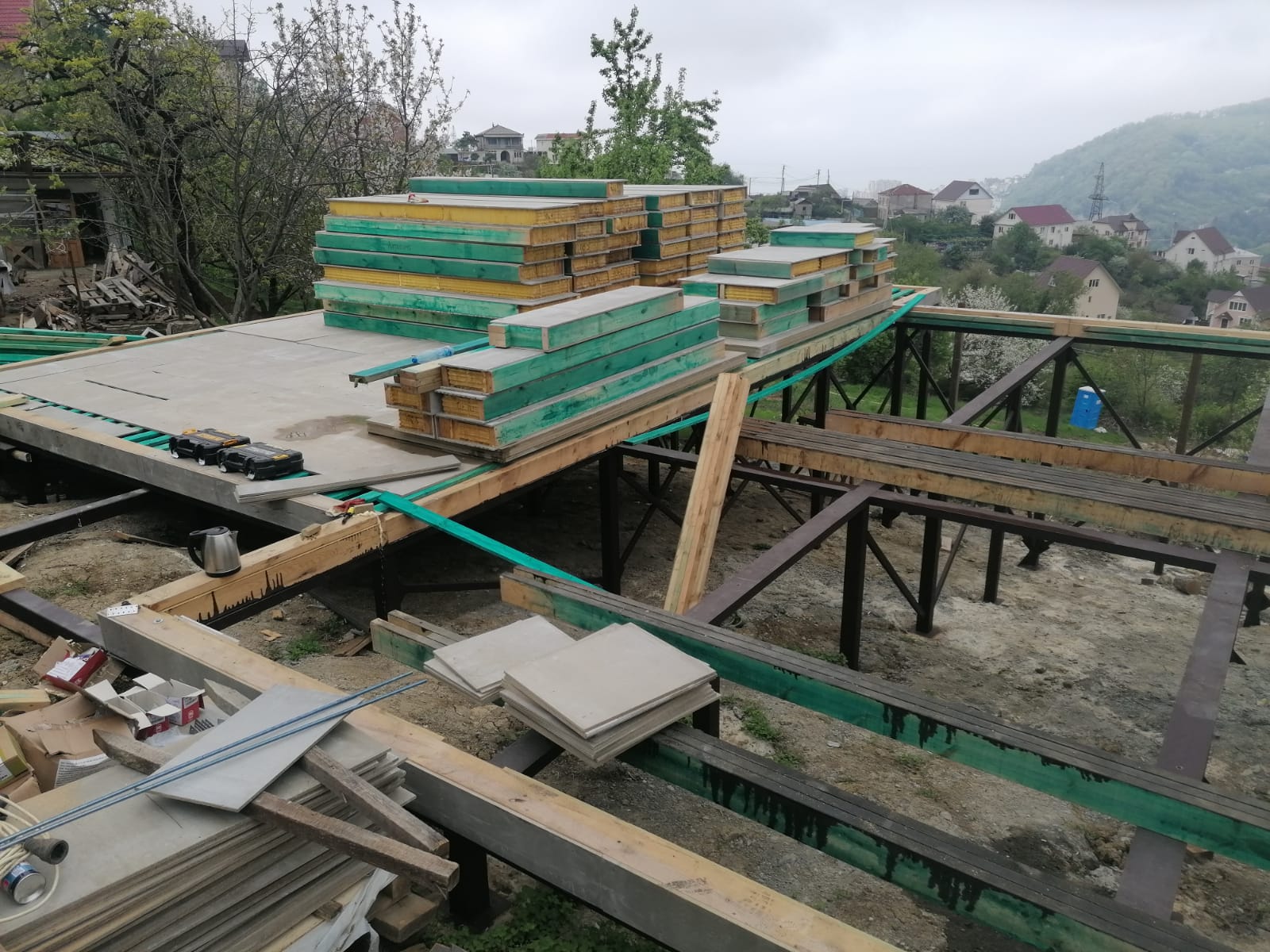 Ростверк изготовлен из калиброванного клееного бруса и защищен снаружи цементно-стружечной плитой