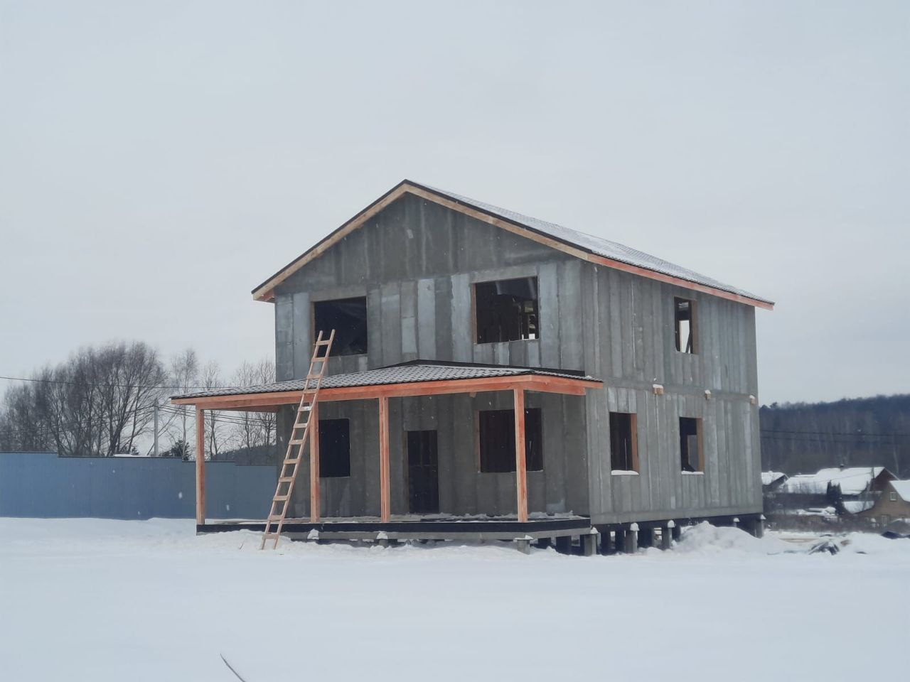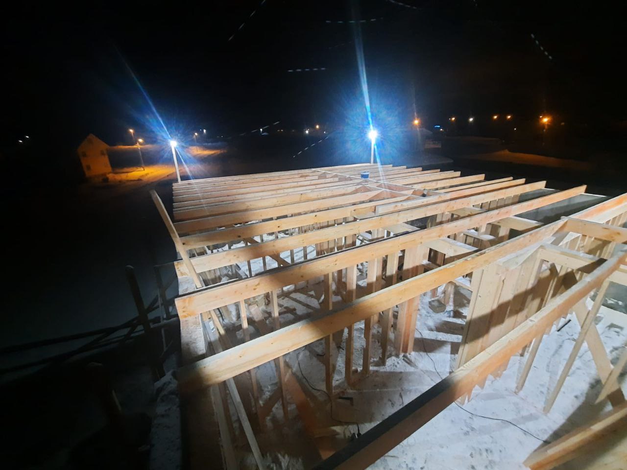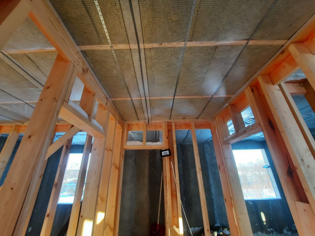 Ростверк изготовлен из калиброванного клееного бруса и защищен снаружи цементно-стружечной плитой
