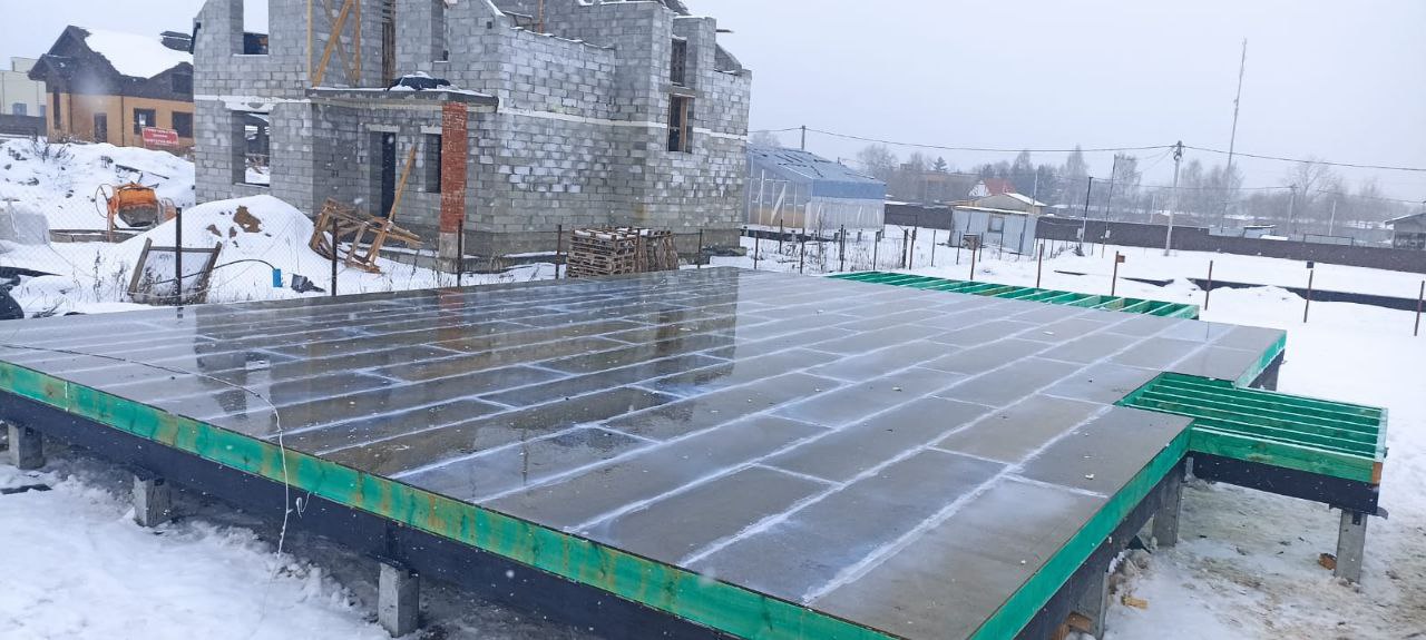 Ростверк изготовлен из калиброванного клееного бруса и защищен снаружи цементно-стружечной плитой