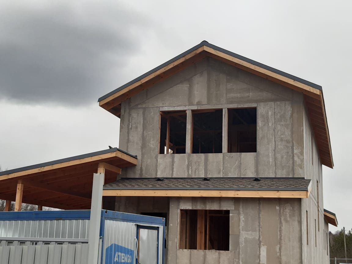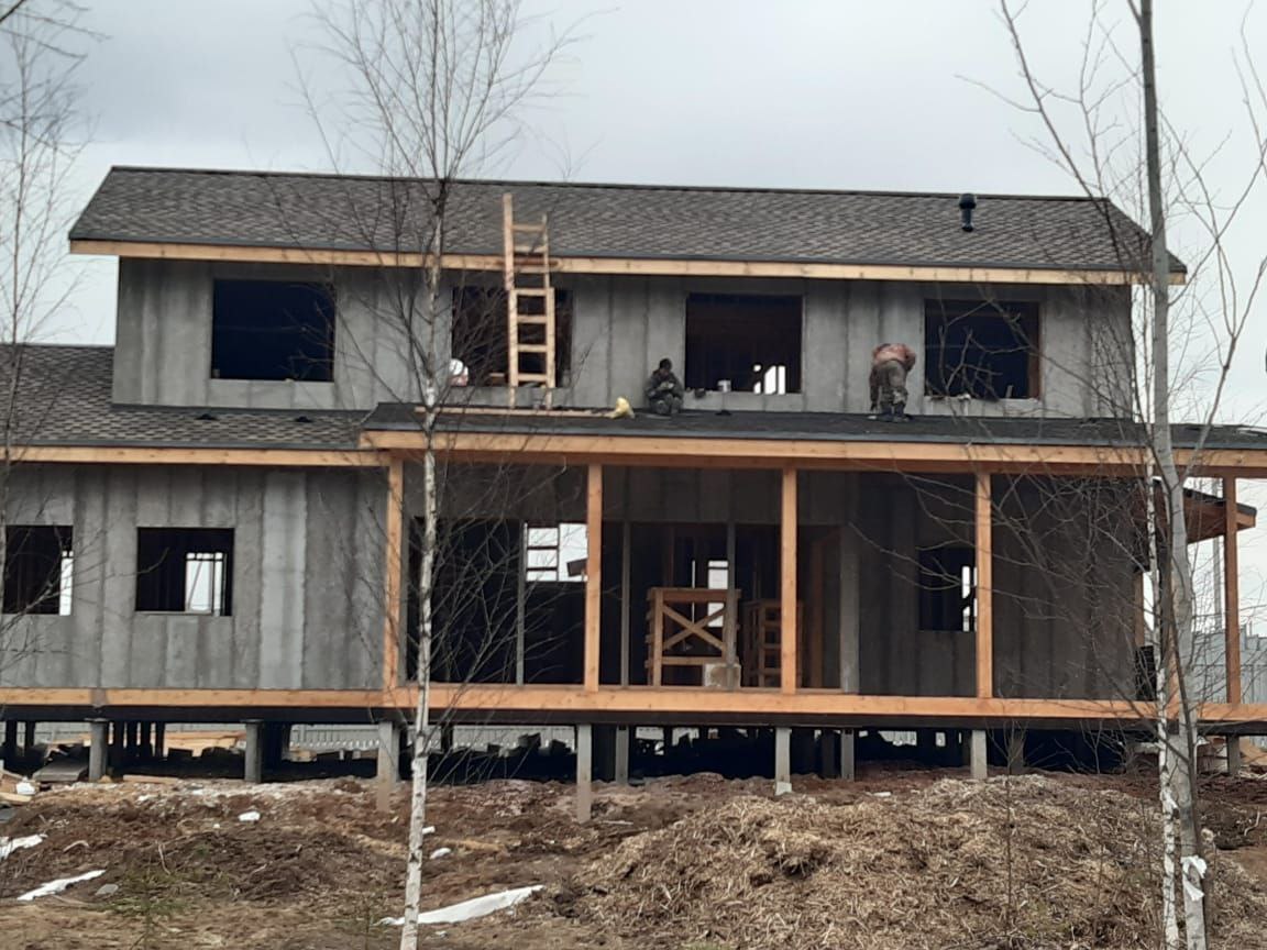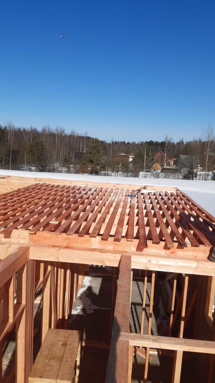 Кровля может быть построена из бруса 150х50мм или SIP панелей. В качестве кровельного материала можно использовать: металлочерепицу, битумную и керамическую черепицу. Также производим кровельные шовные сэндвич-панели.