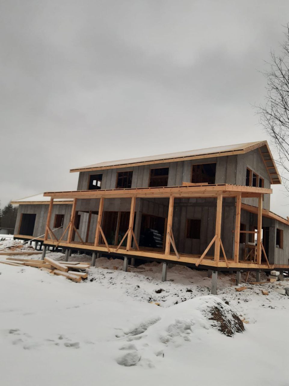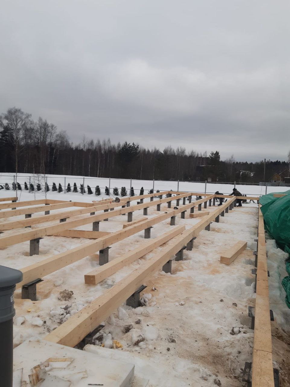 Ростверк изготовлен из калиброванного клееного бруса и защищен снаружи цементно-стружечной плитой