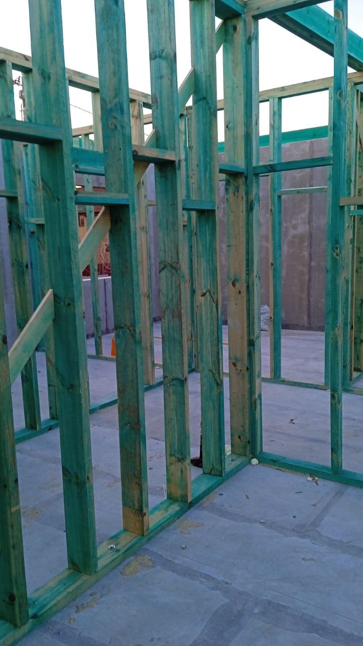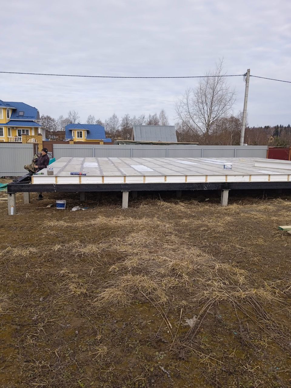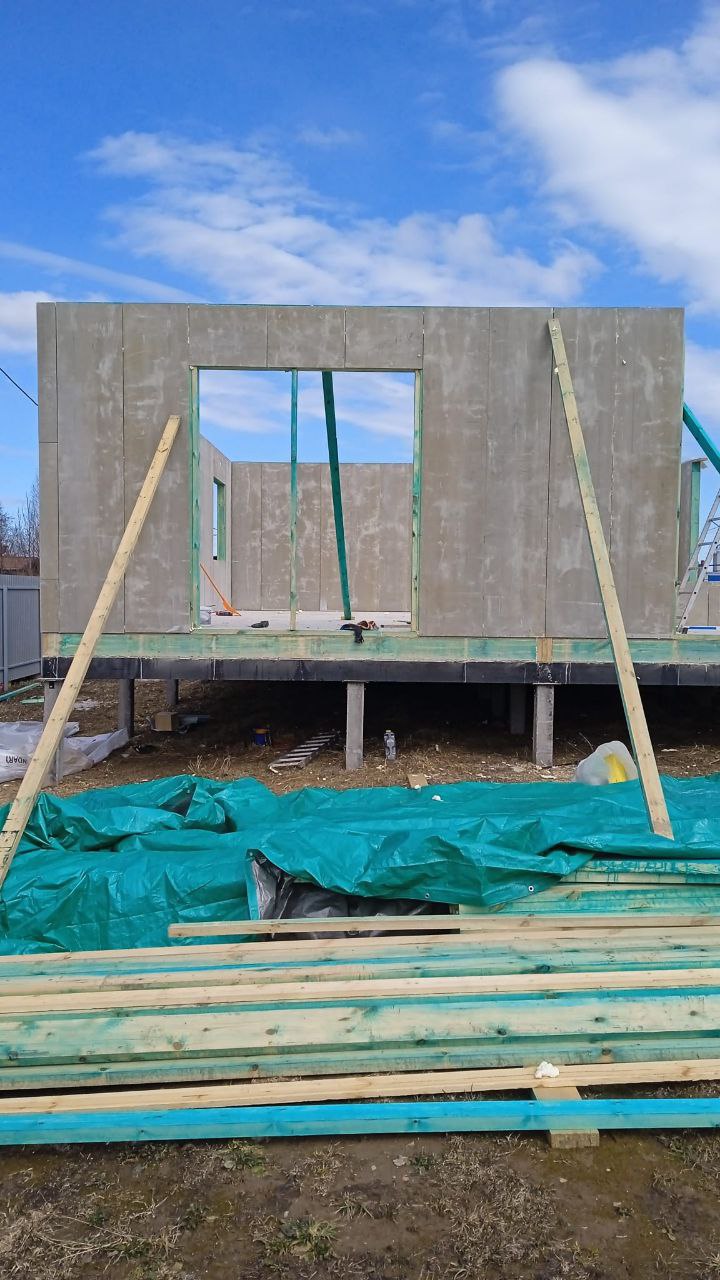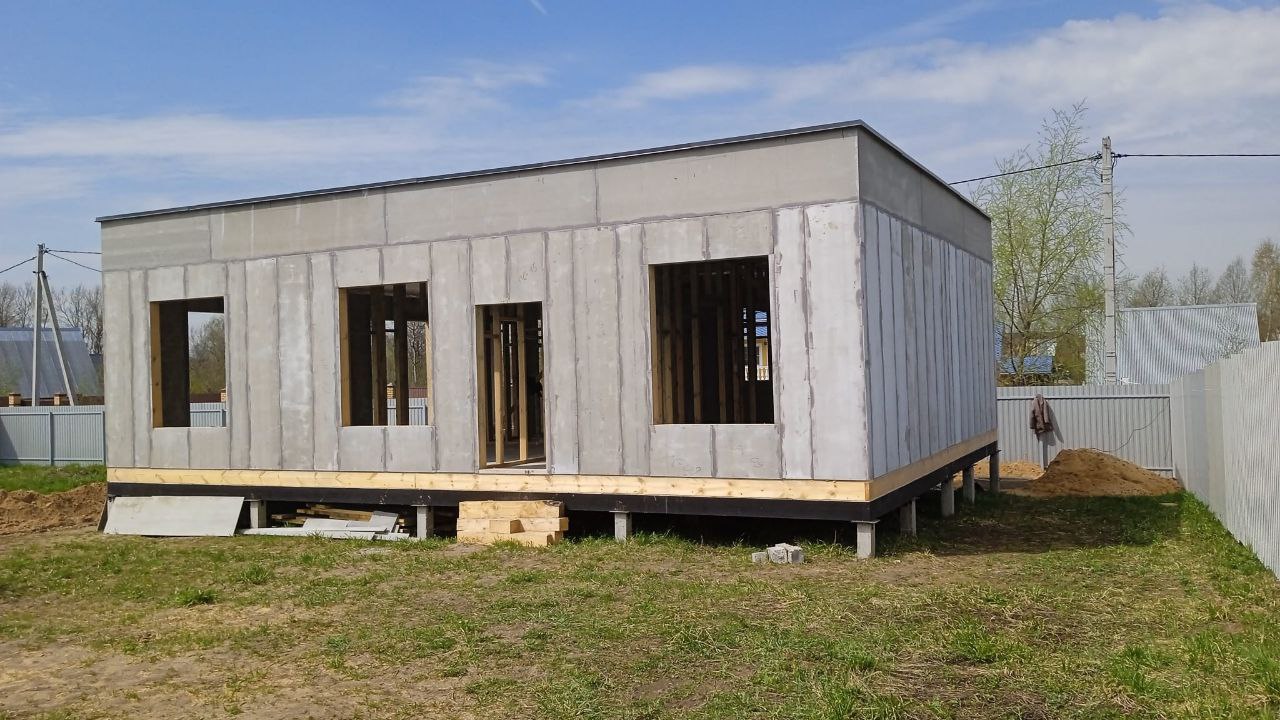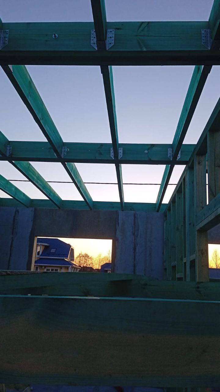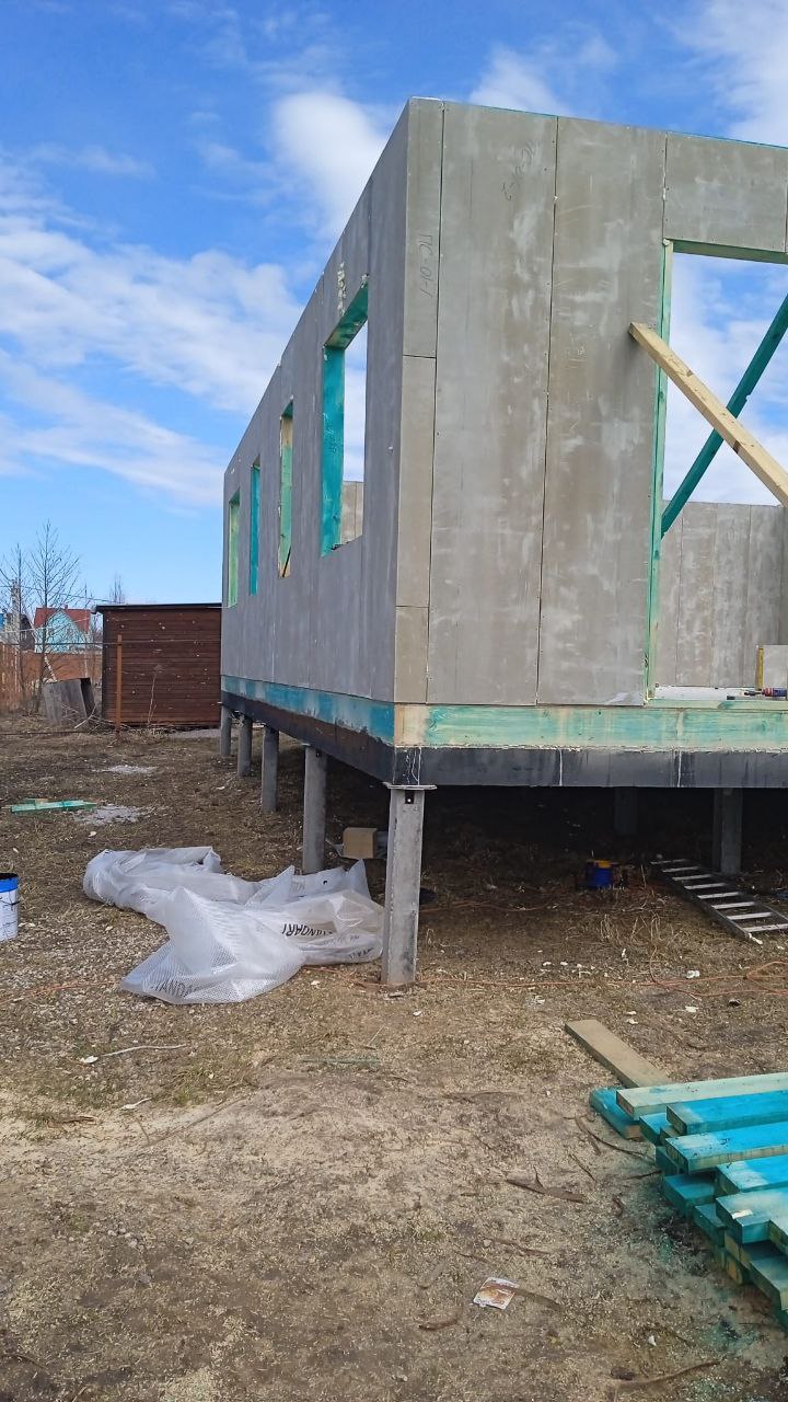 Ростверк изготовлен из калиброванного клееного бруса и защищен снаружи цементно-стружечной плитой