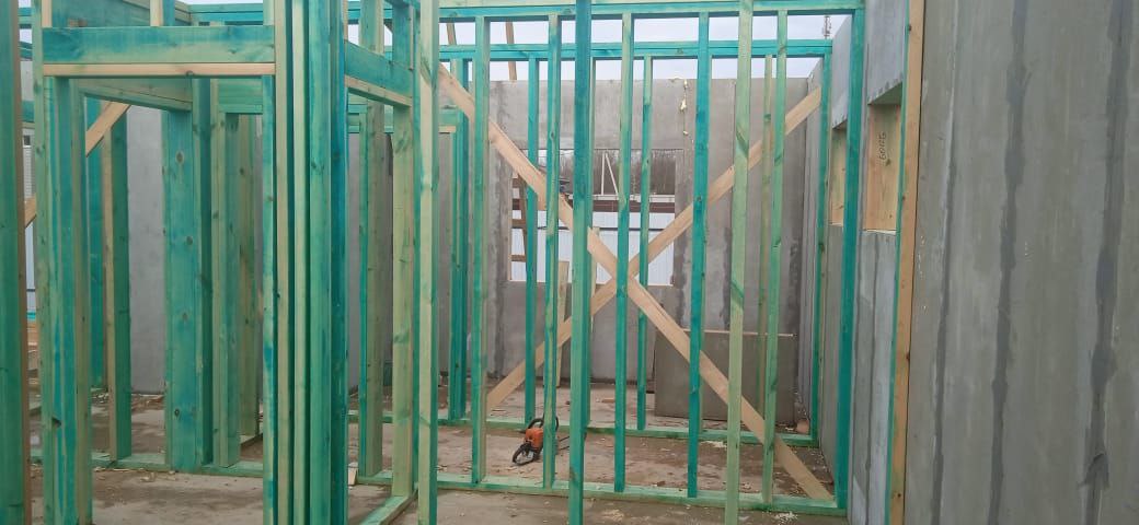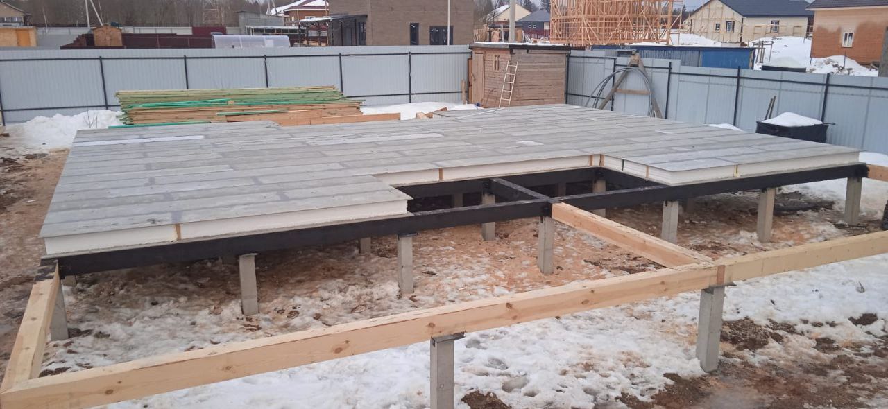 Ростверк изготовлен из калиброванного клееного бруса и защищен снаружи цементно-стружечной плитой