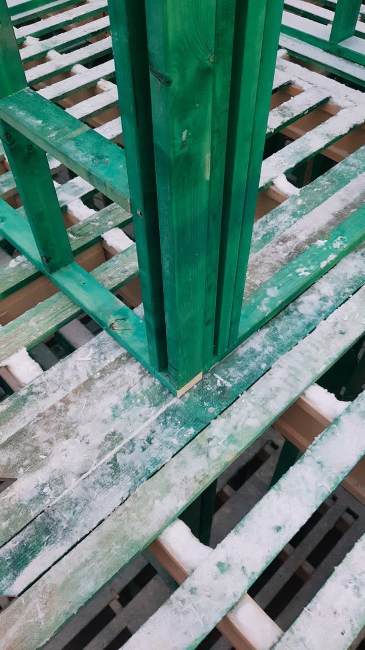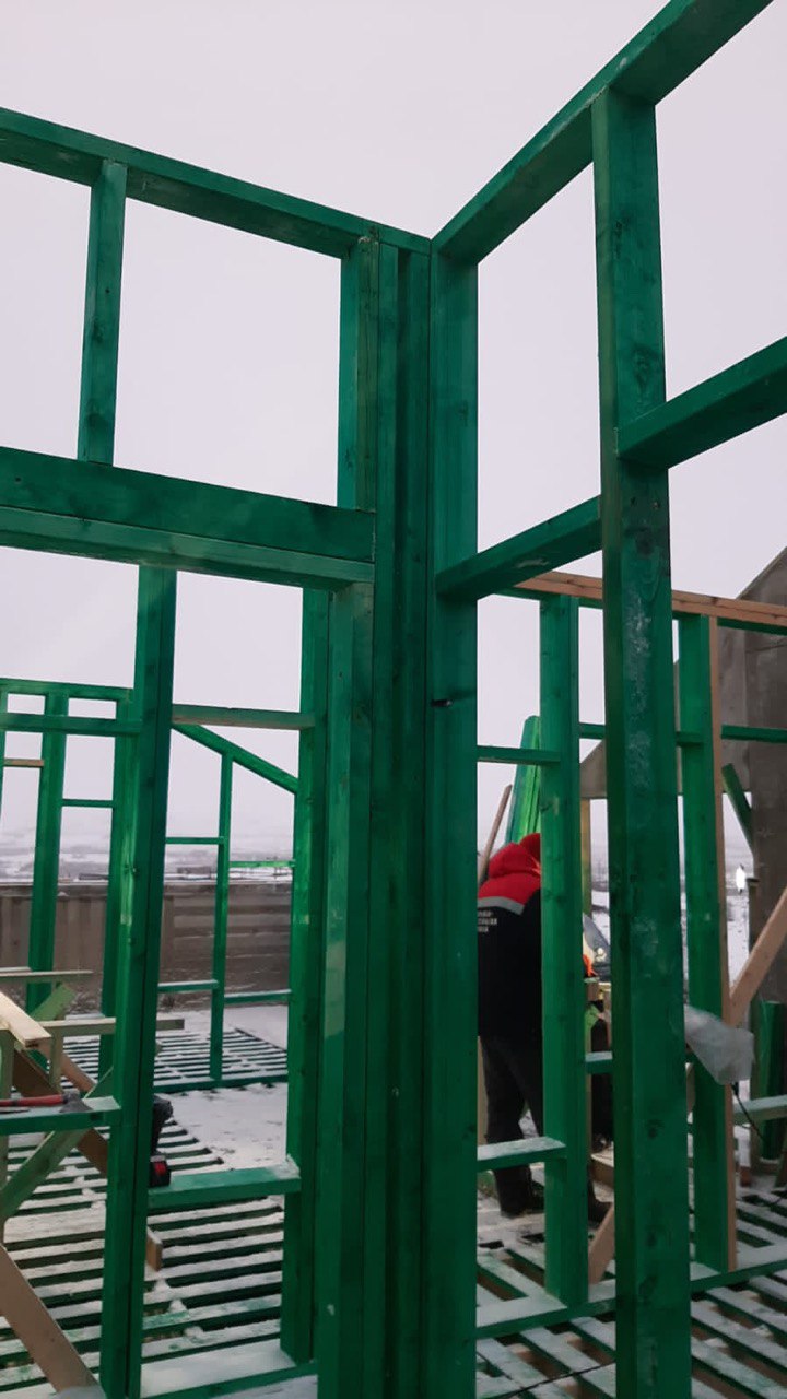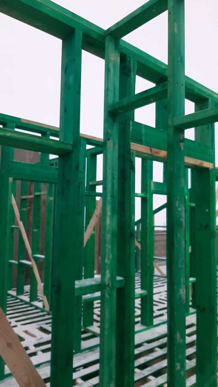Ростверк изготовлен из калиброванного клееного бруса и защищен снаружи цементно-стружечной плитой