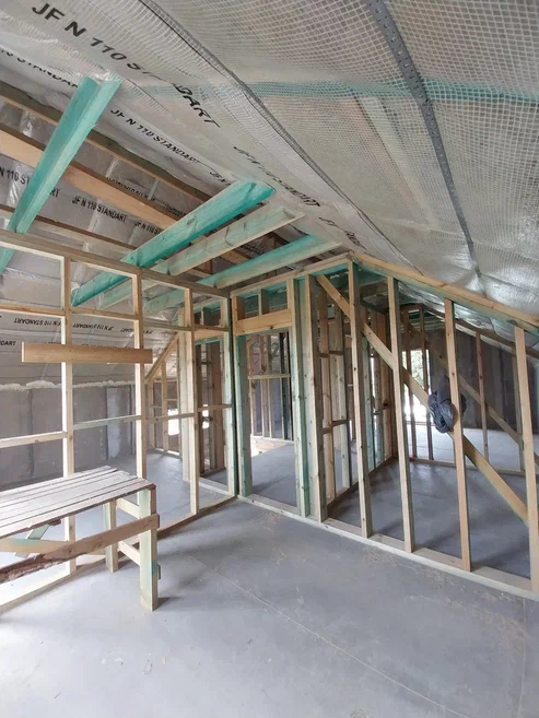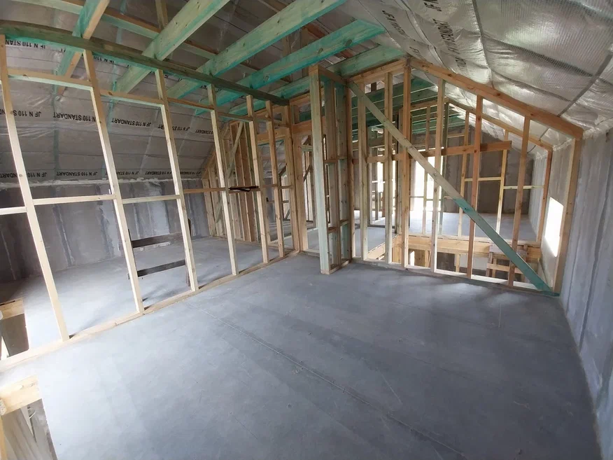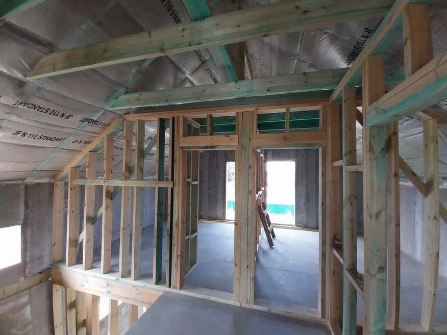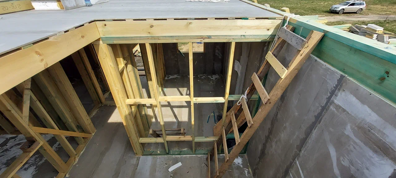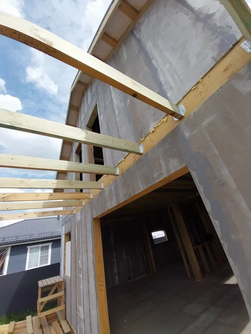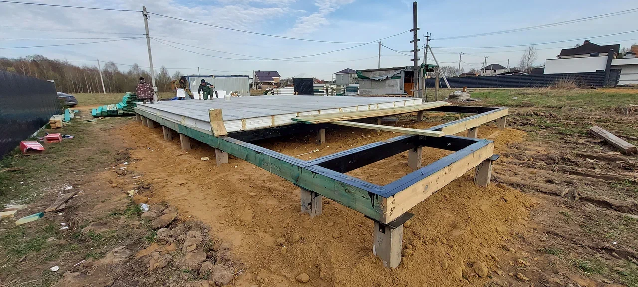 Ростверк изготовлен из калиброванного клееного бруса и защищен снаружи цементно-стружечной плитой