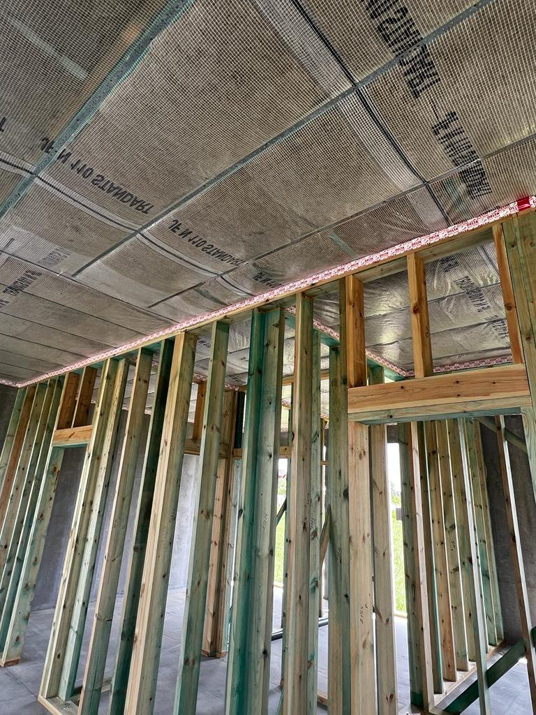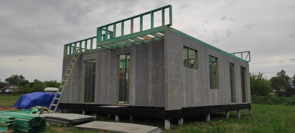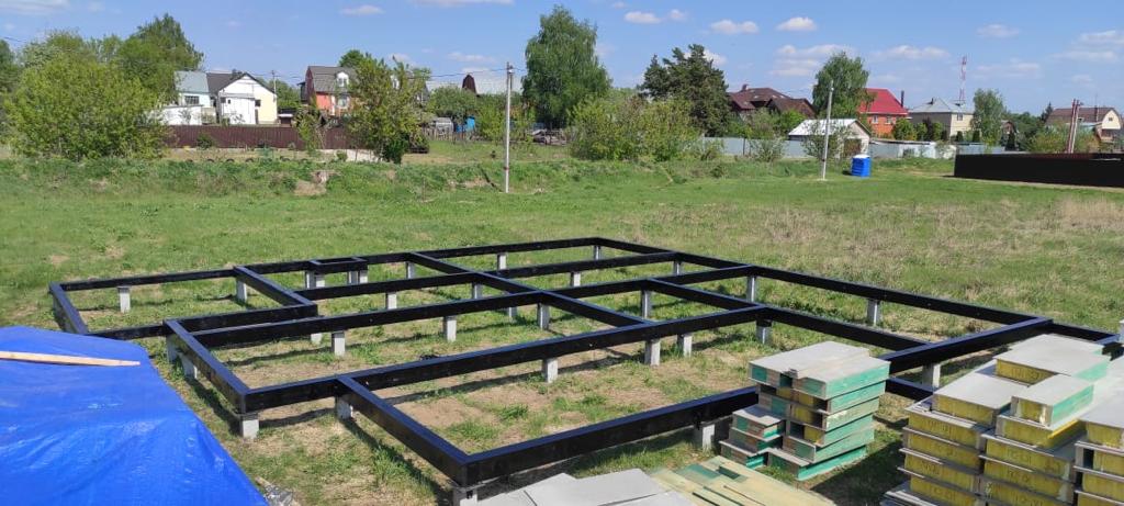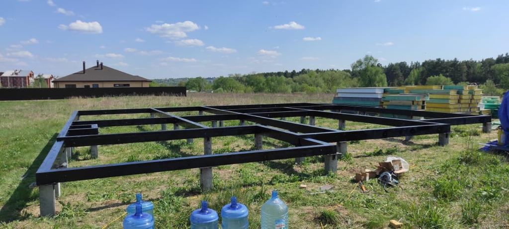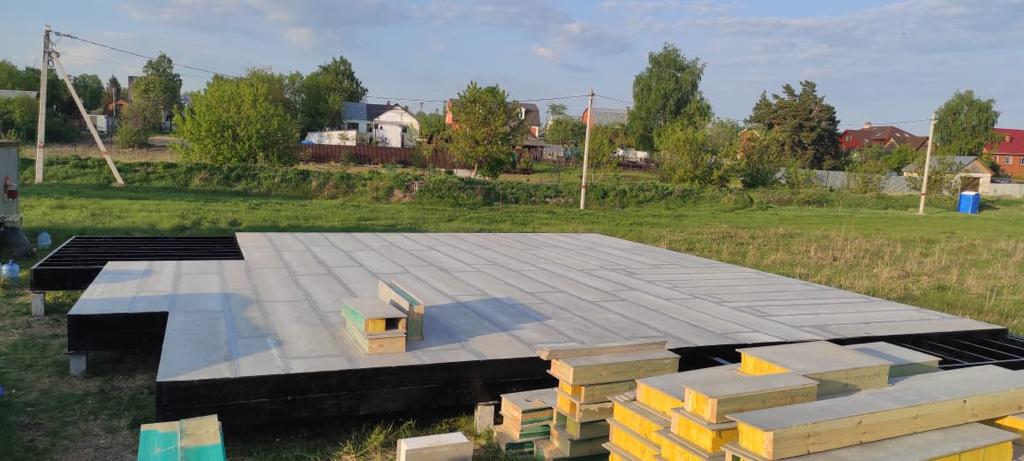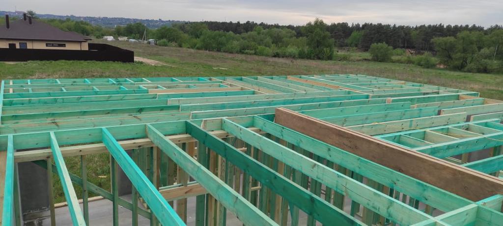 Ростверк изготовлен из калиброванного клееного бруса и защищен снаружи цементно-стружечной плитой