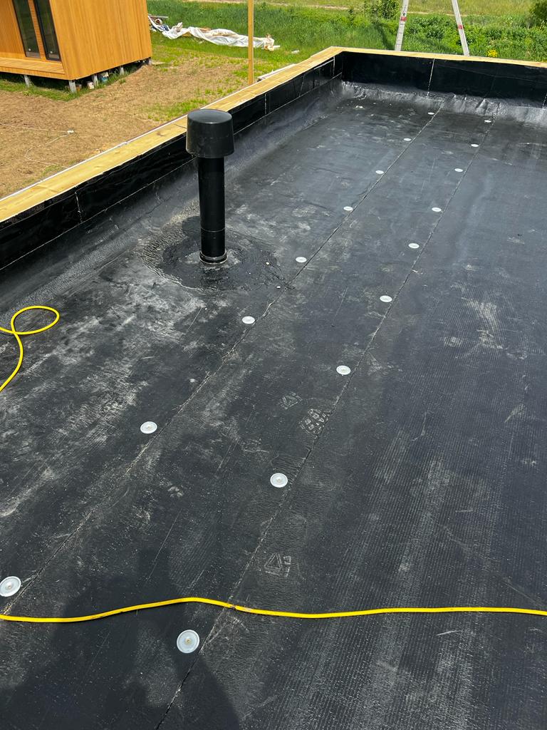 Кровля может быть построена из бруса 150х50мм или SIP панелей. В качестве кровельного материала можно использовать: металлочерепицу, битумную и керамическую черепицу. Также производим кровельные шовные сэндвич-панели.