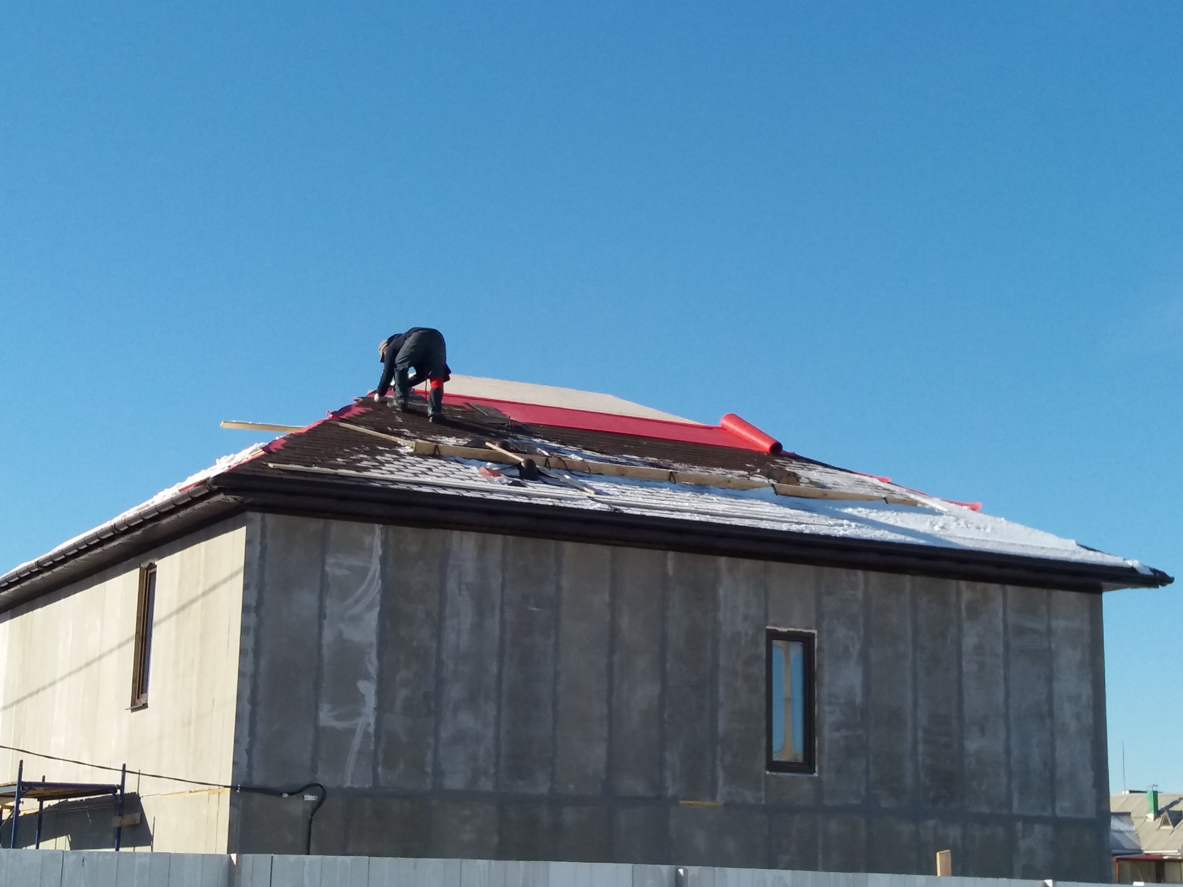 Кровля может быть построена из бруса 150х50мм или SIP панелей. В качестве кровельного материала можно использовать: металлочерепицу, битумную и керамическую черепицу. Также производим кровельные шовные сэндвич-панели.