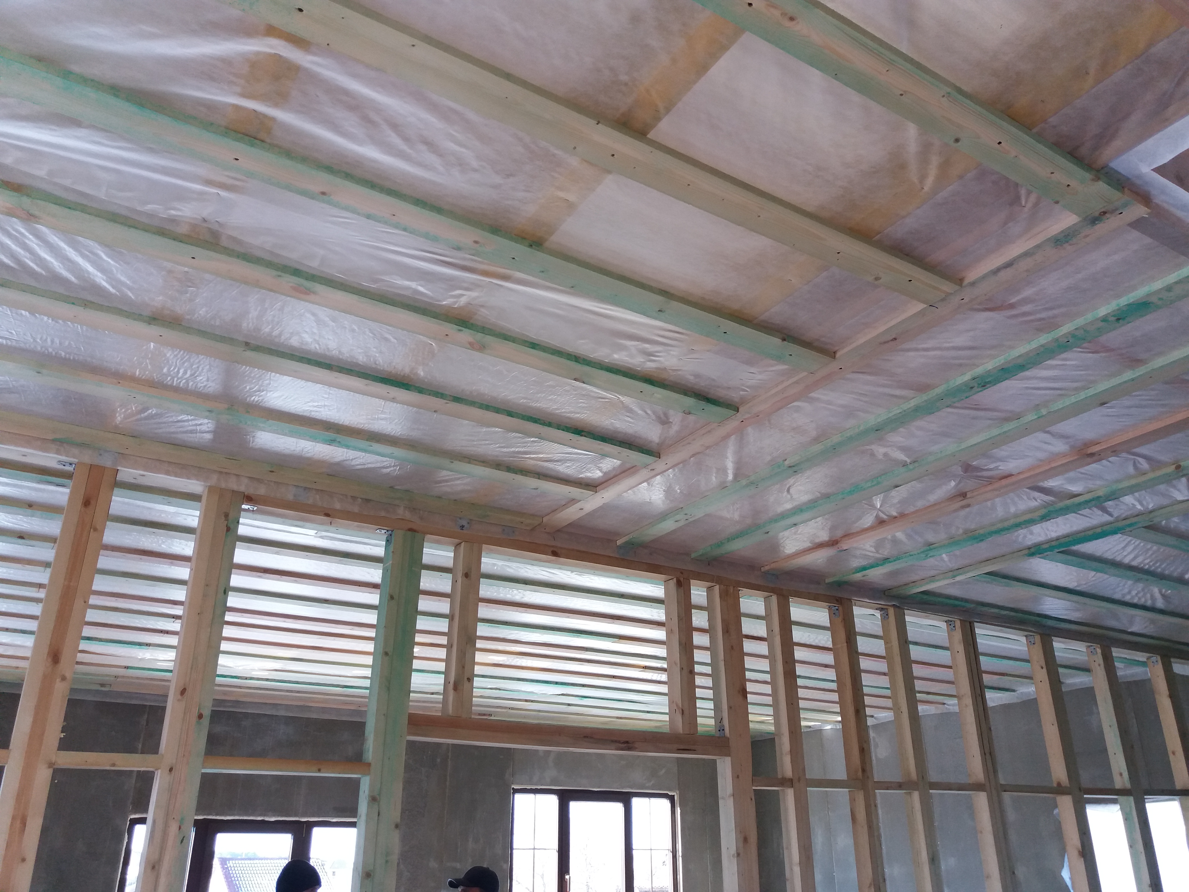 Потолок состоит из двутавровых балок 250 мм, а шаг монтажа балок - 600 мм.