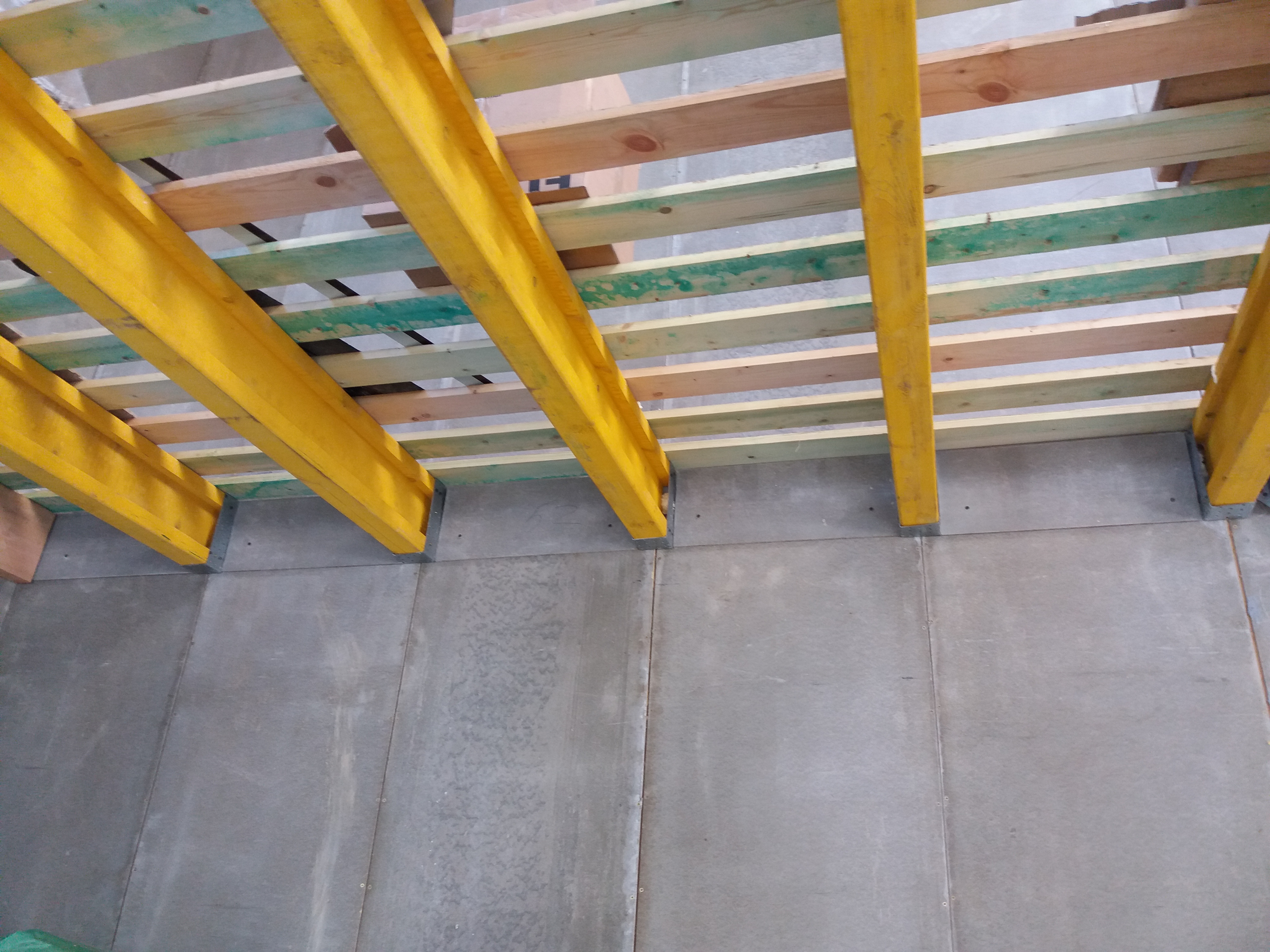 Ростверк изготовлен из калиброванного клееного бруса и защищен снаружи цементно-стружечной плитой