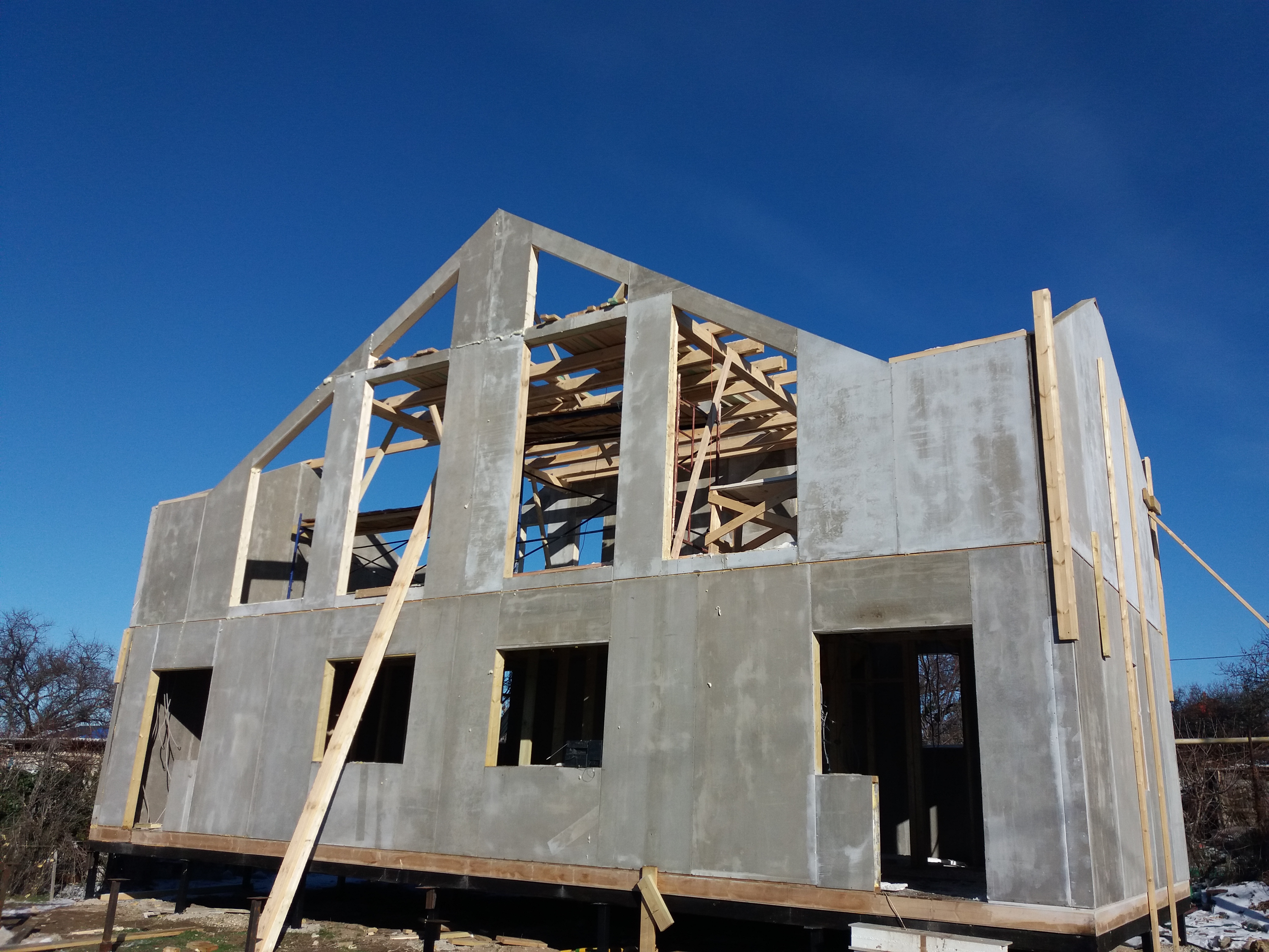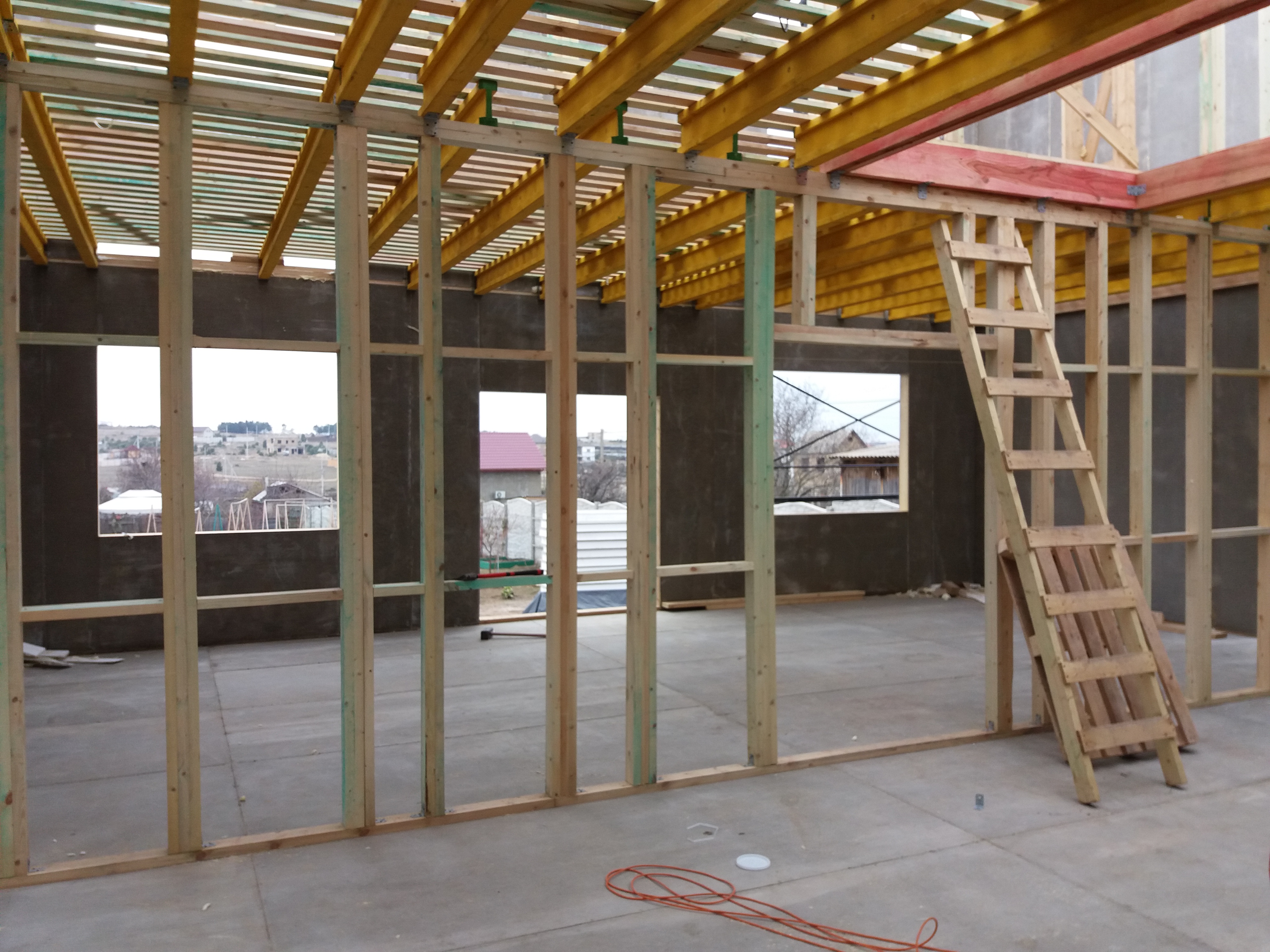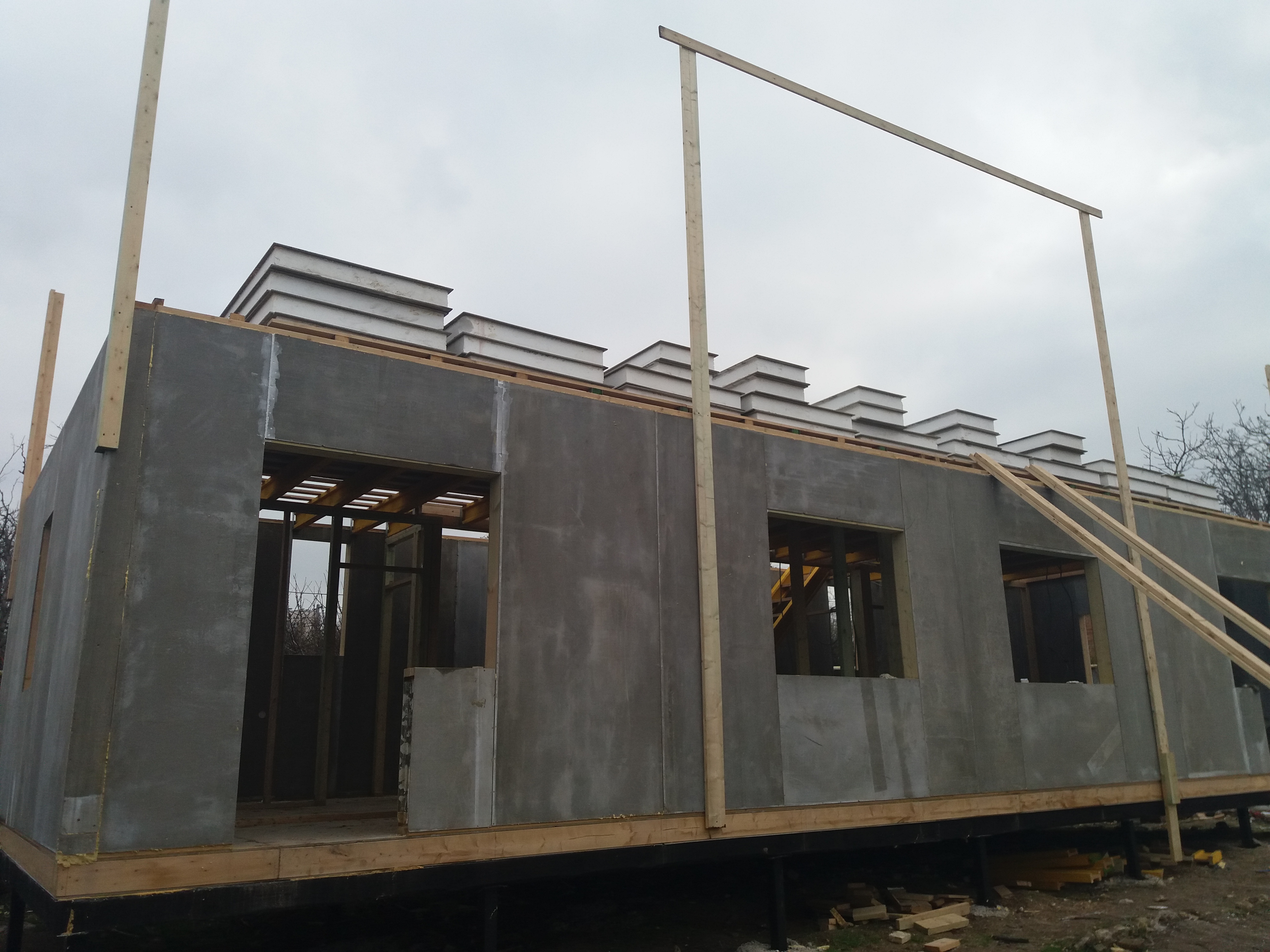 Ростверк изготовлен из калиброванного клееного бруса и защищен снаружи цементно-стружечной плитой