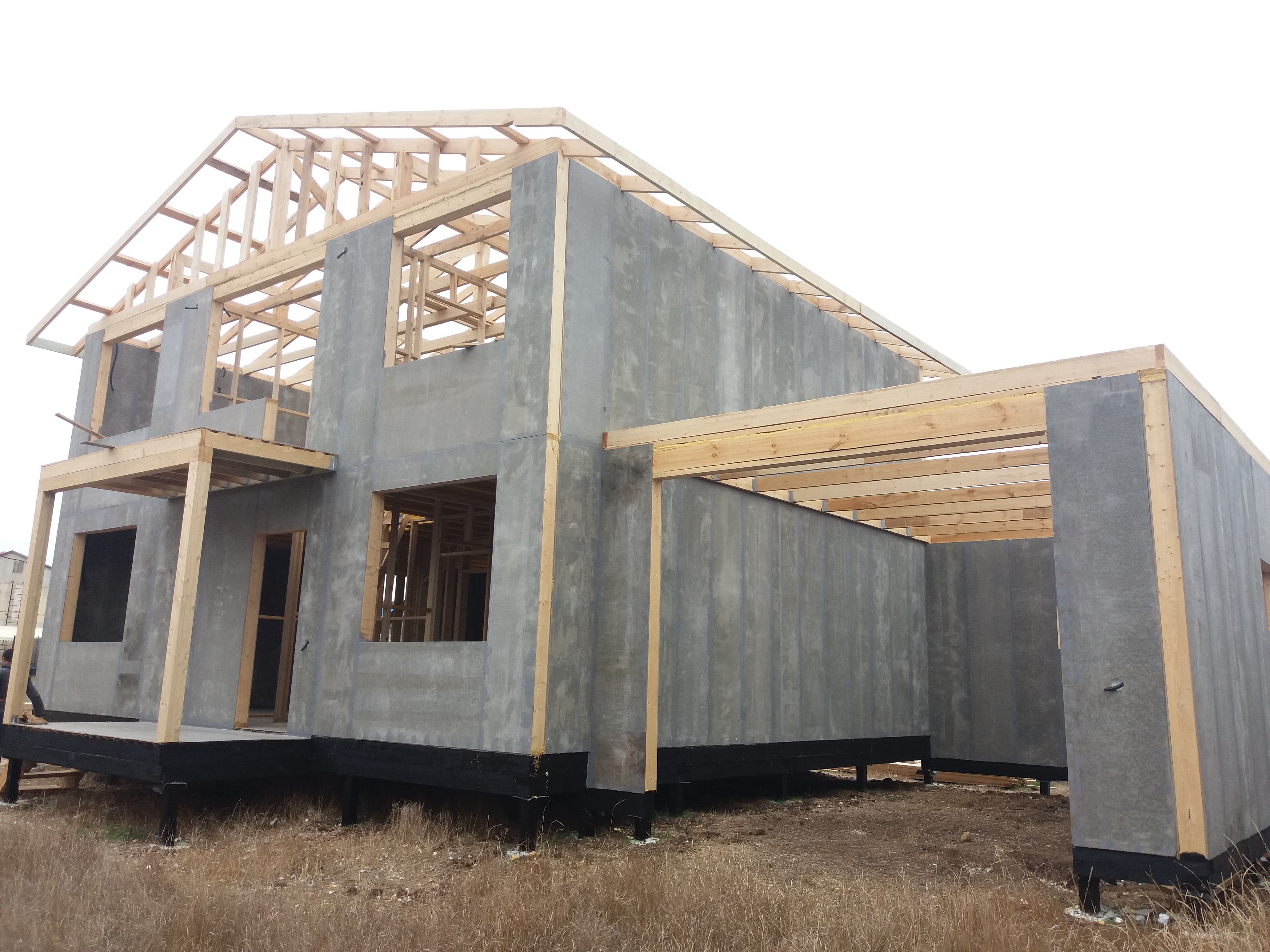 Ростверк изготовлен из калиброванного клееного бруса и защищен снаружи цементно-стружечной плитой