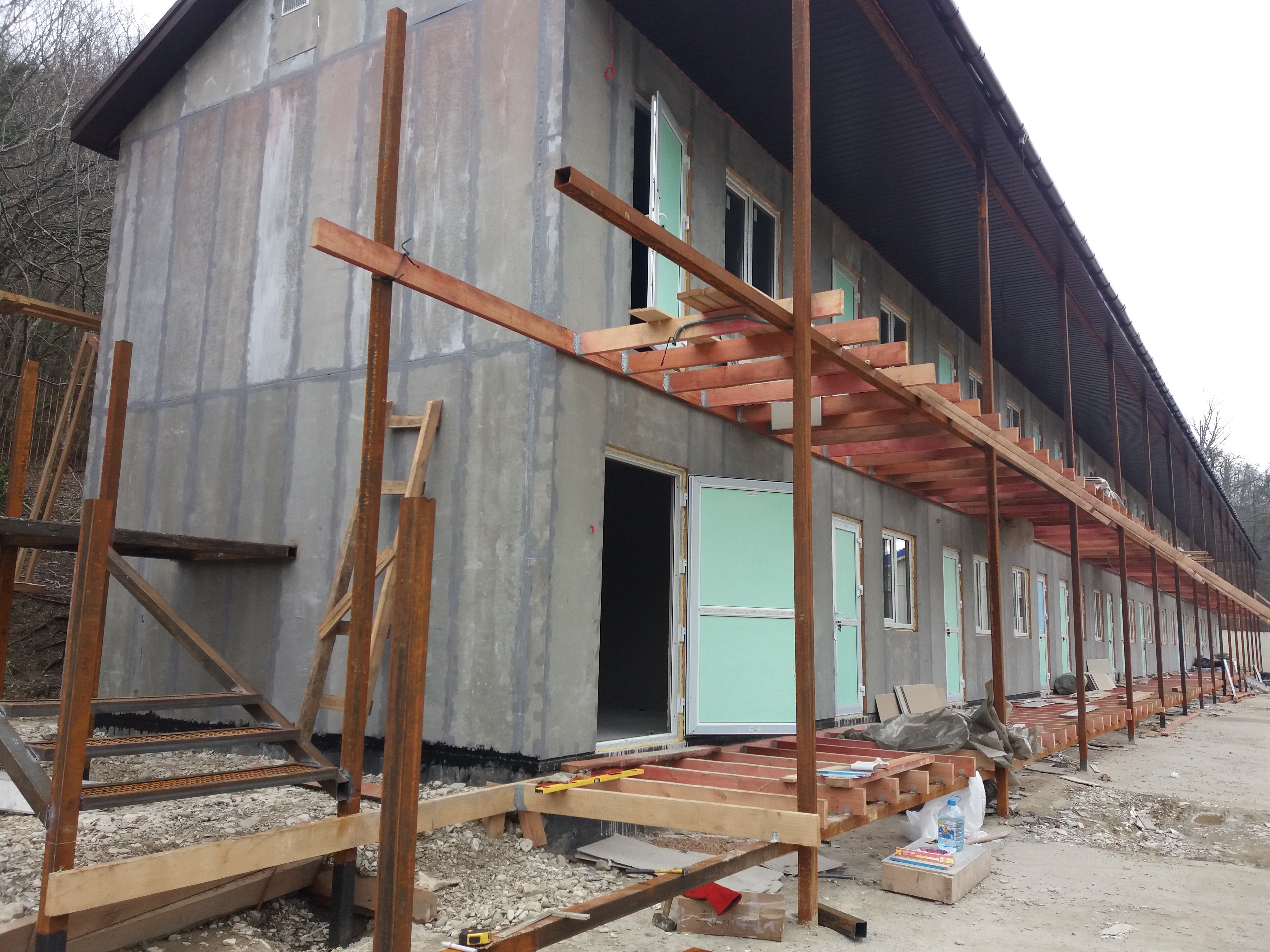 Ростверк изготовлен из калиброванного клееного бруса и защищен снаружи цементно-стружечной плитой