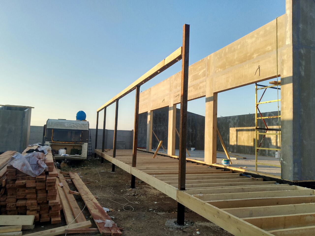 Ростверк изготовлен из калиброванного клееного бруса и защищен снаружи цементно-стружечной плитой