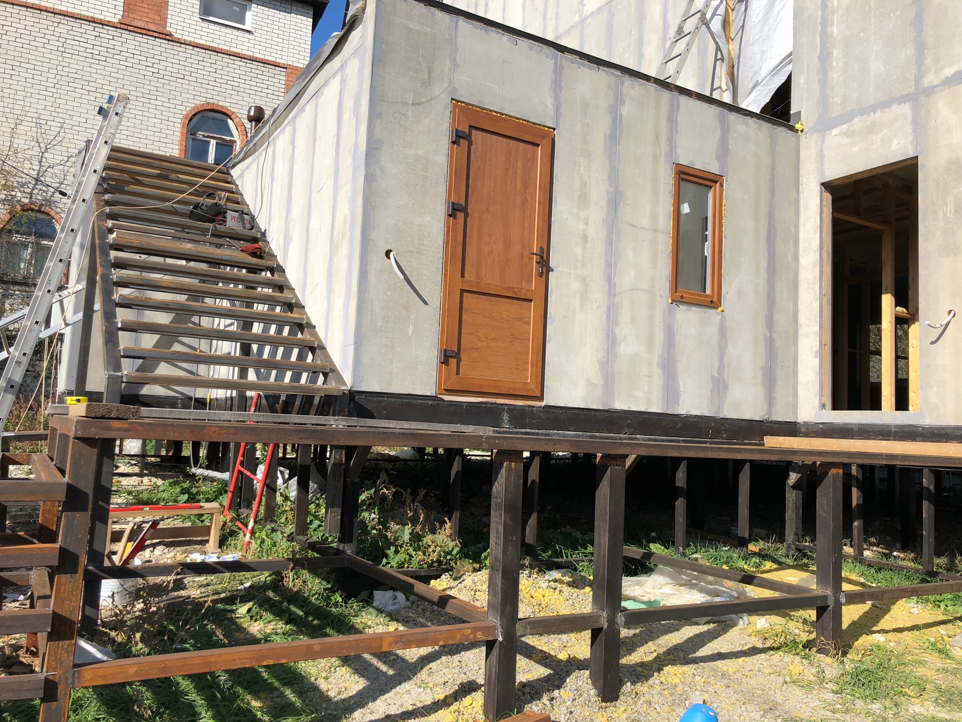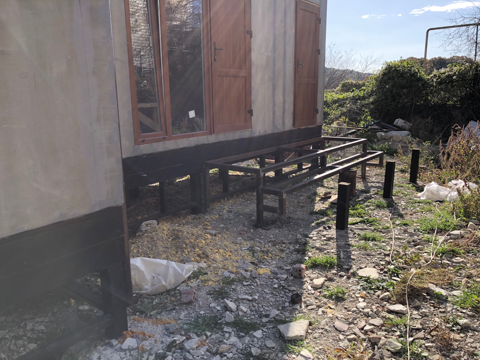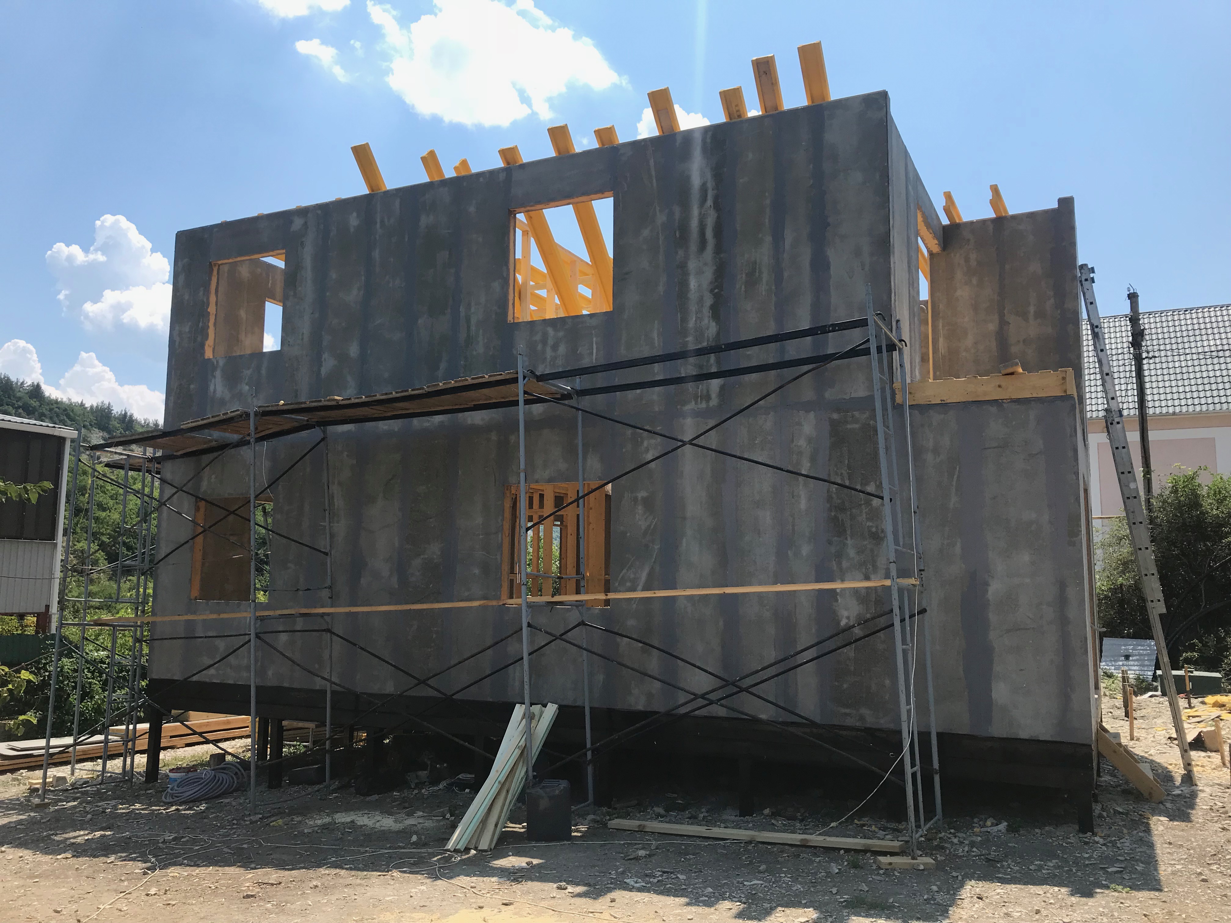 Ростверк изготовлен из калиброванного клееного бруса и защищен снаружи цементно-стружечной плитой