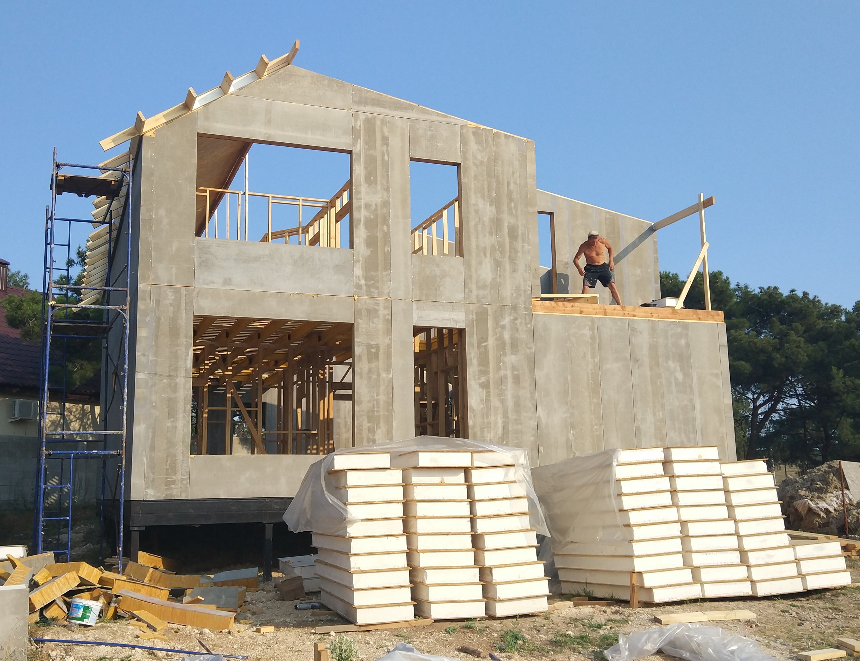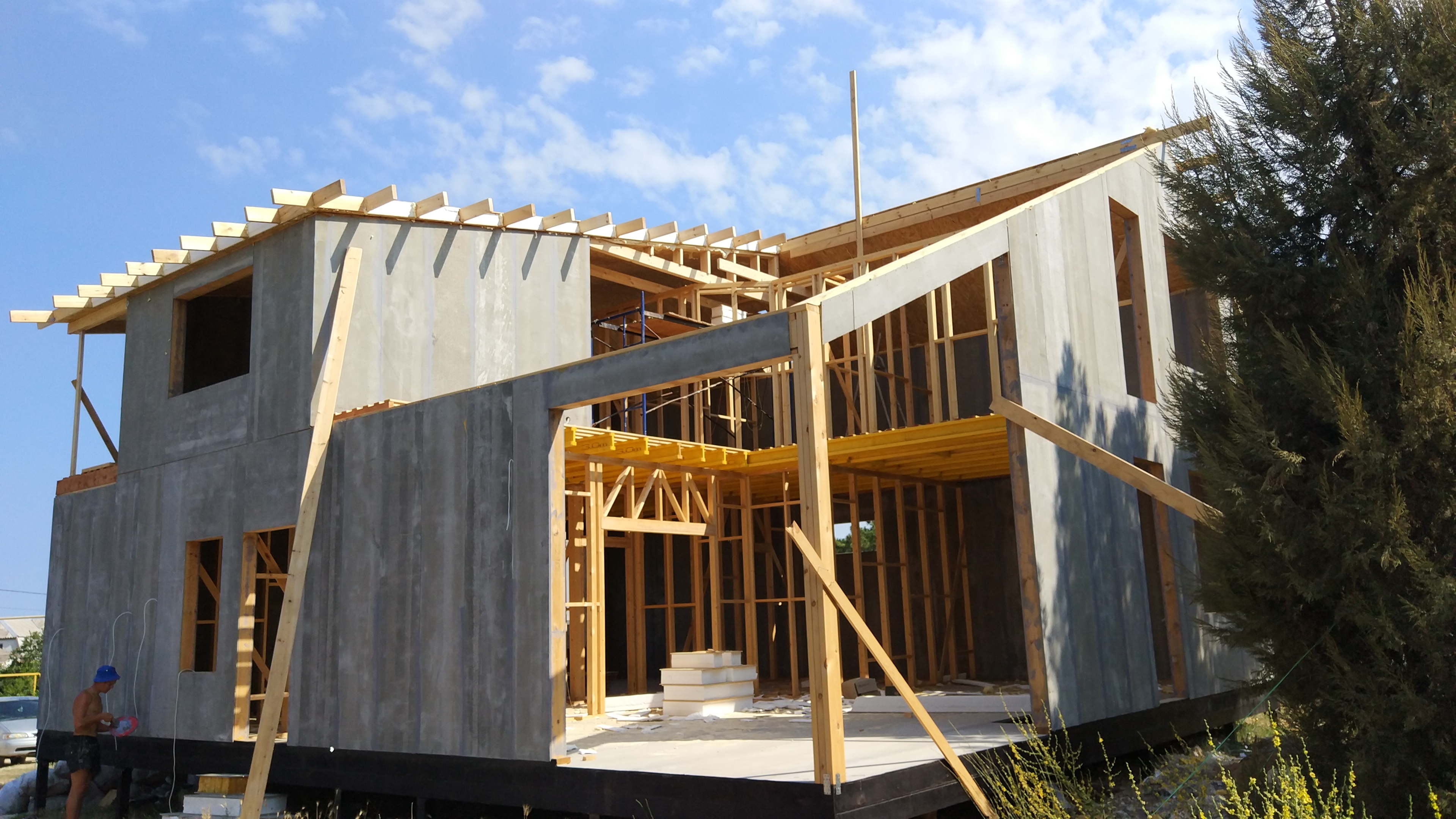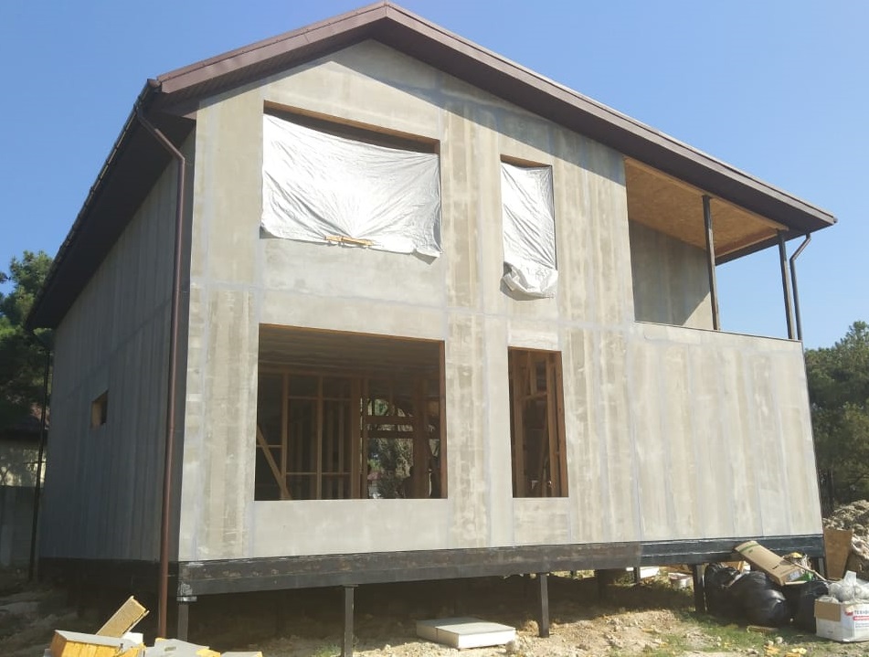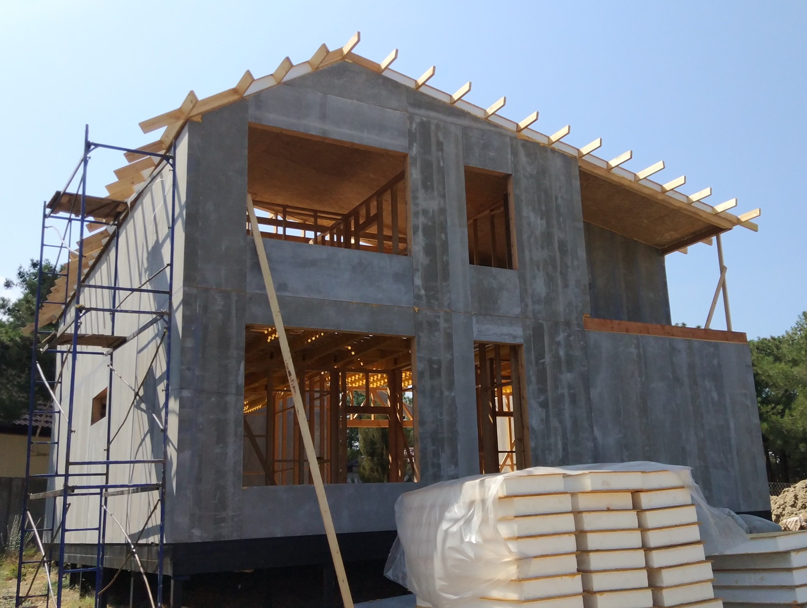 Тип панелей: СИП панели из ЦСП с ИЗОВЕР Сендвич Лайф.
