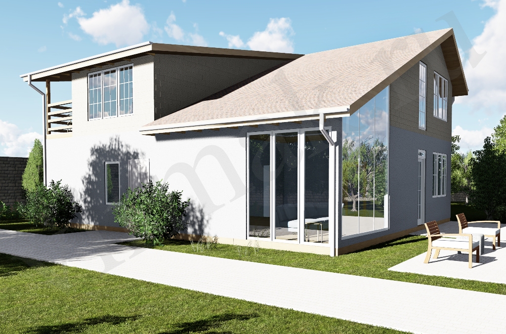 Индивидуальный одноэтажный жилой дом с мансардным этажом по адресу: