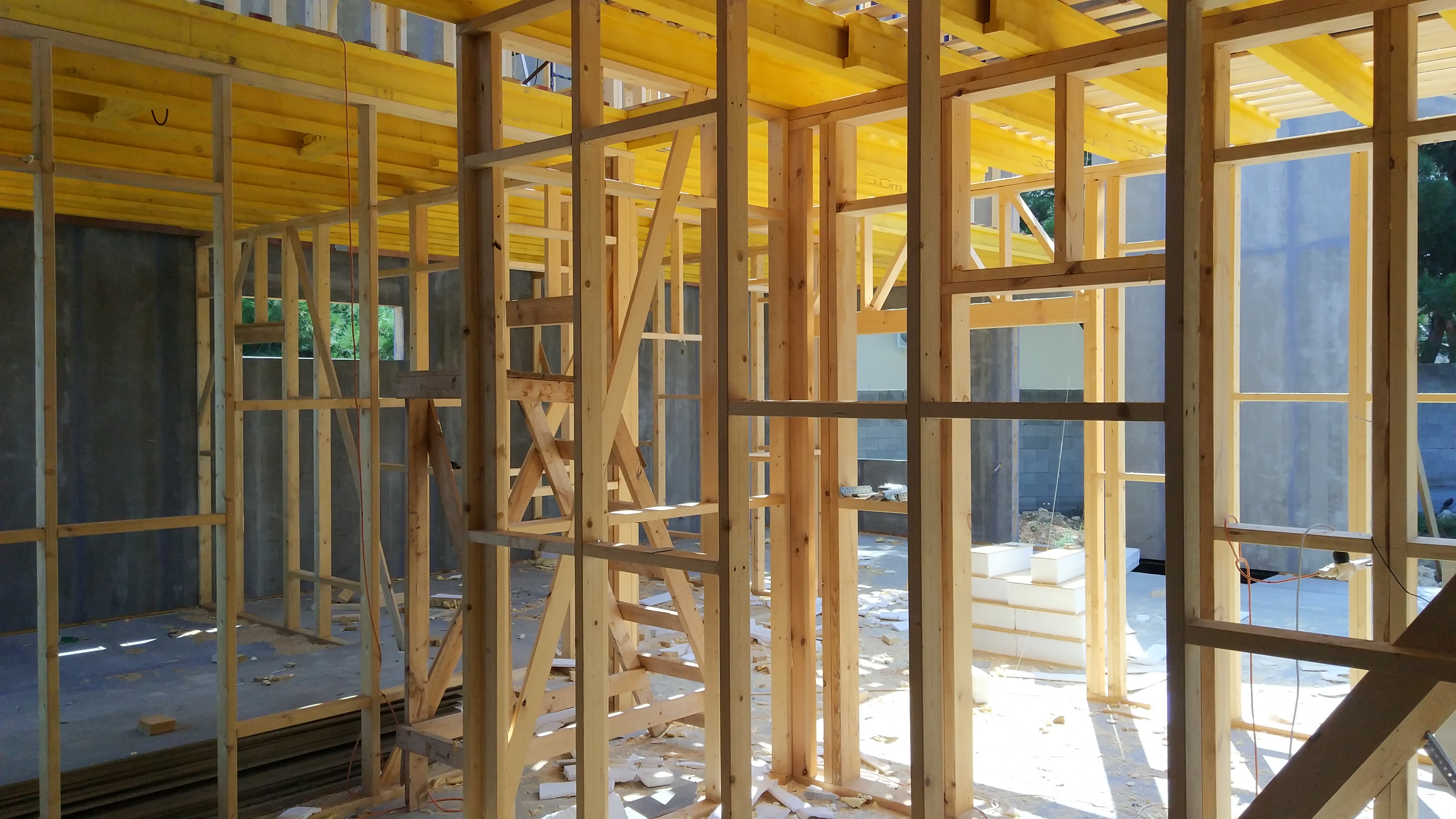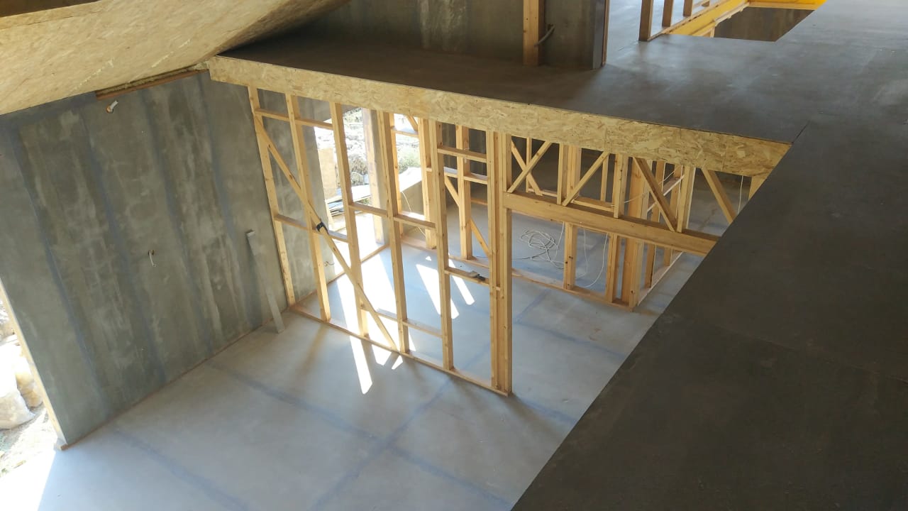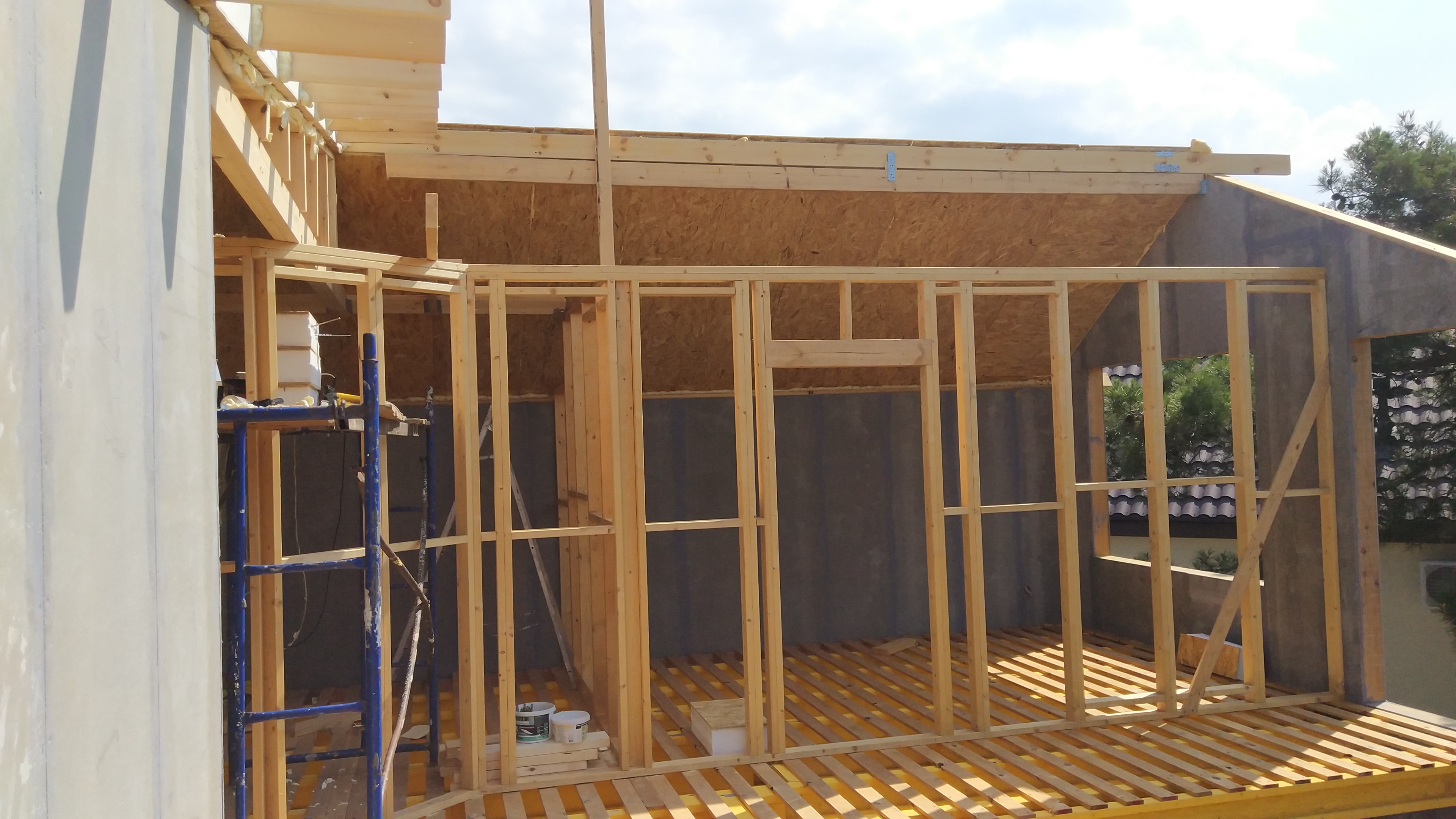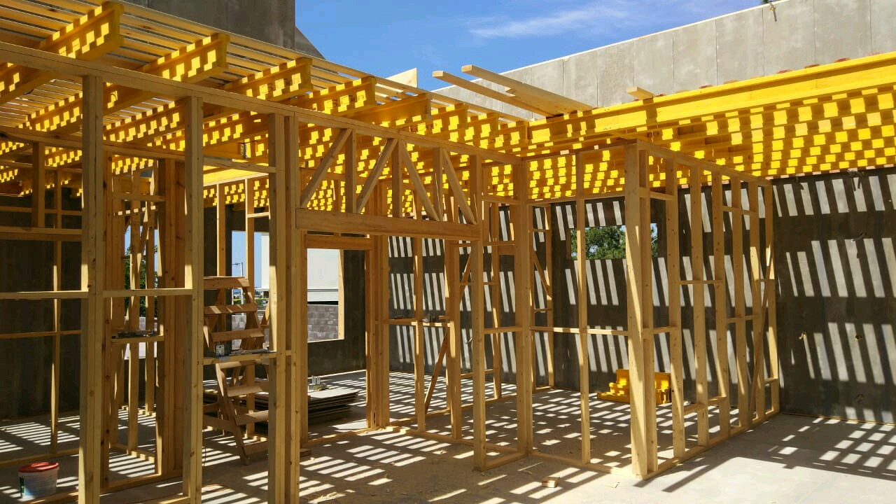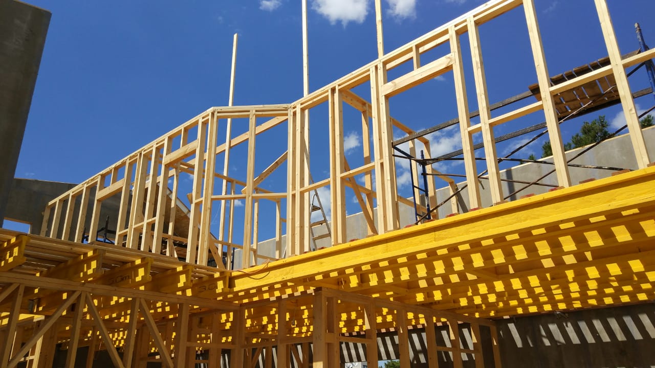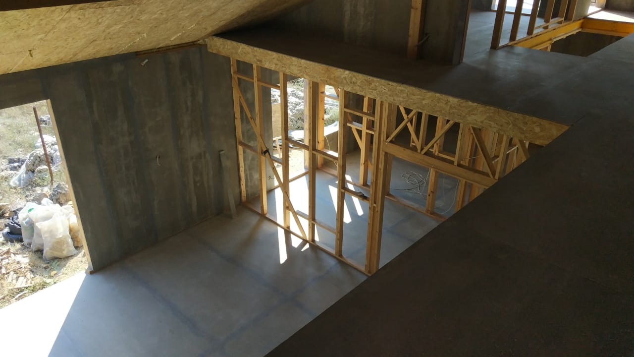 В межэтажных перекрытиях в качестве несущих лаг мы применяем двутавровые балки собственного производства с влагостойкой 24 мм. фанерой в сердечнике.